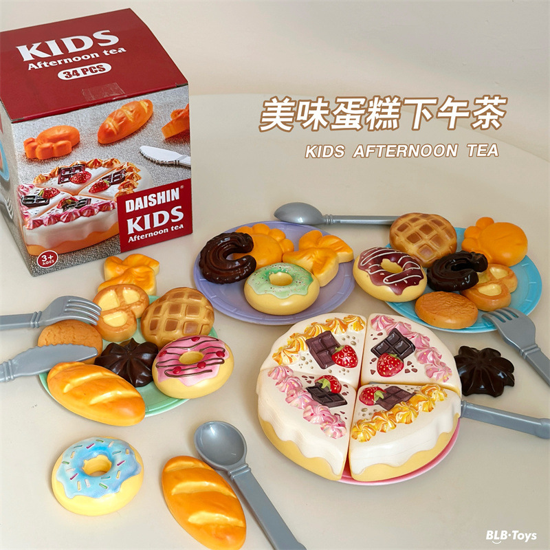 儿童仿真厨具套装+美味蛋糕下午茶 不粘锅蛋糕下午茶切切乐礼物教培食玩玩