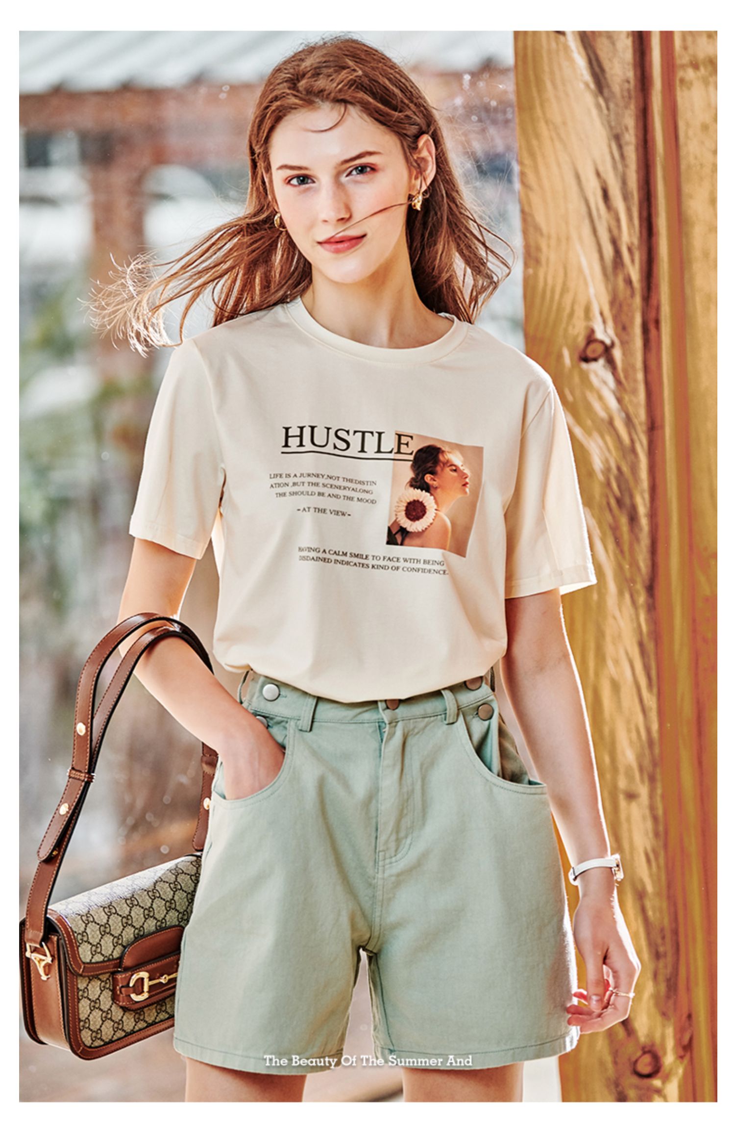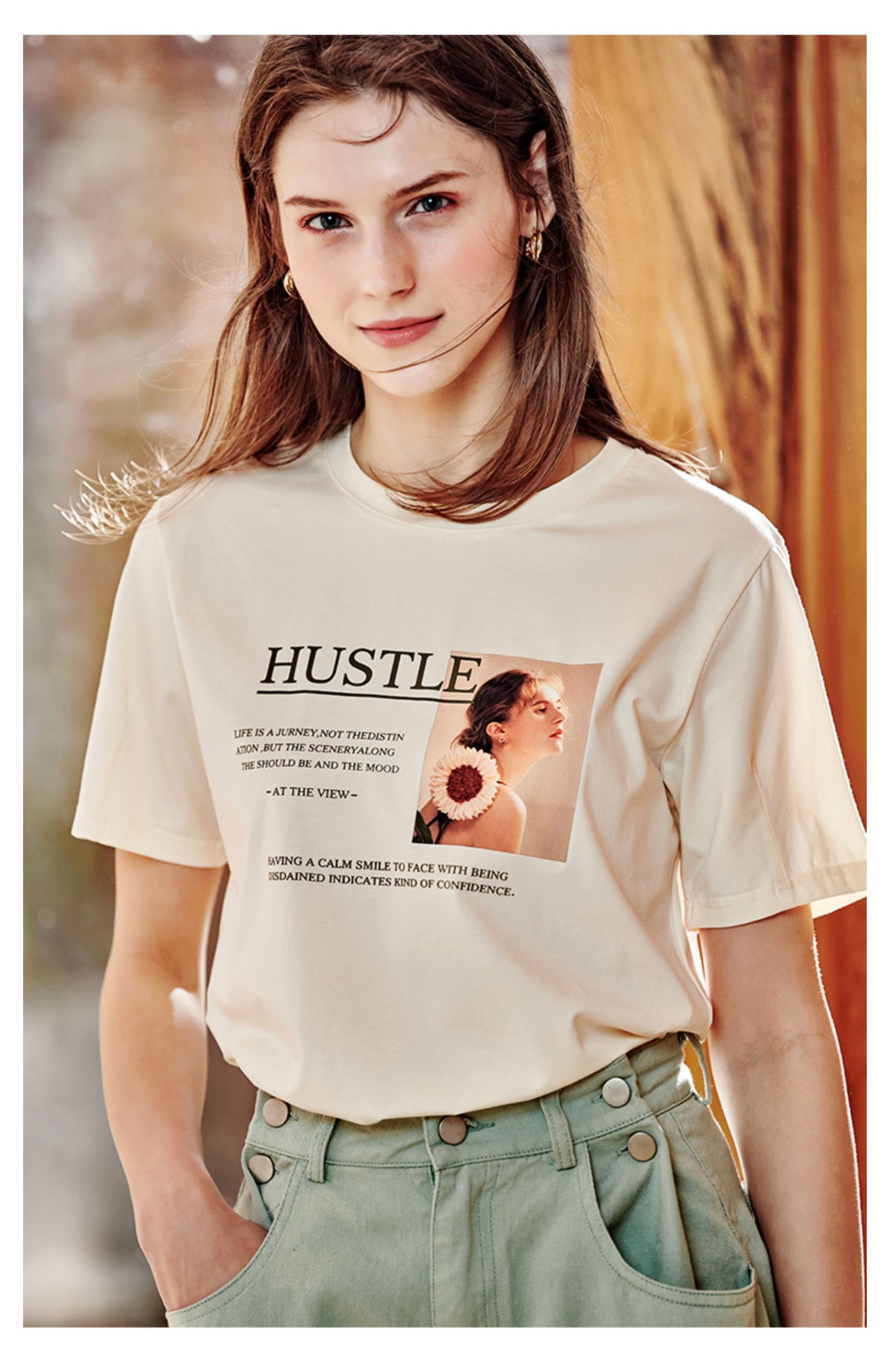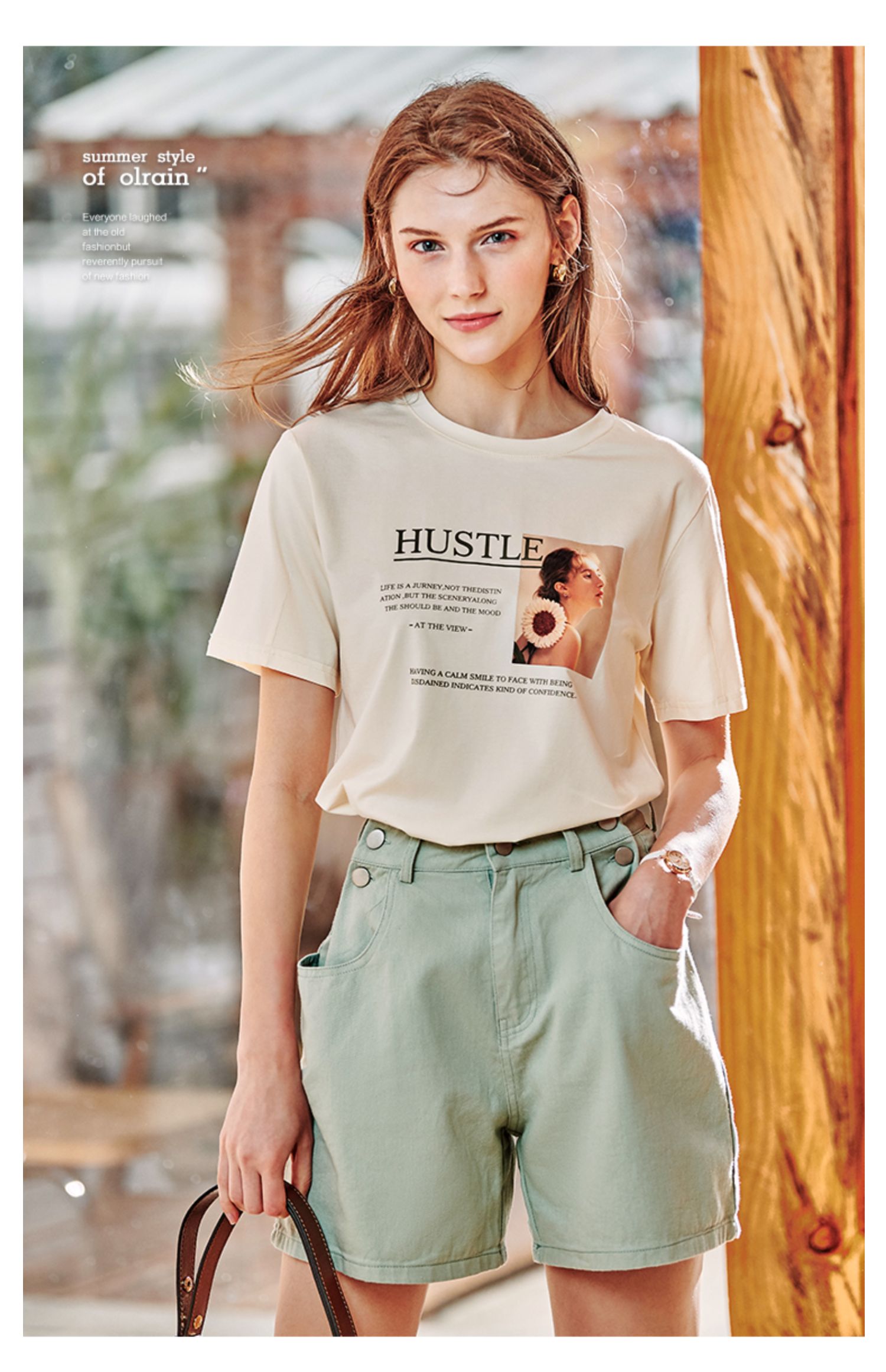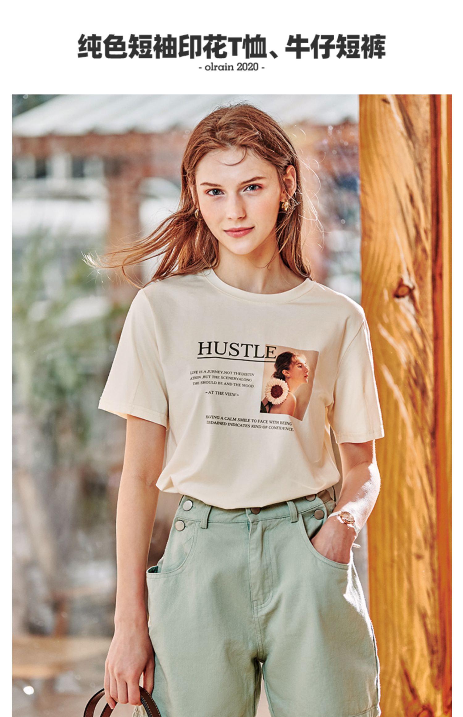 欧芮儿圆领印花短袖T恤女2021新款夏宽松网红半袖ins超火白色上衣