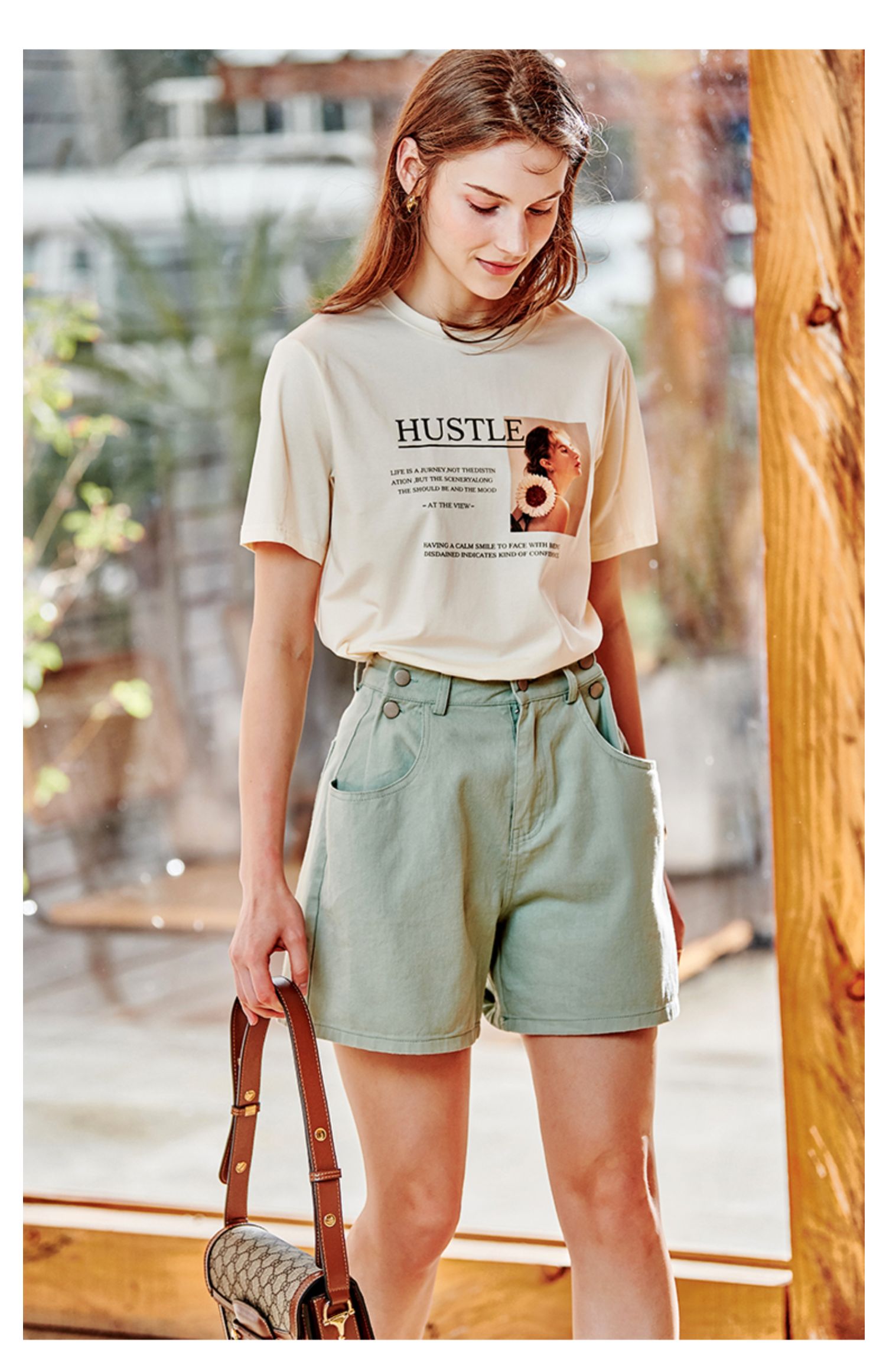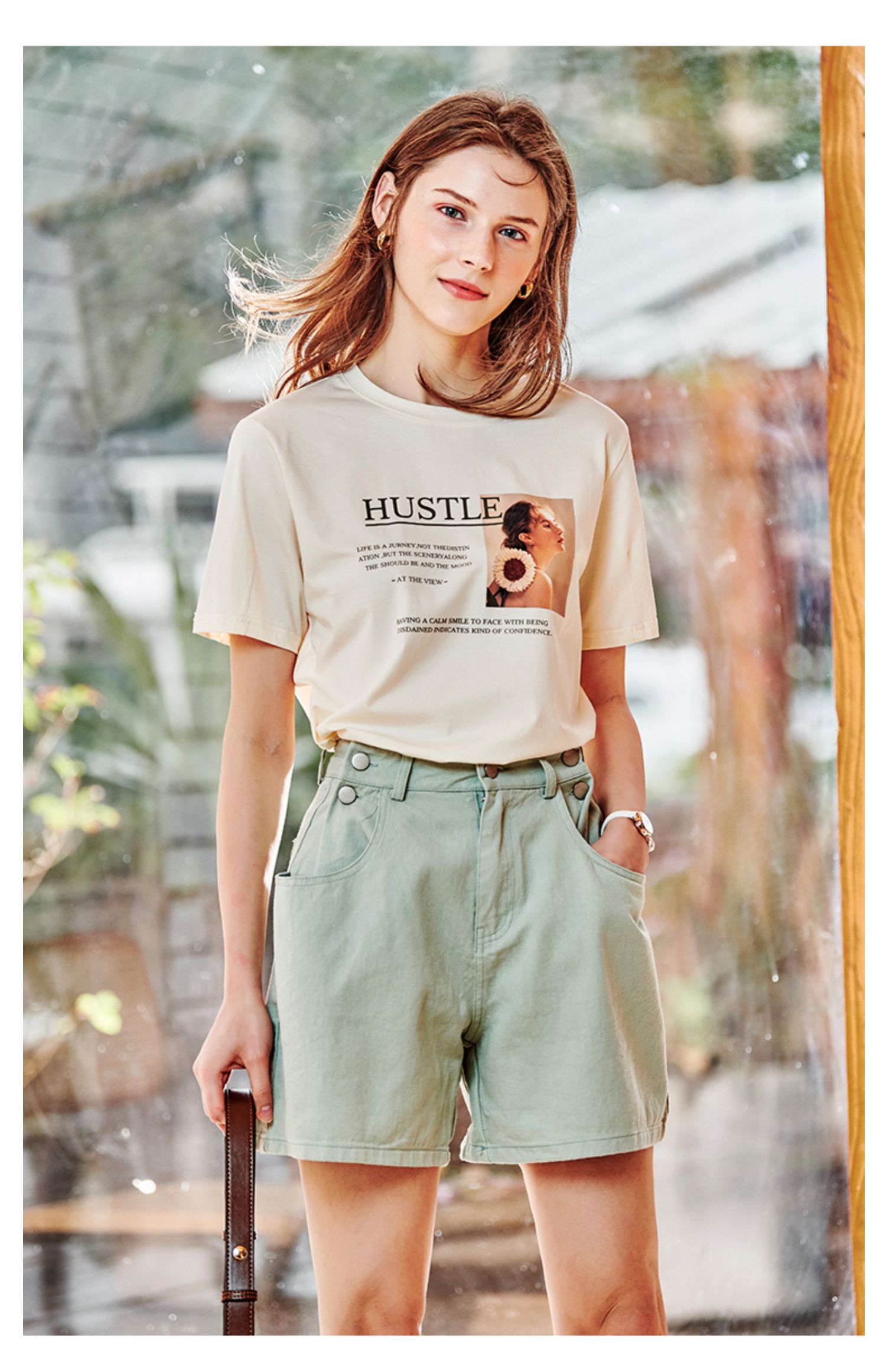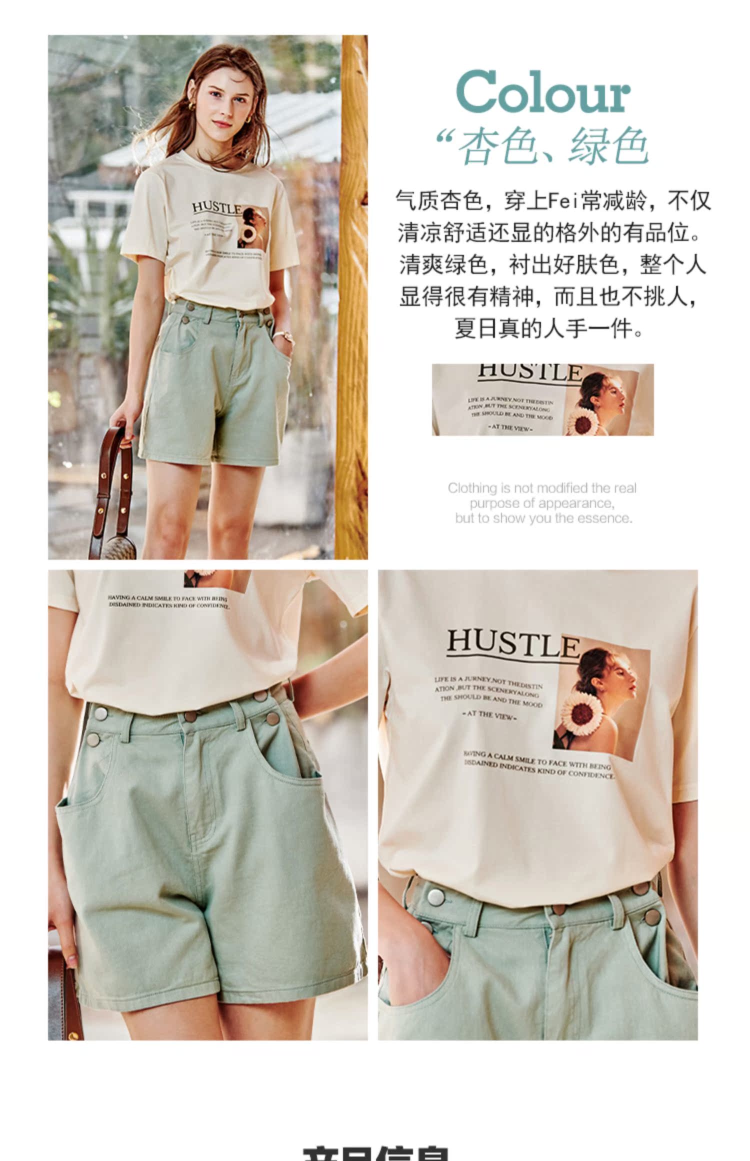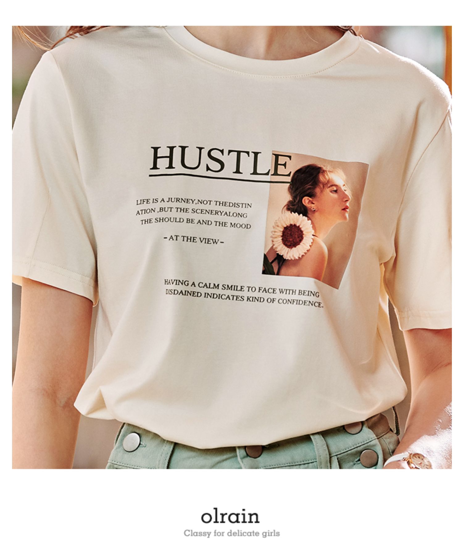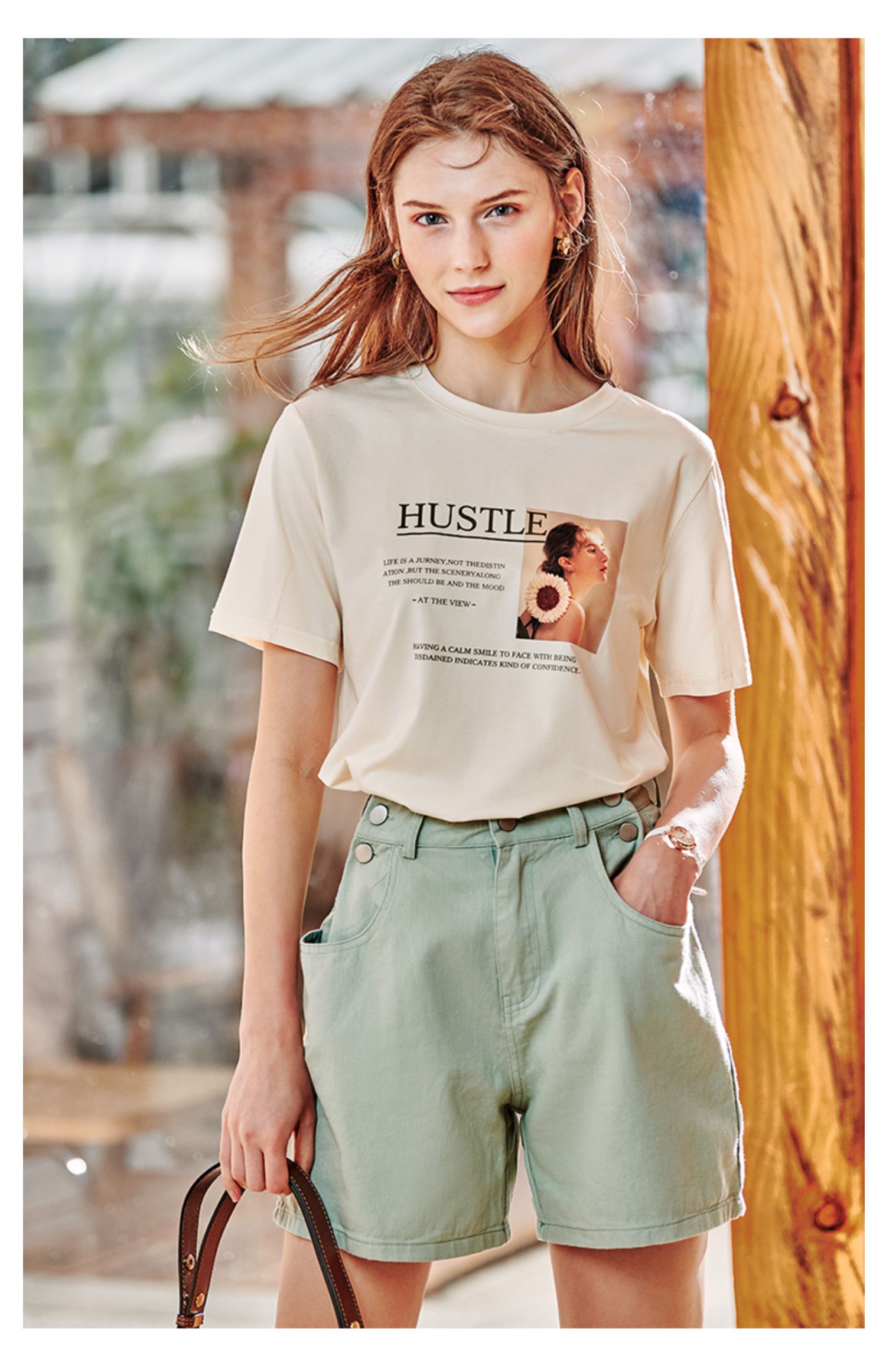 欧芮儿圆领印花短袖T恤女2021新款夏宽松网红半袖ins超火白色上衣