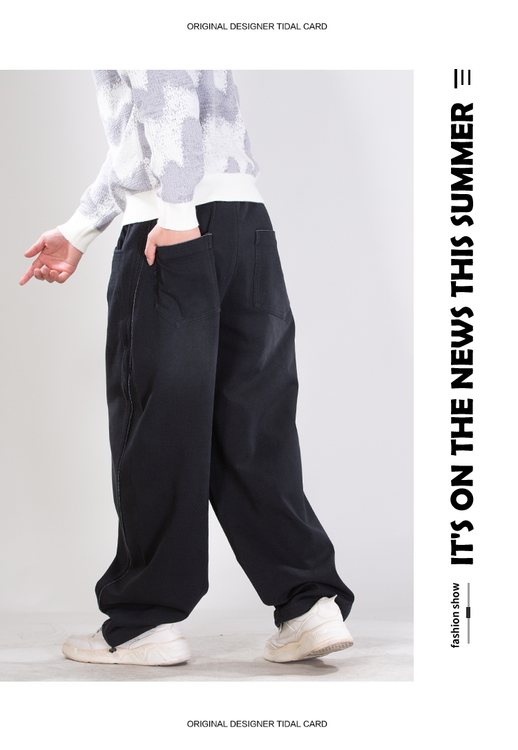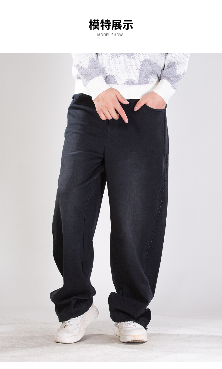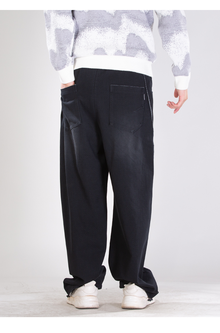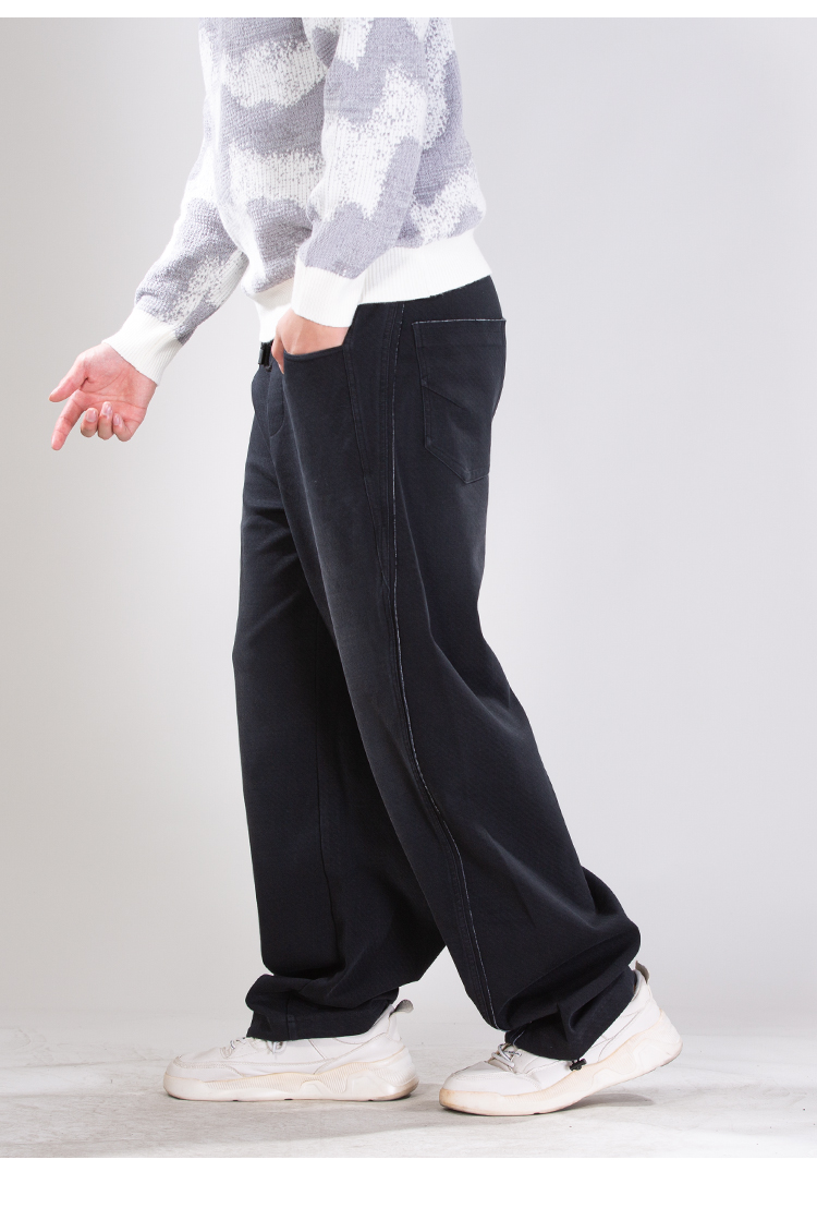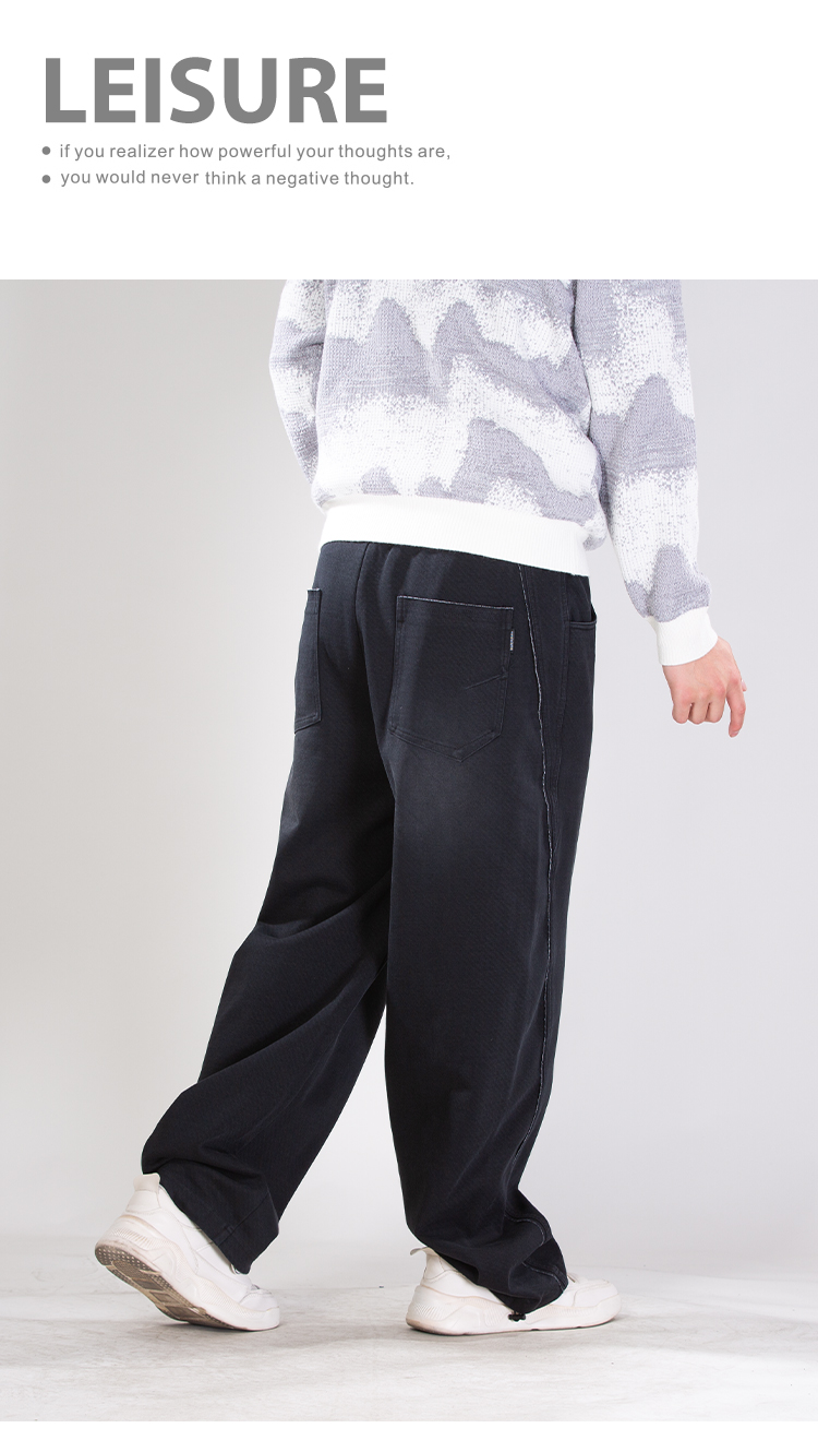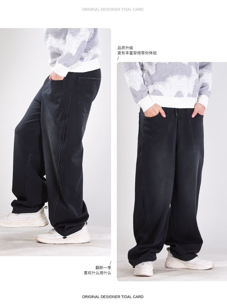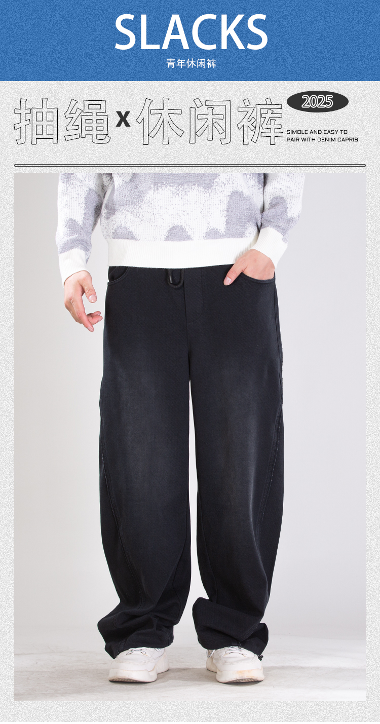 DRONKOO 2025 抽绳松紧腰前斜破缝毛边喷色中厚卫裤长裤
