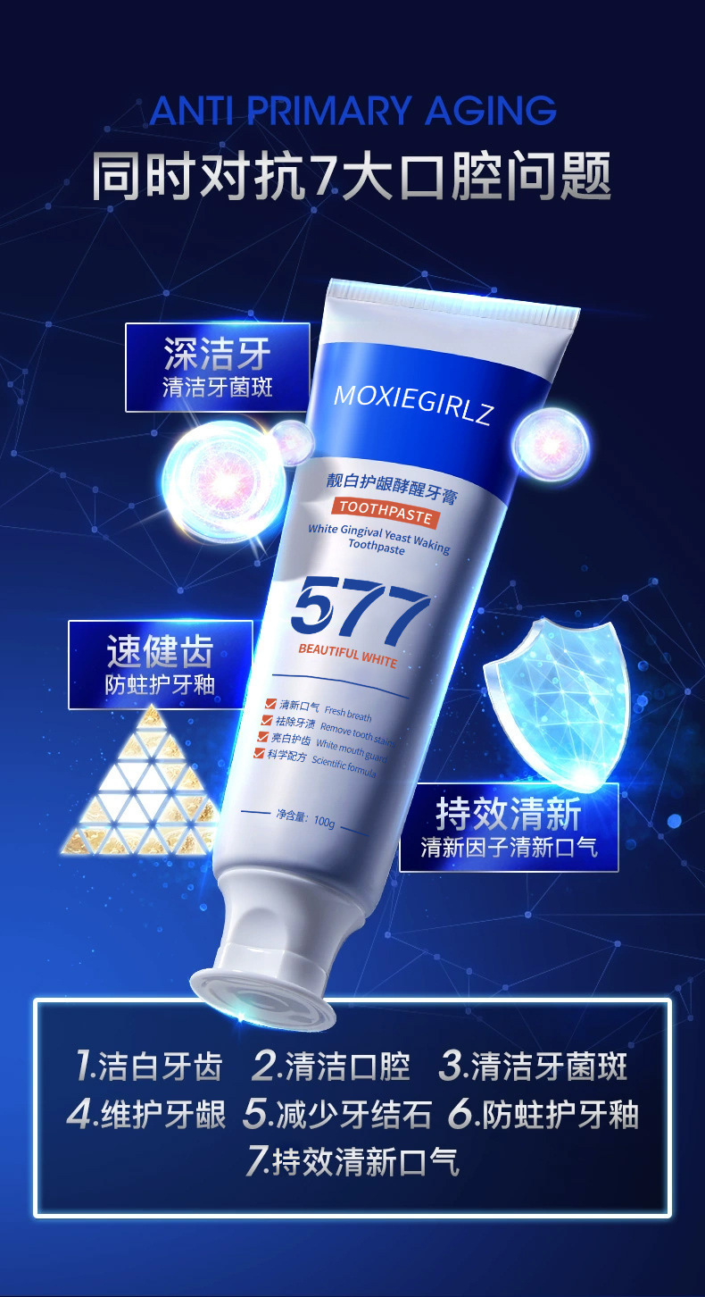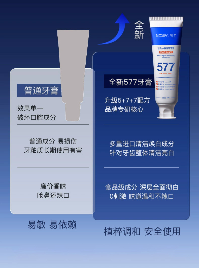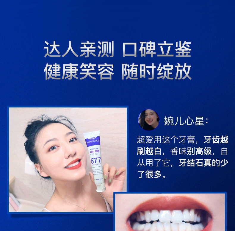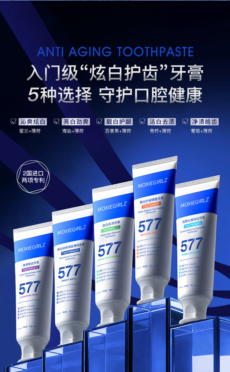 「拍1发3!数款香型」慕斯女孩577牙膏 去渍洁齿亮白清洁牙膏清新口气牙膏口腔护理
