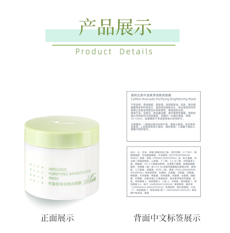 嘉莉比奥牛油果净润焕亮果泥面膜