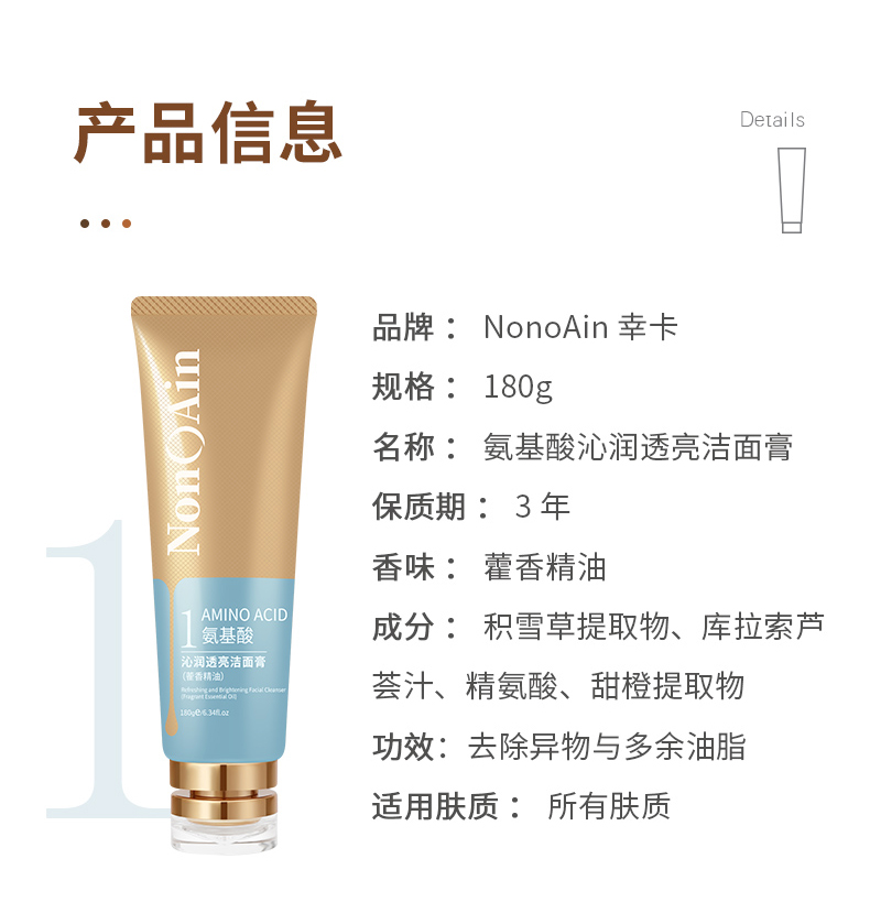 NONOAIN AIN2001型 180g氨基酸沁润透亮洁面膏(霍香精油)1号 赠品:80g氨基酸水润净肤洁面膏(葡萄柚精油)