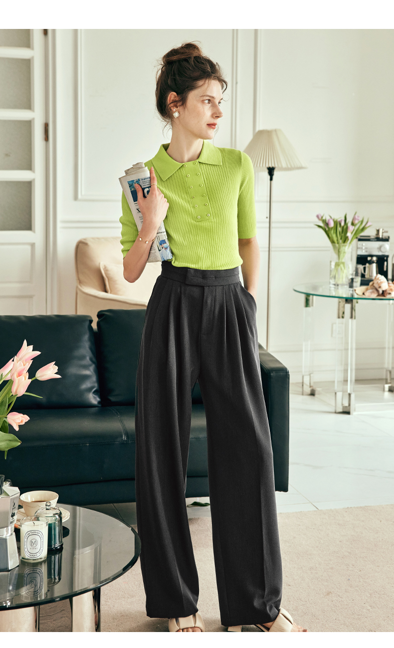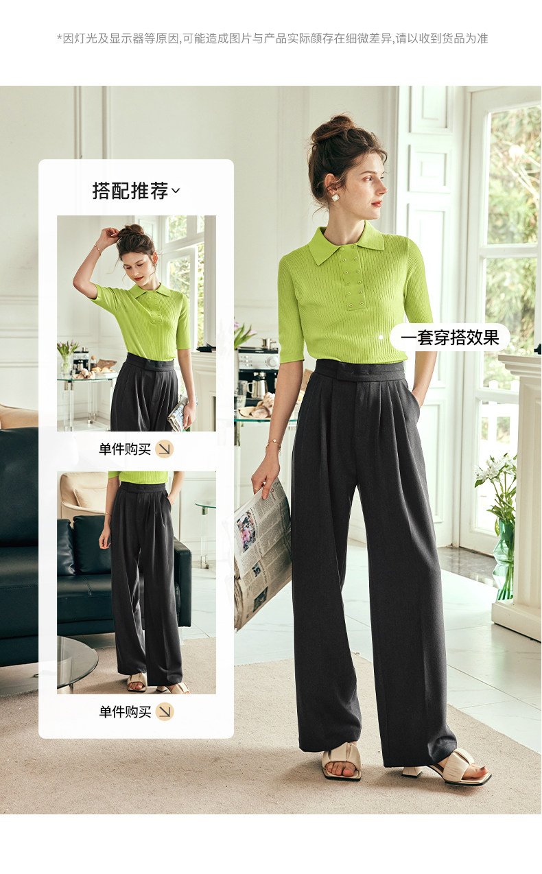 OLrain欧芮儿法式polo领短袖t恤女夏季2023年新款修身纯色套头衫