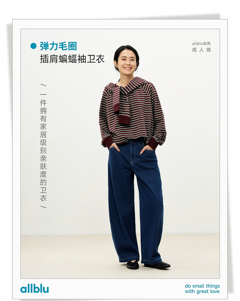 allblu弹力毛圈插肩蝙蝠袖卫衣,柔软舒适亲肤