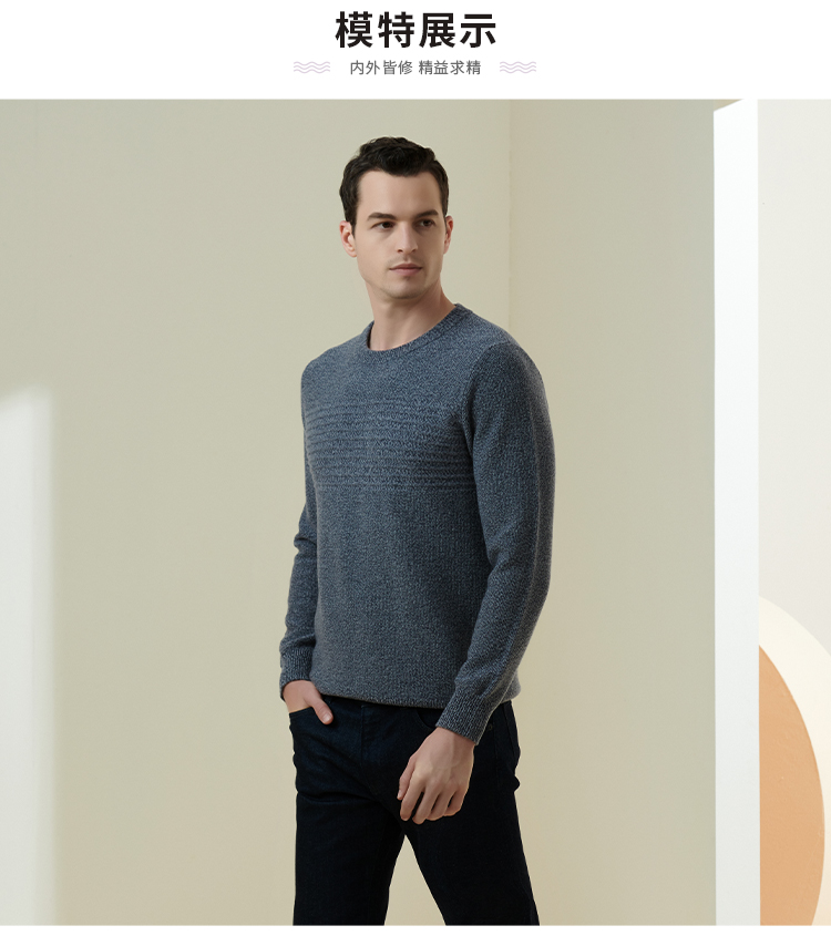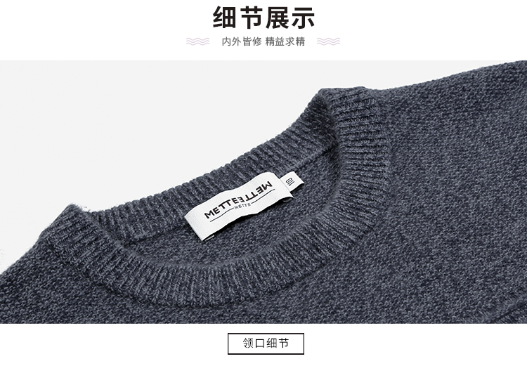 METTE羊绒世家2021年秋冬新品男士100%山羊绒衫圆领点子混纱毛衣