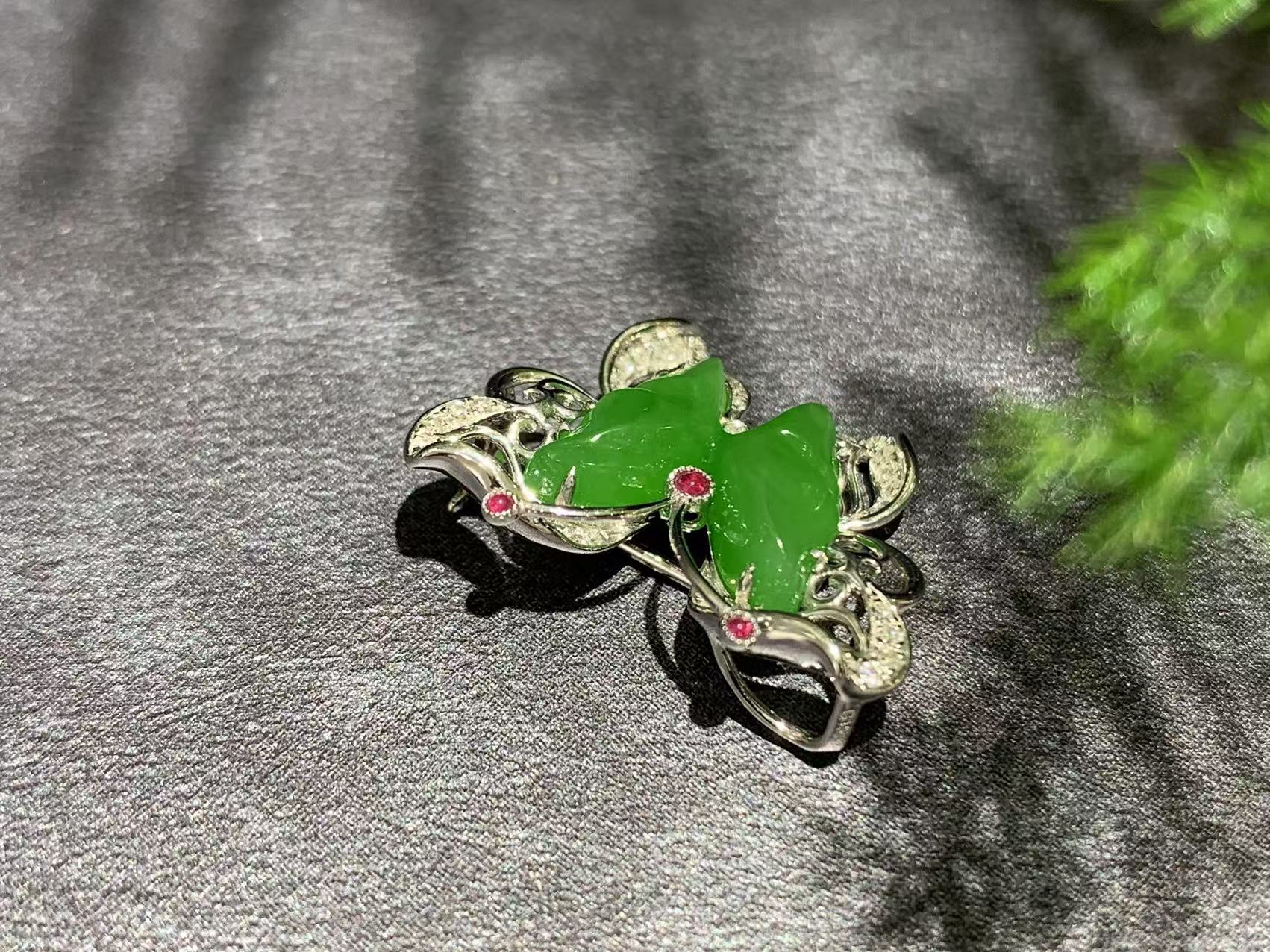 【御珠宫坊】金镶碧玉胸针