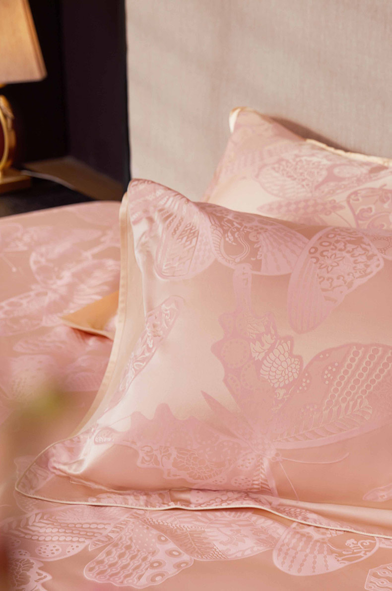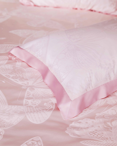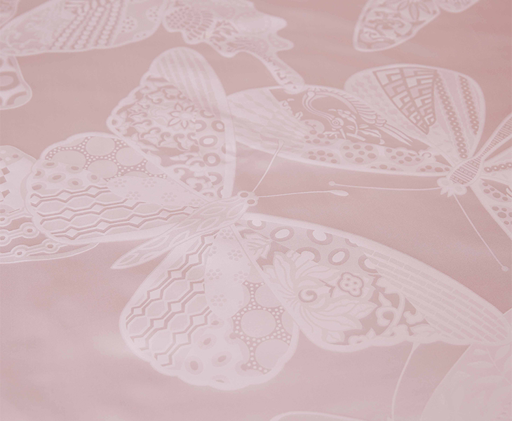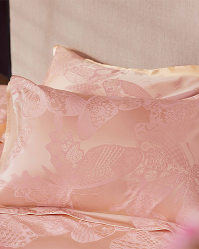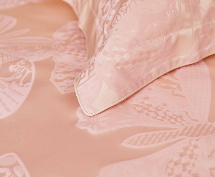 正面为丝绵提花缎,背面为素色丝绵缎,触感柔软顺滑。