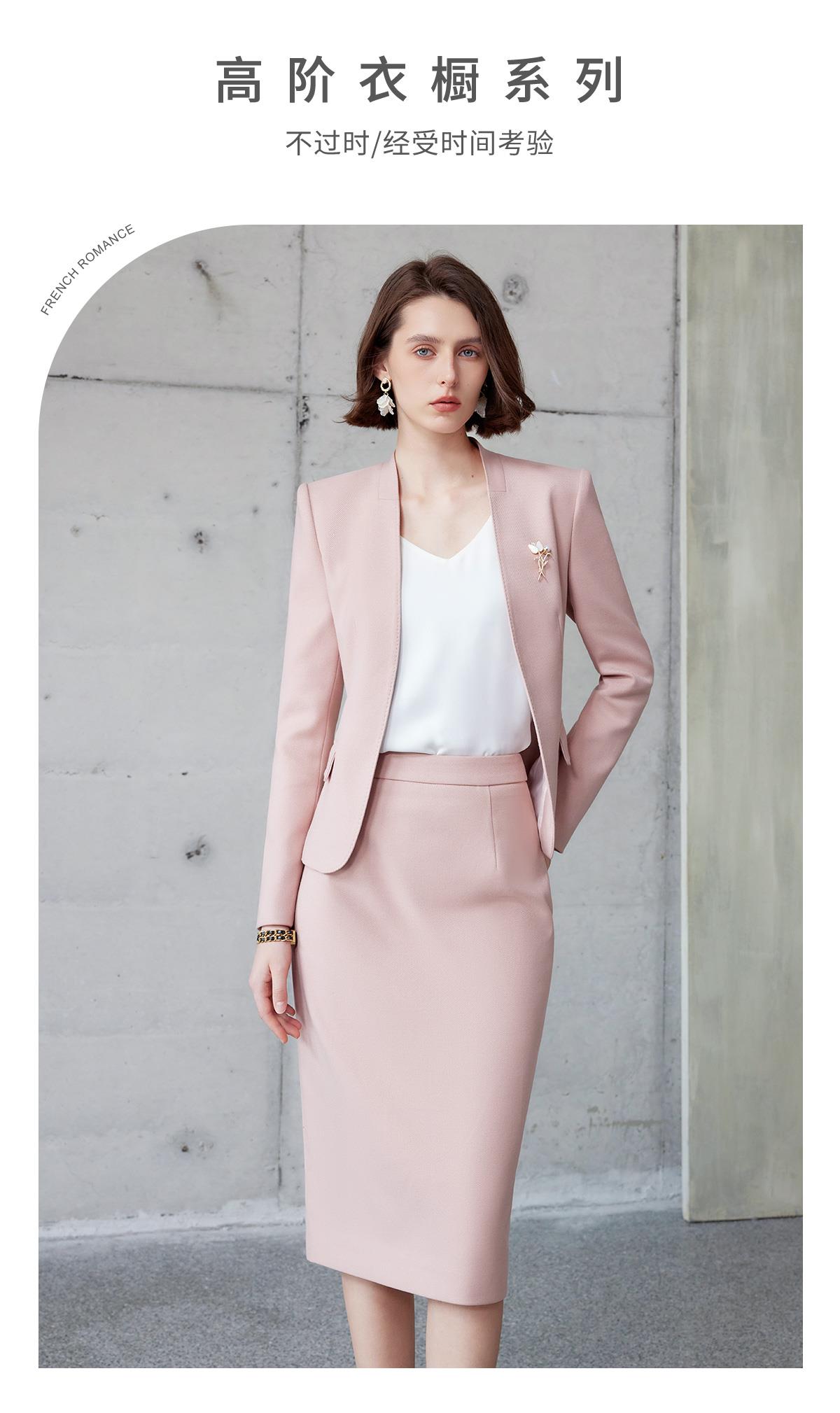 IWY/修身粉色西装套装裙子两件套女式ol职业装半身裙主持人上镜正装秋CS2107