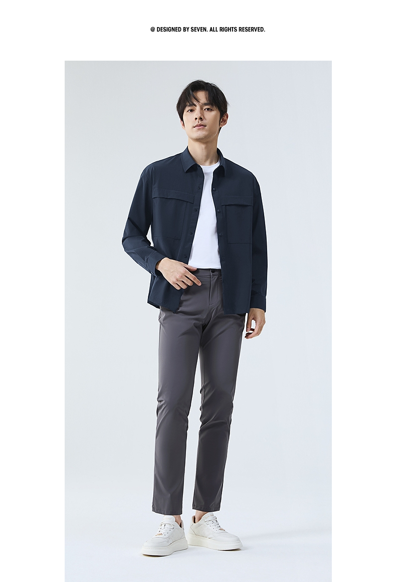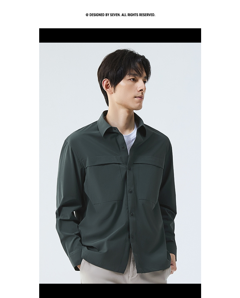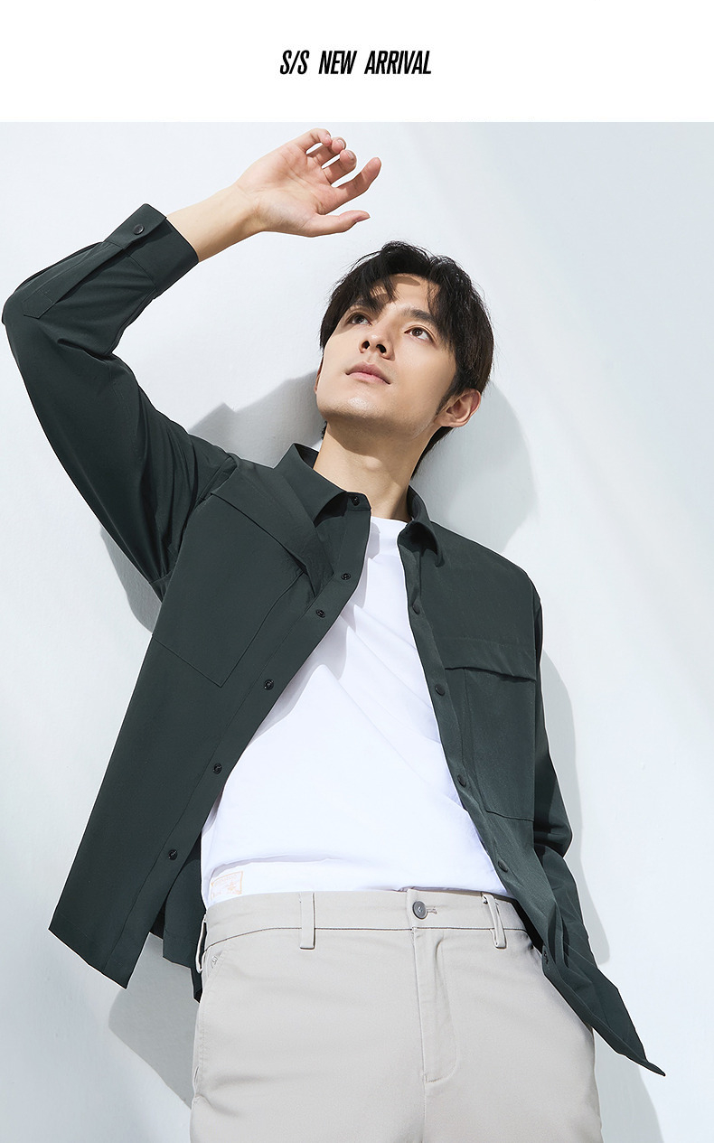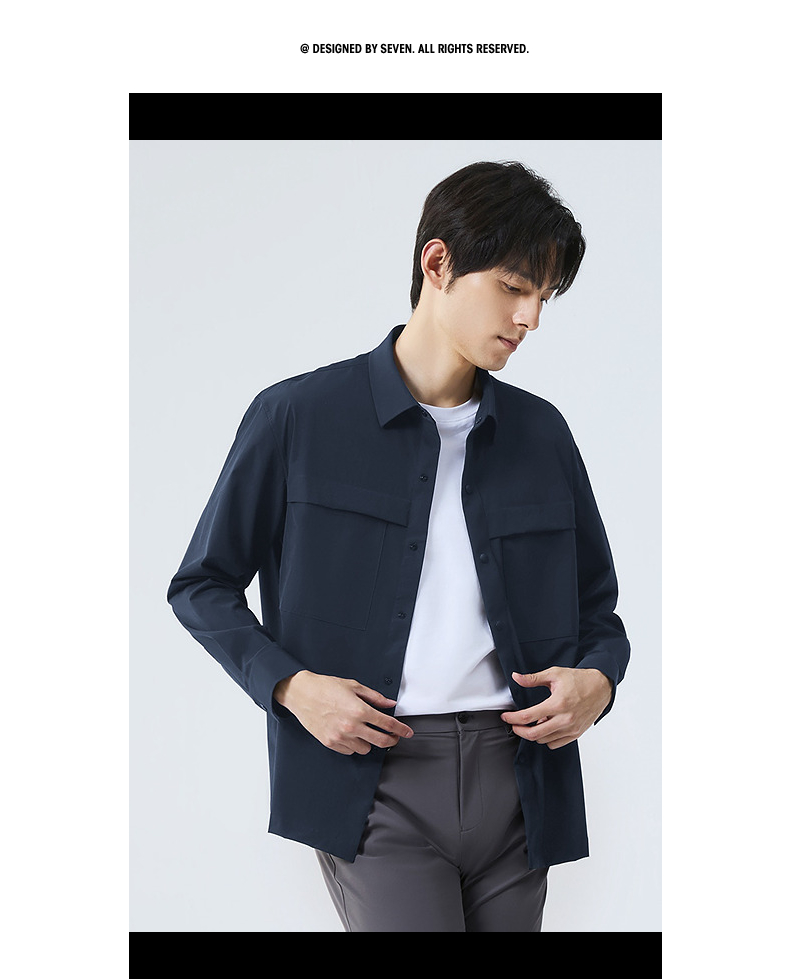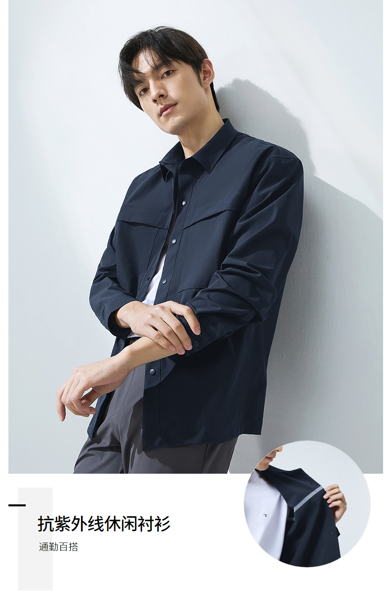 【防晒抗紫外线50+】柒牌长袖衬衫男士春秋新款时尚休闲工装衬衣128A70630