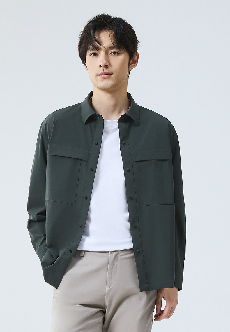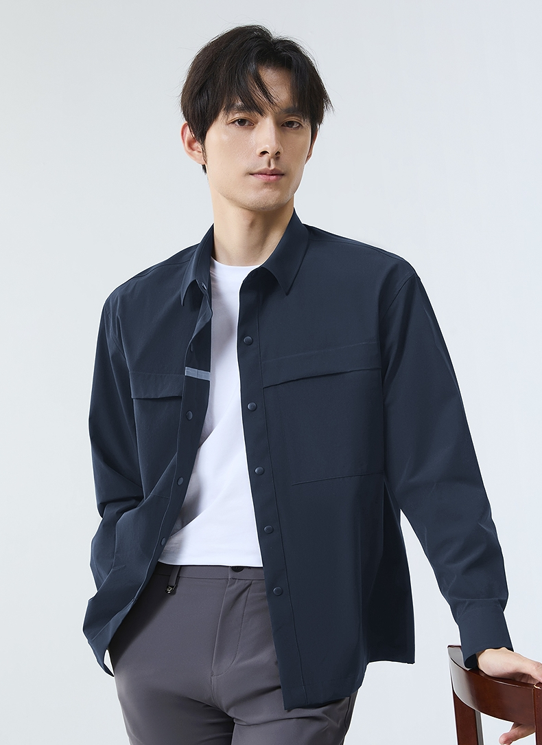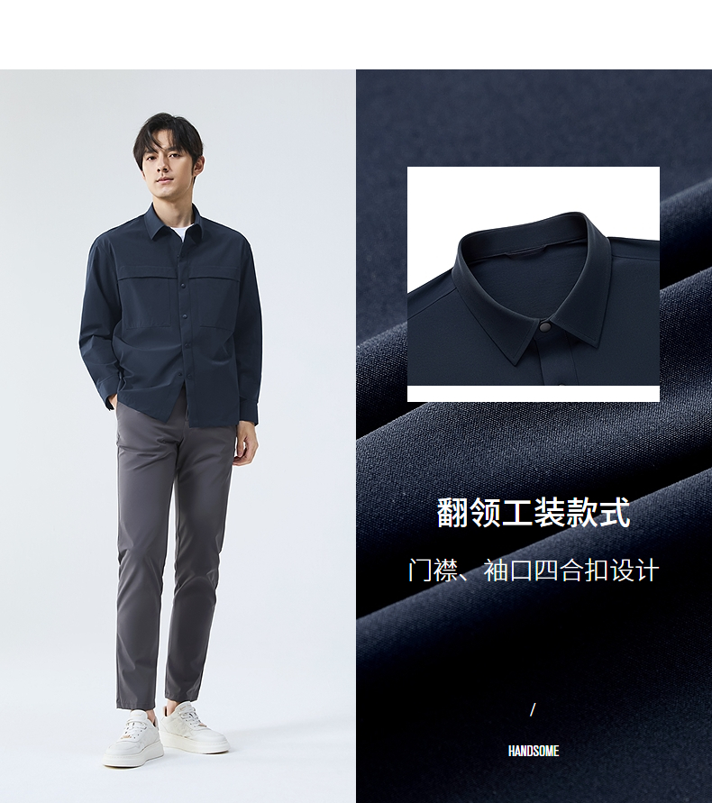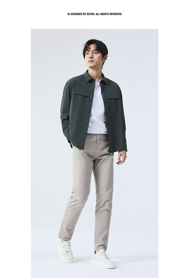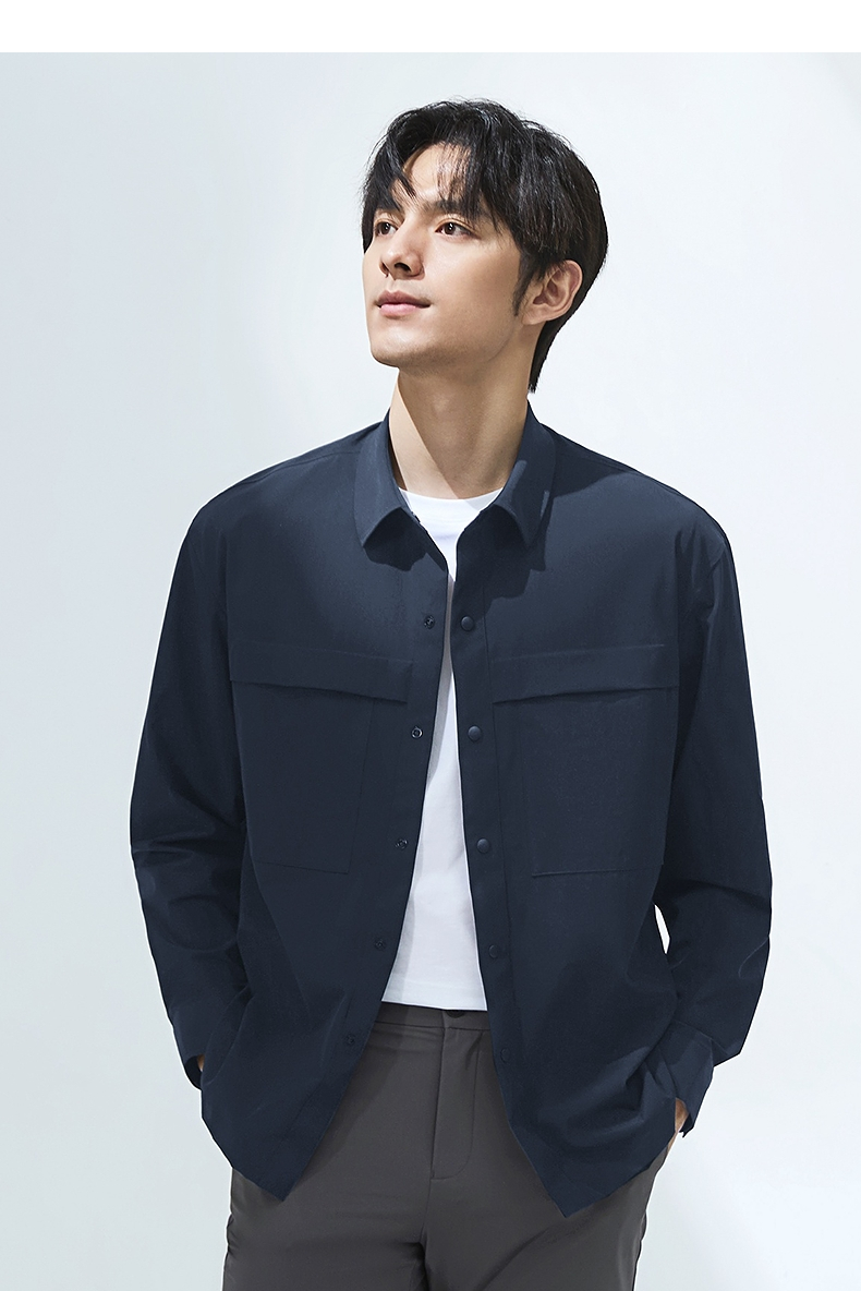 【防晒抗紫外线50+】柒牌长袖衬衫男士春秋新款时尚休闲工装衬衣128A70630