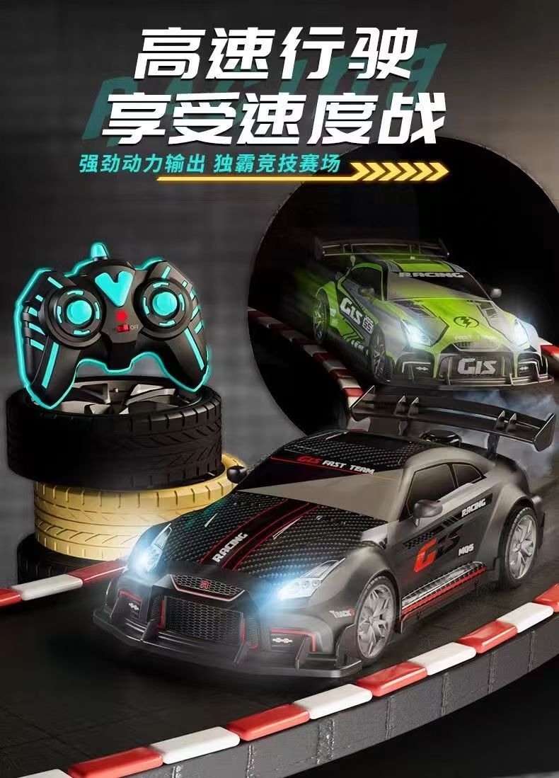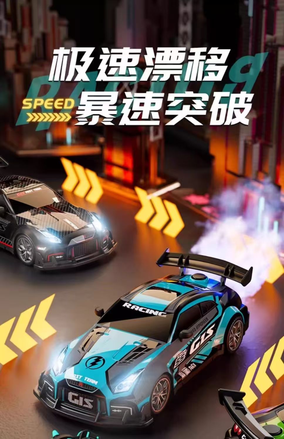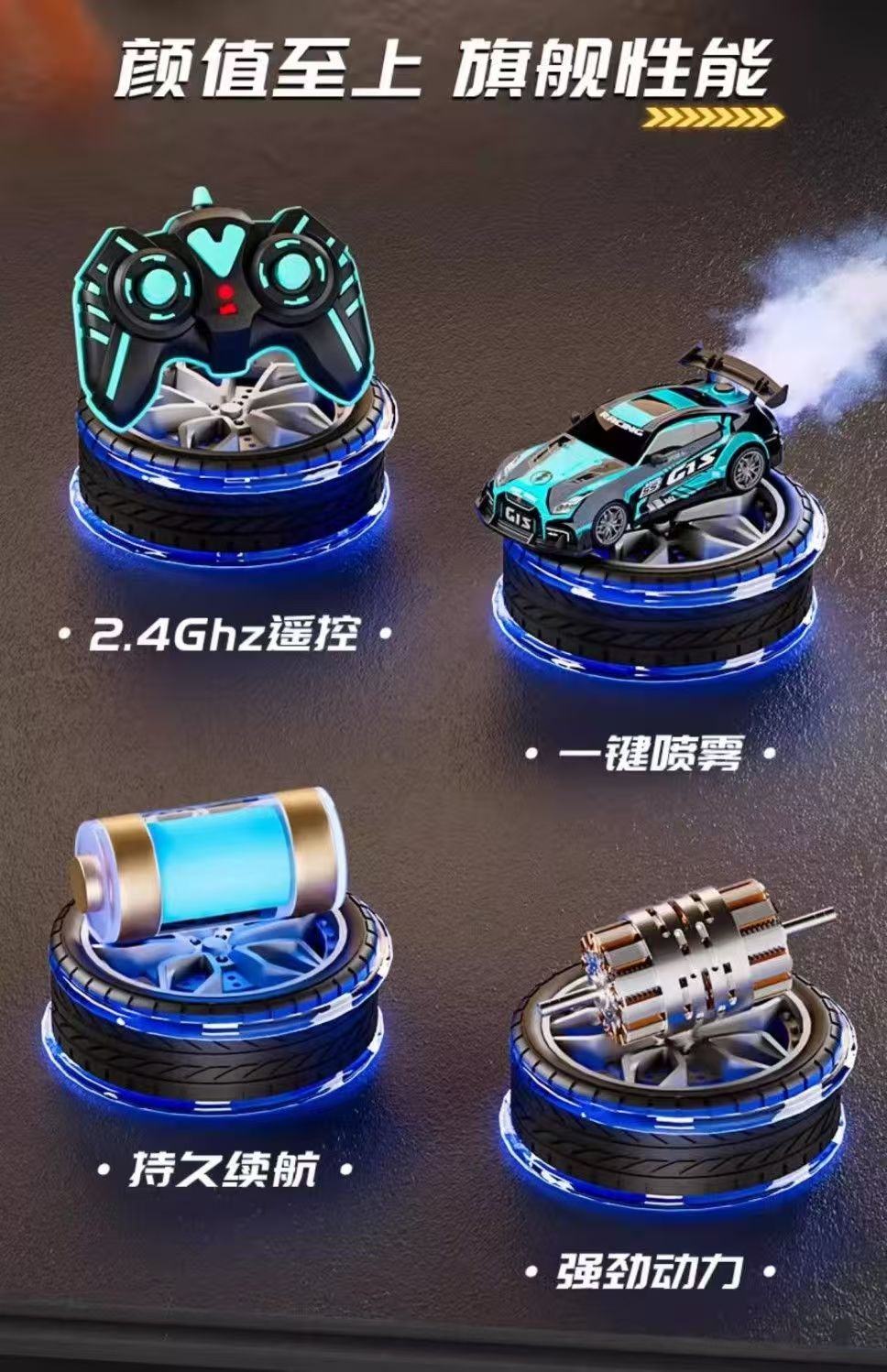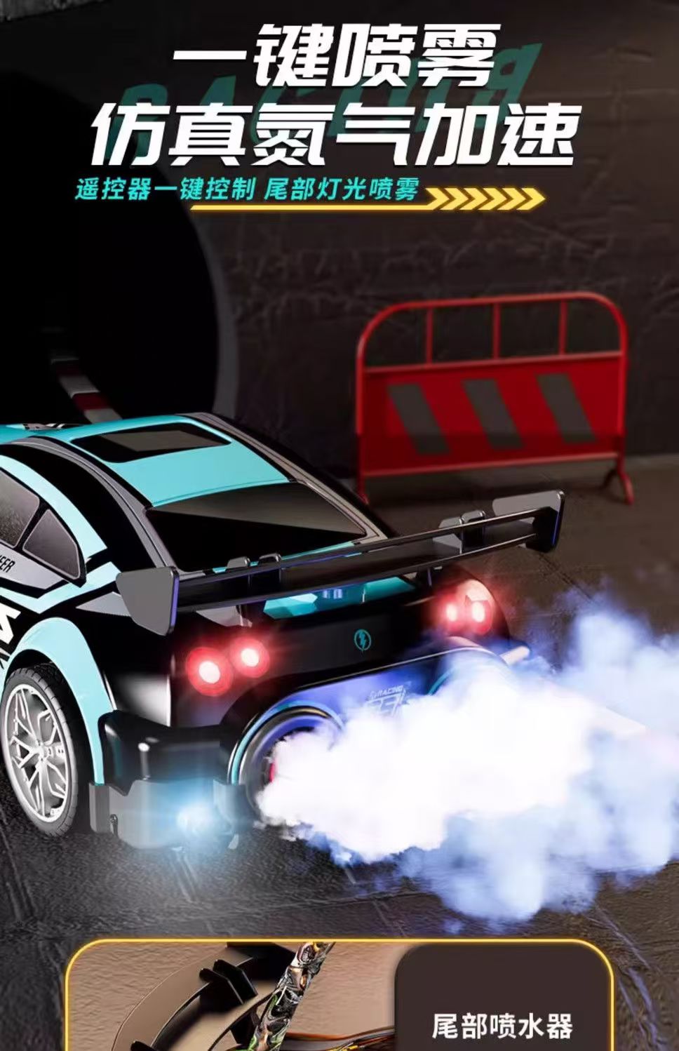 儿童遥控赛车高颜值仿真遥控车灯光音乐带喷雾高速漂移车儿童玩具