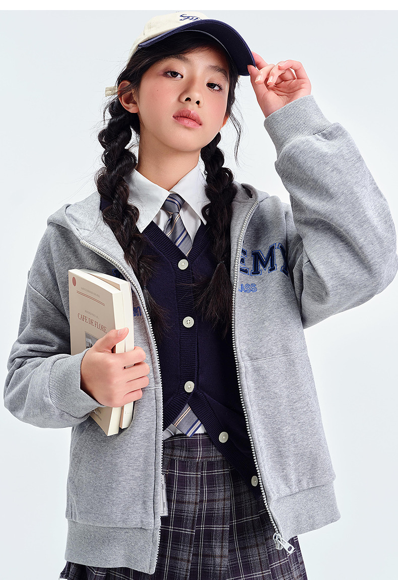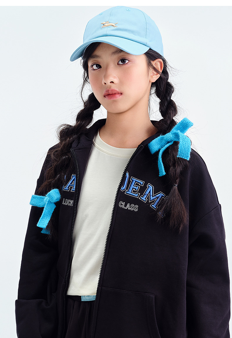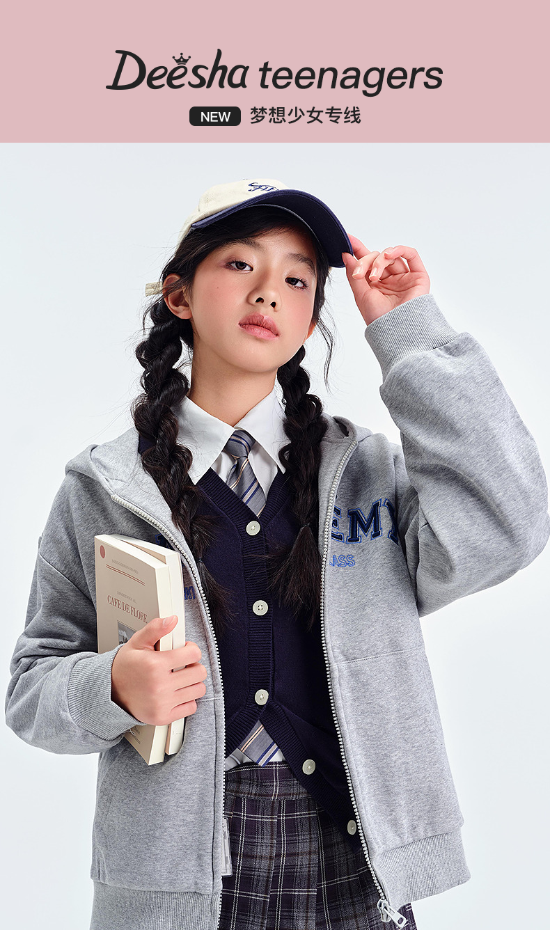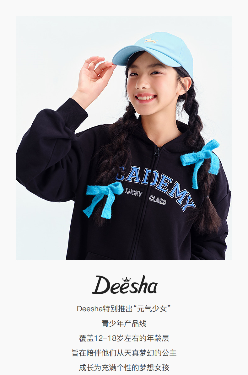 笛莎Deesha青少年女童外套2025春季女童字母刺绣连帽外套