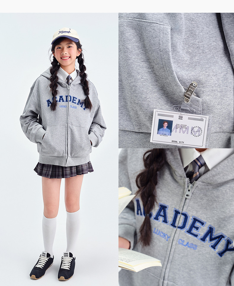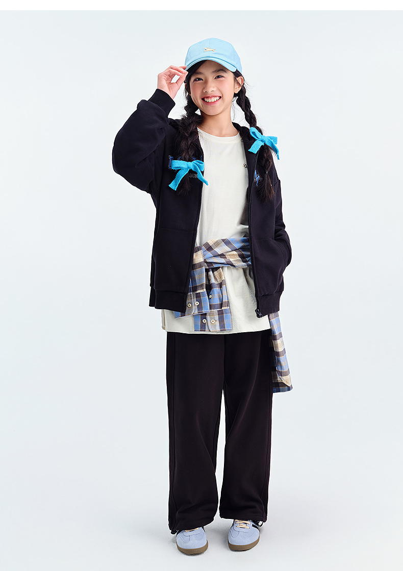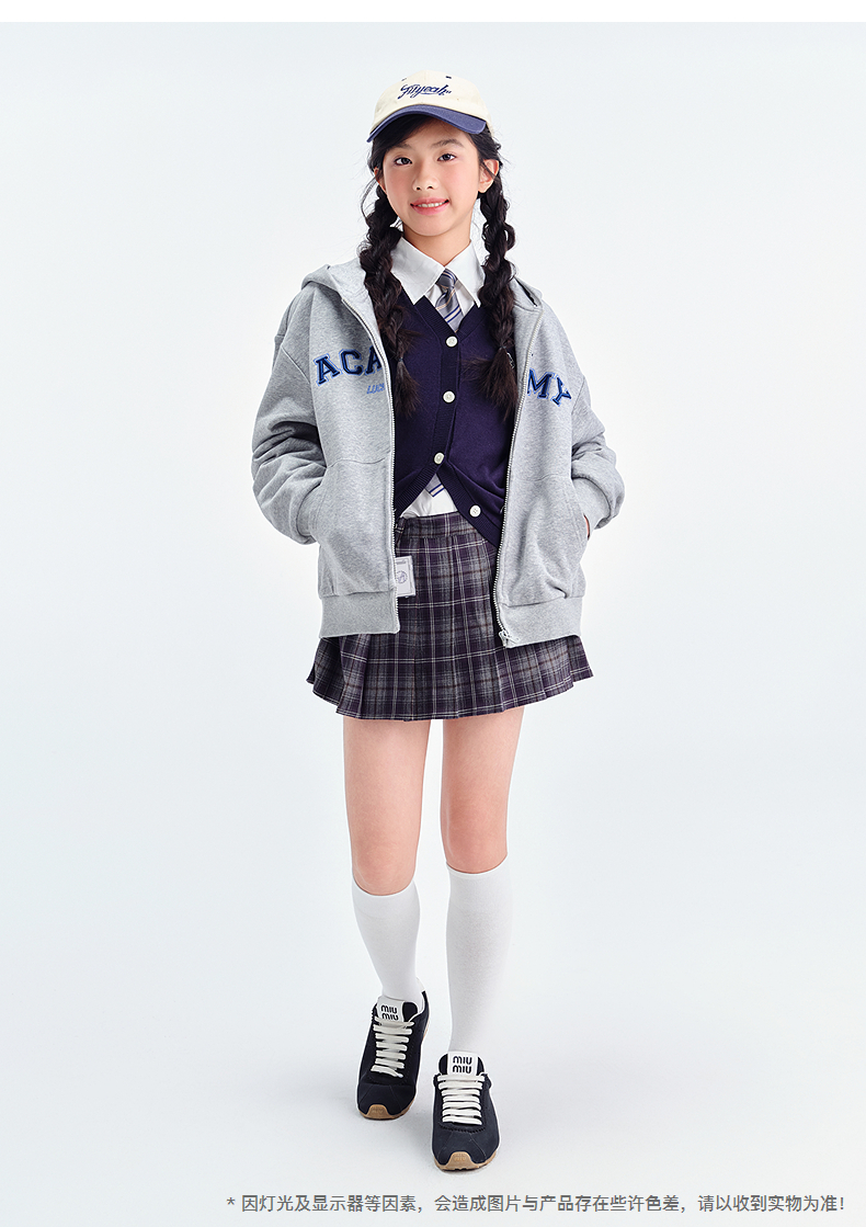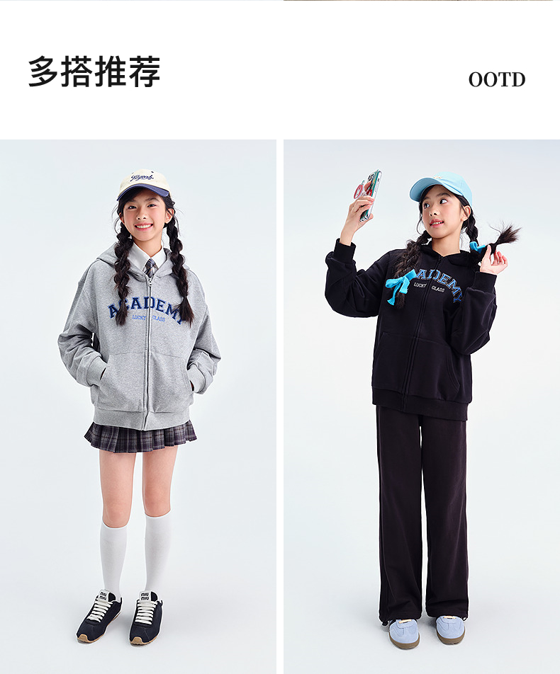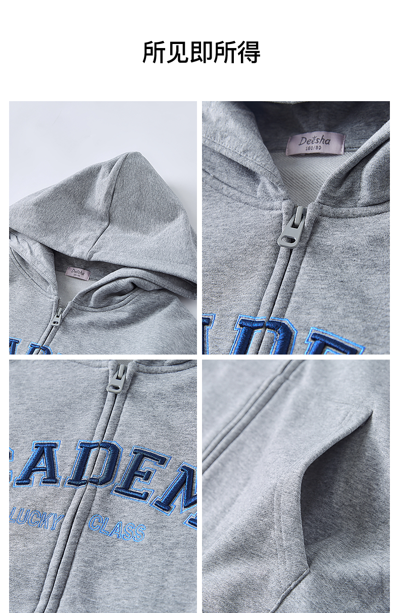 笛莎Deesha青少年女童外套2025春季女童字母刺绣连帽外套
