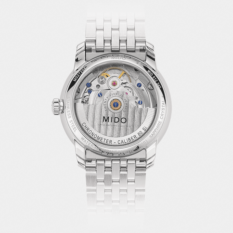 | 机芯 | 自动机械 美度 Caliber 80 天文台认证全自动机械机芯 (以ETA C07.821为基础) 80小时动力储备 瑞士天文台认证 | 表径 | 34 mm |