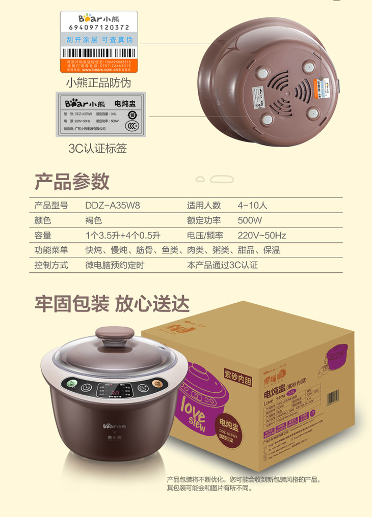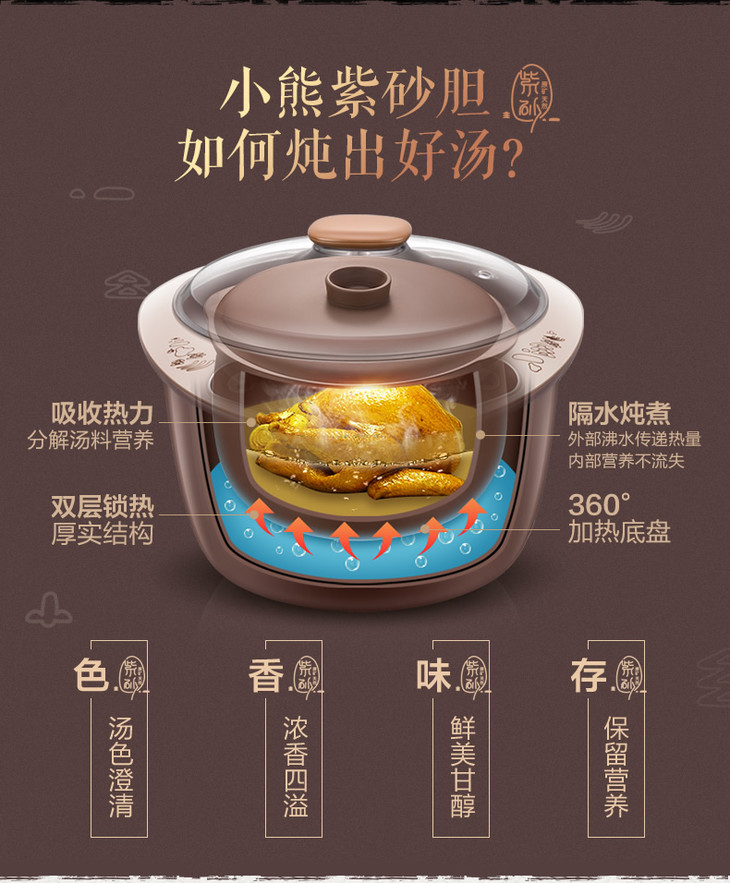 Bear/小熊 DDZ-A35W8(黄小厨)紫砂电炖盅家用隔水炖全自动电炖锅
