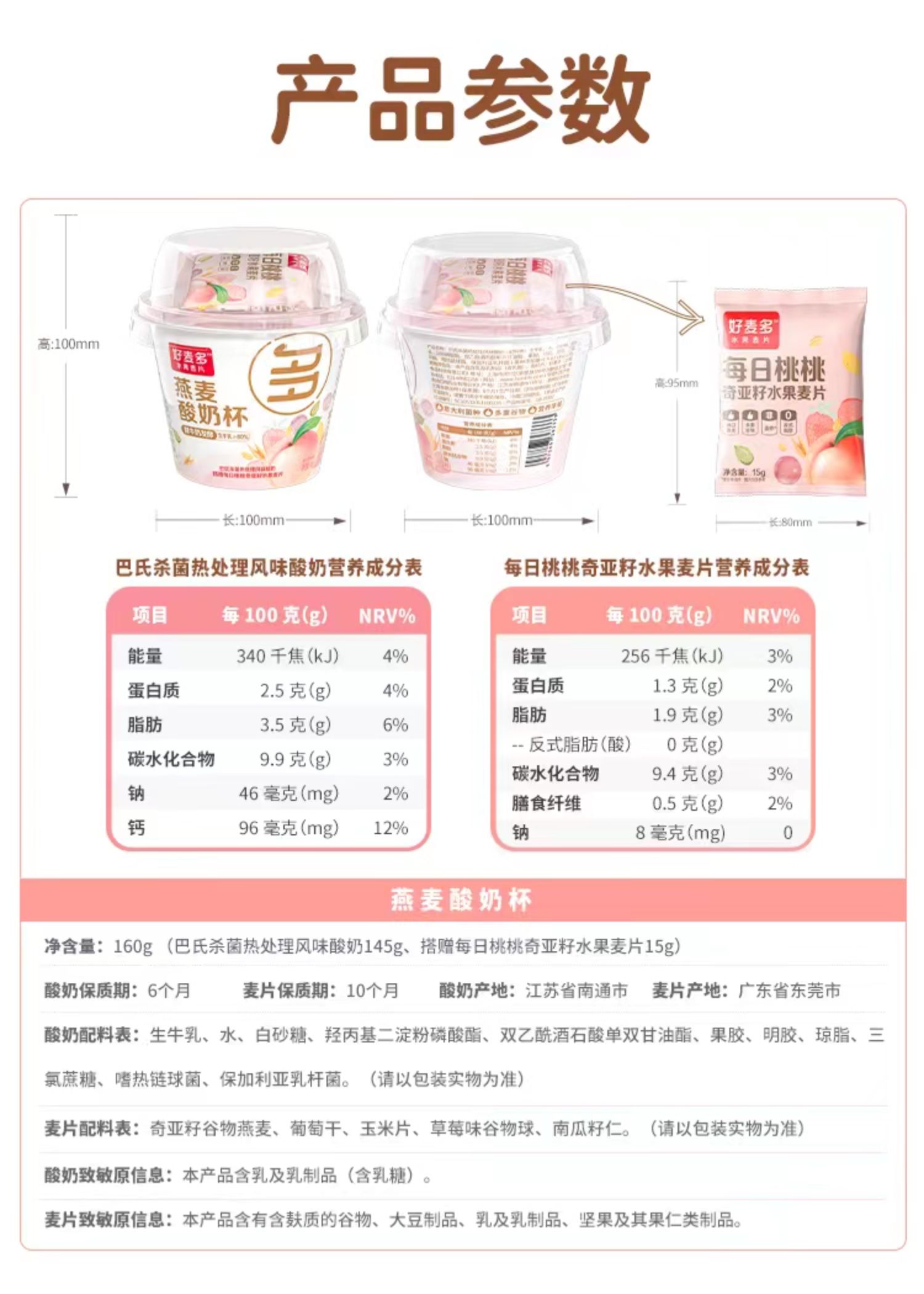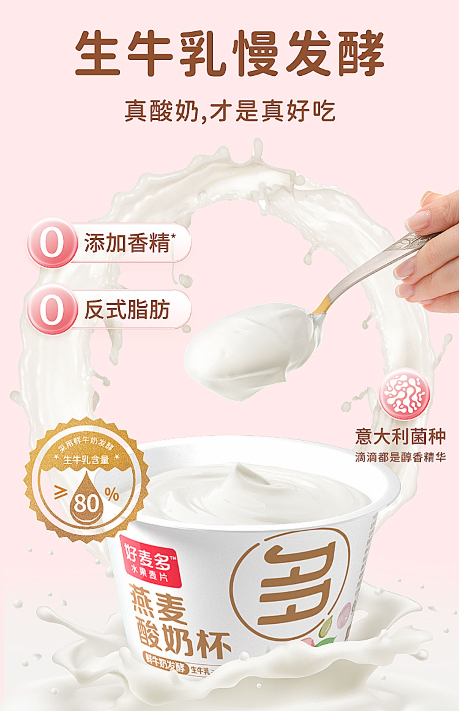 嚼着吃·好麦多燕麦酸奶杯 生牛乳慢发酵懒人即食
