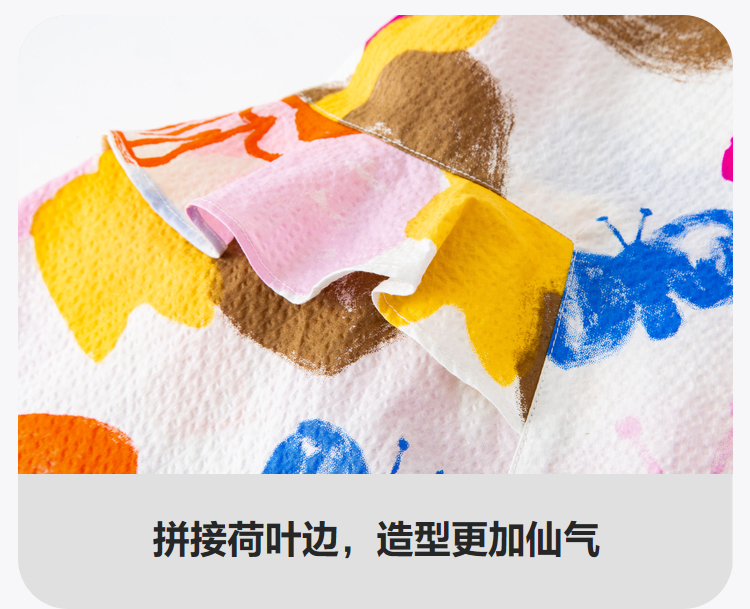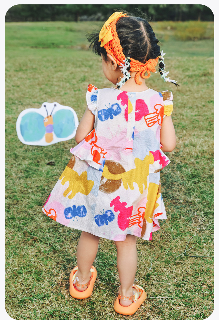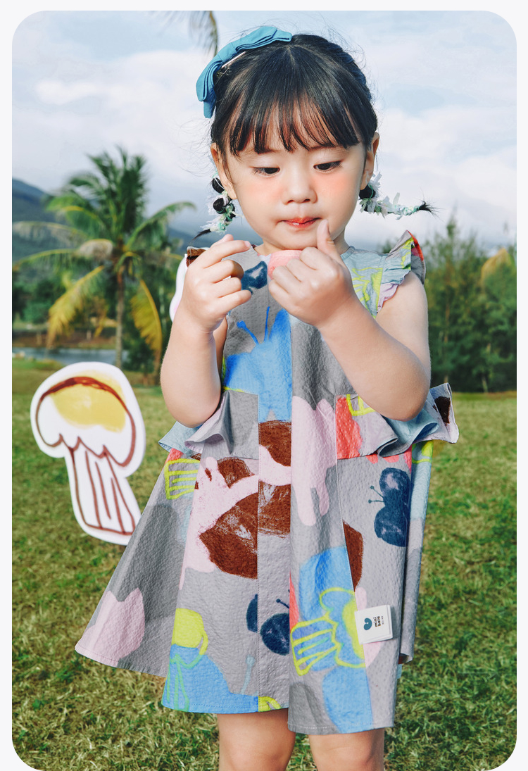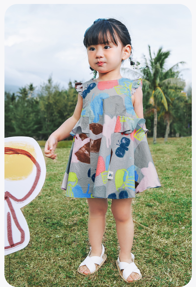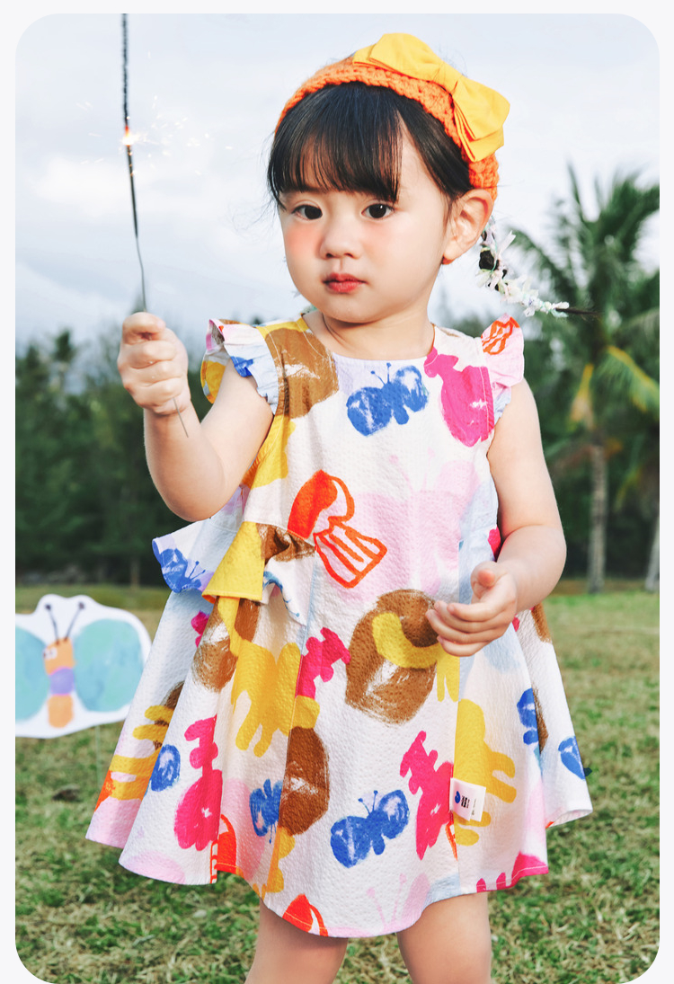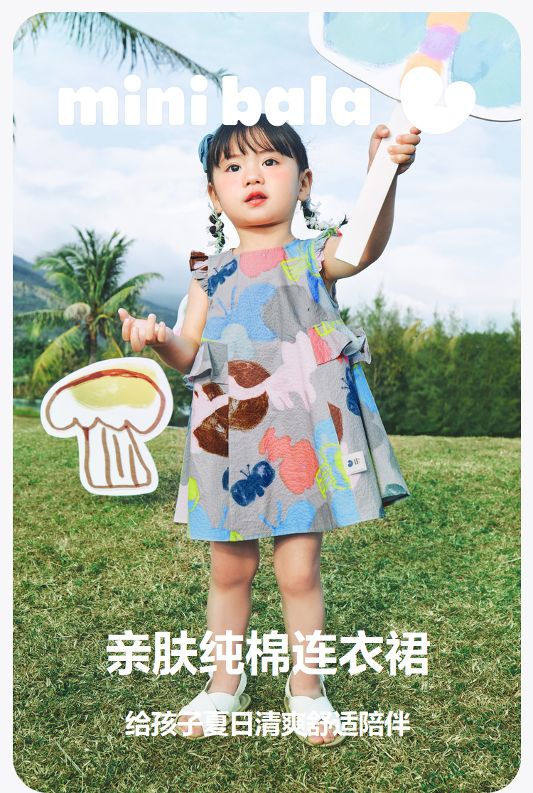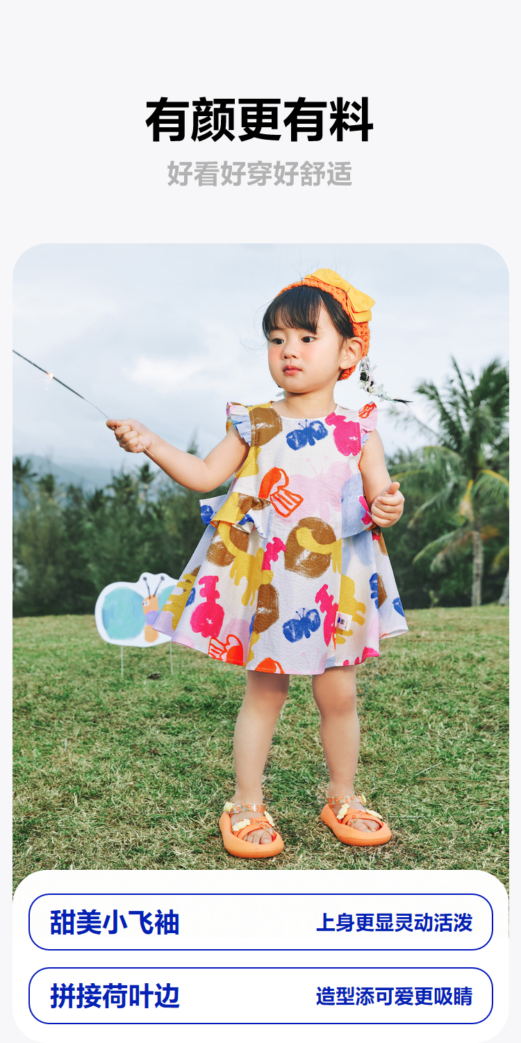迷你巴拉女童宝宝裙子夏季透气纯棉荷叶边小飞袖连衣裙