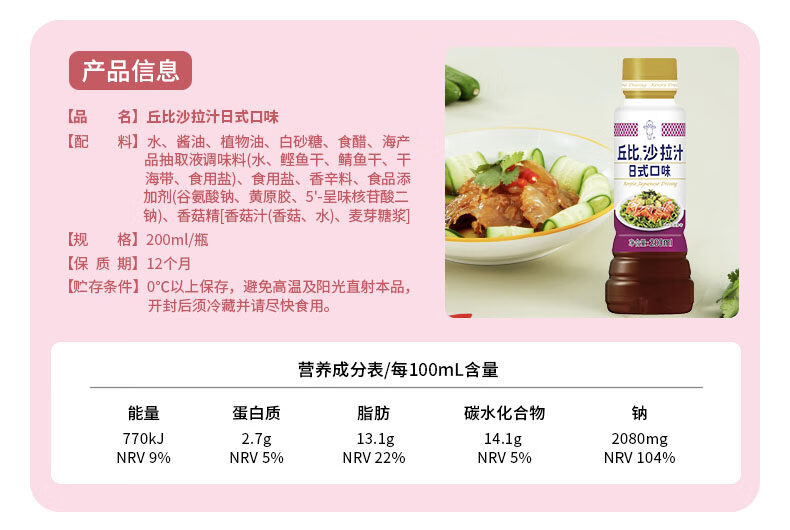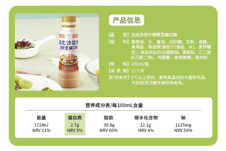 丘比沙拉汁焙煎芝麻味200ml/瓶