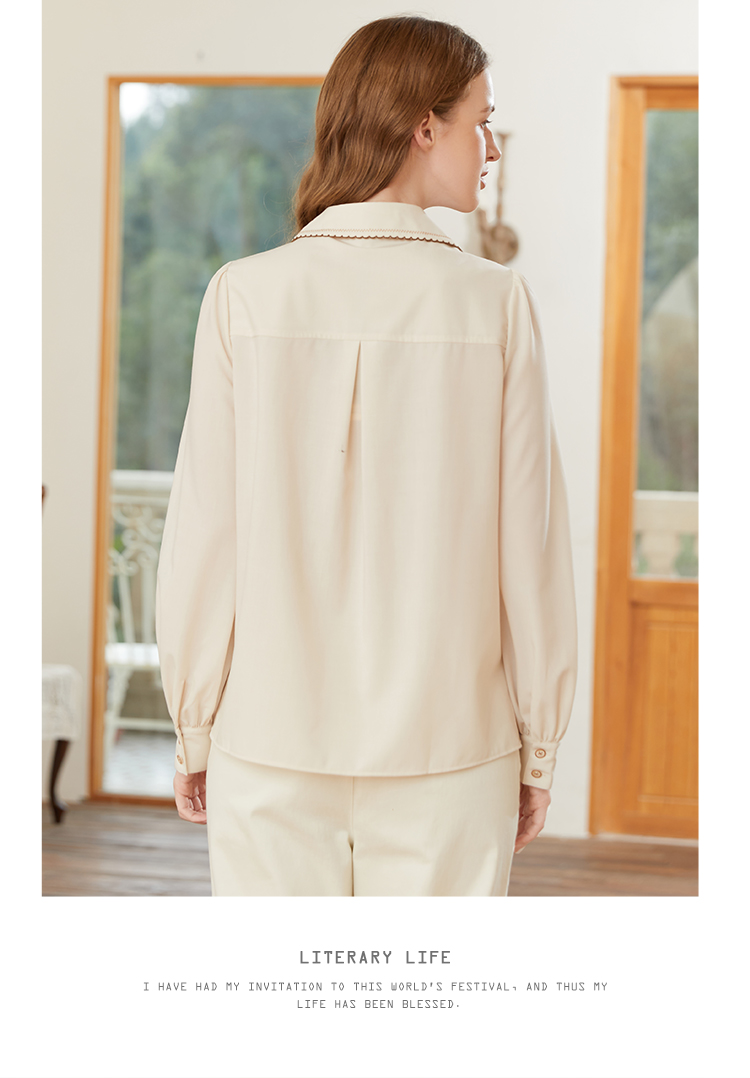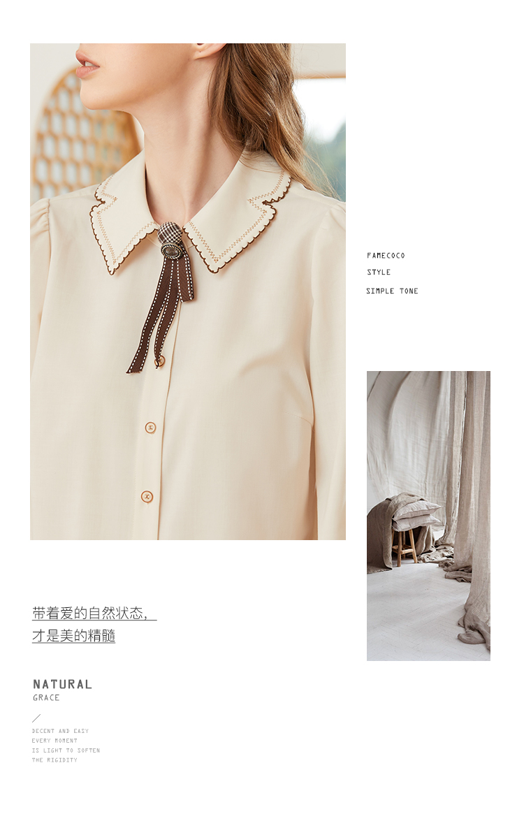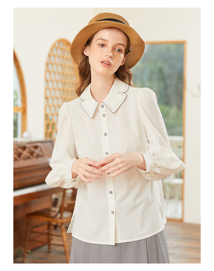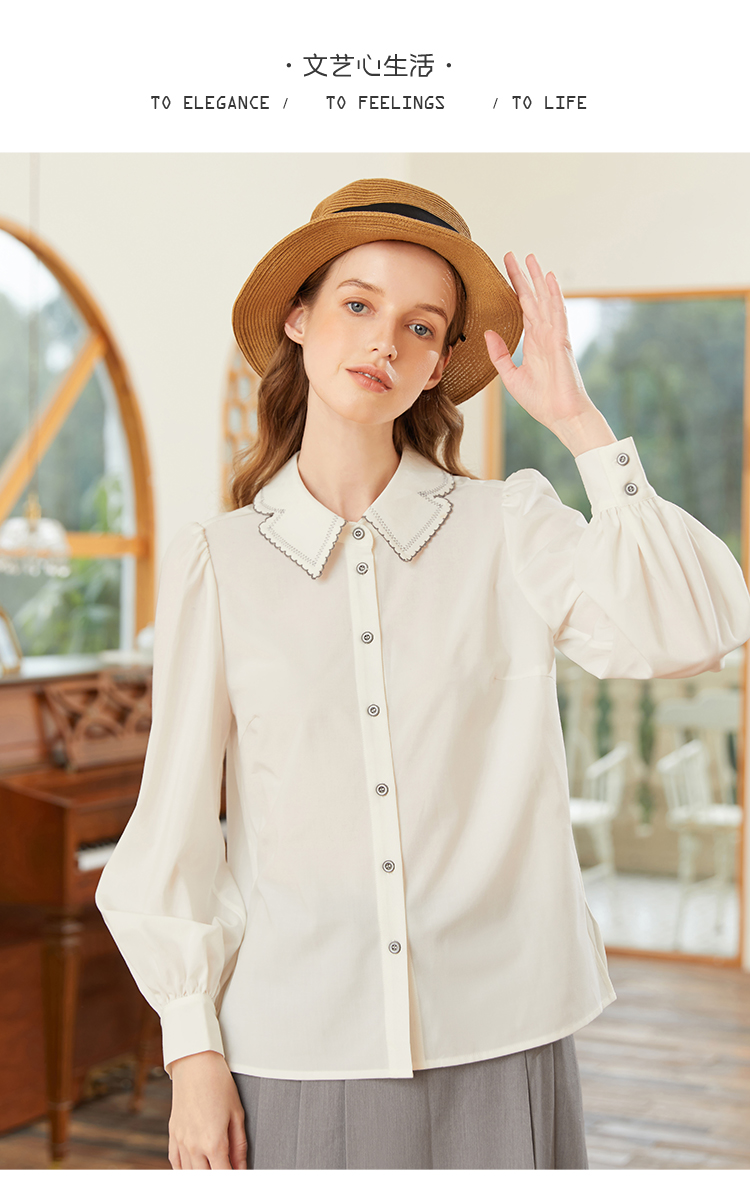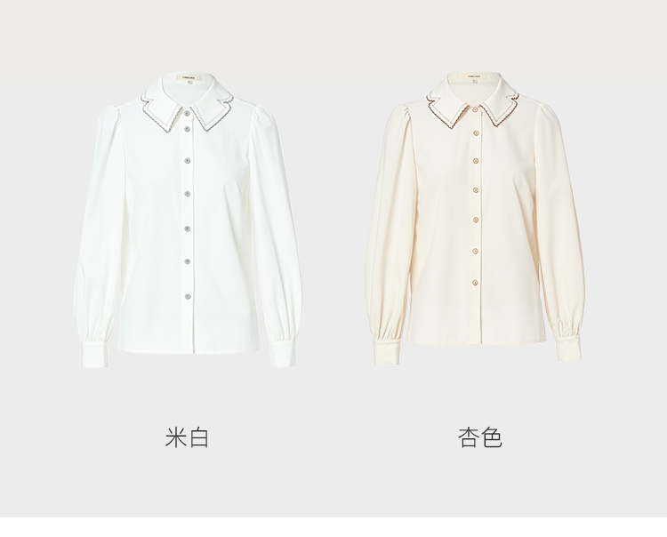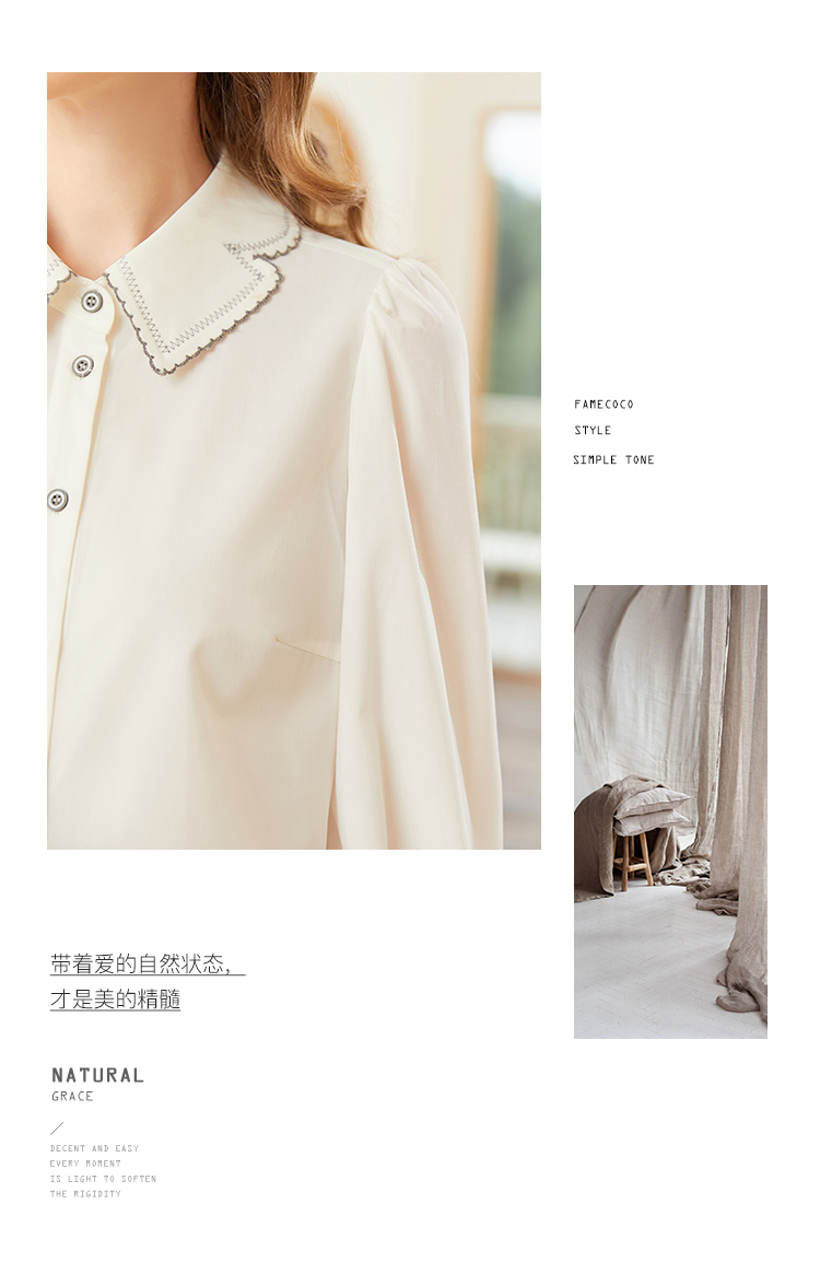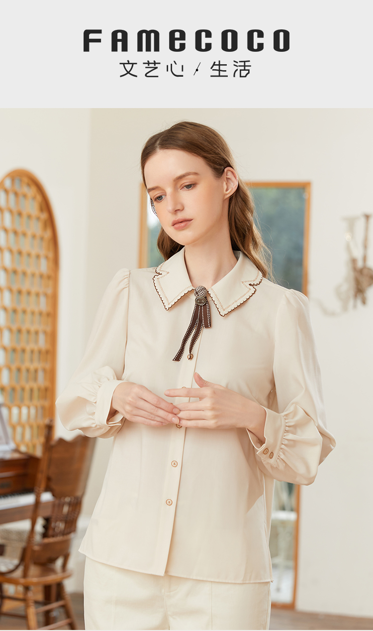 Famecoco范可儿法式灯笼袖女士衬衫春秋款时尚花边领衬衣FAB1BA013