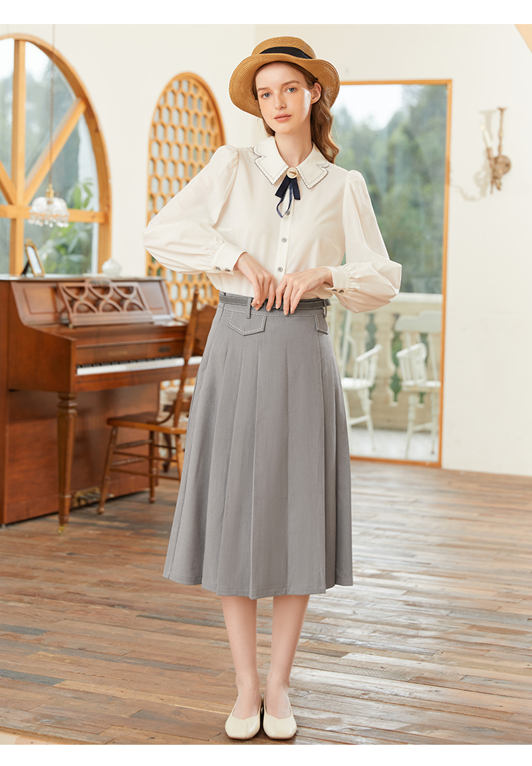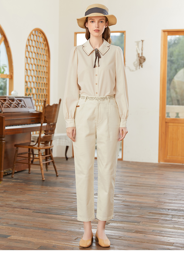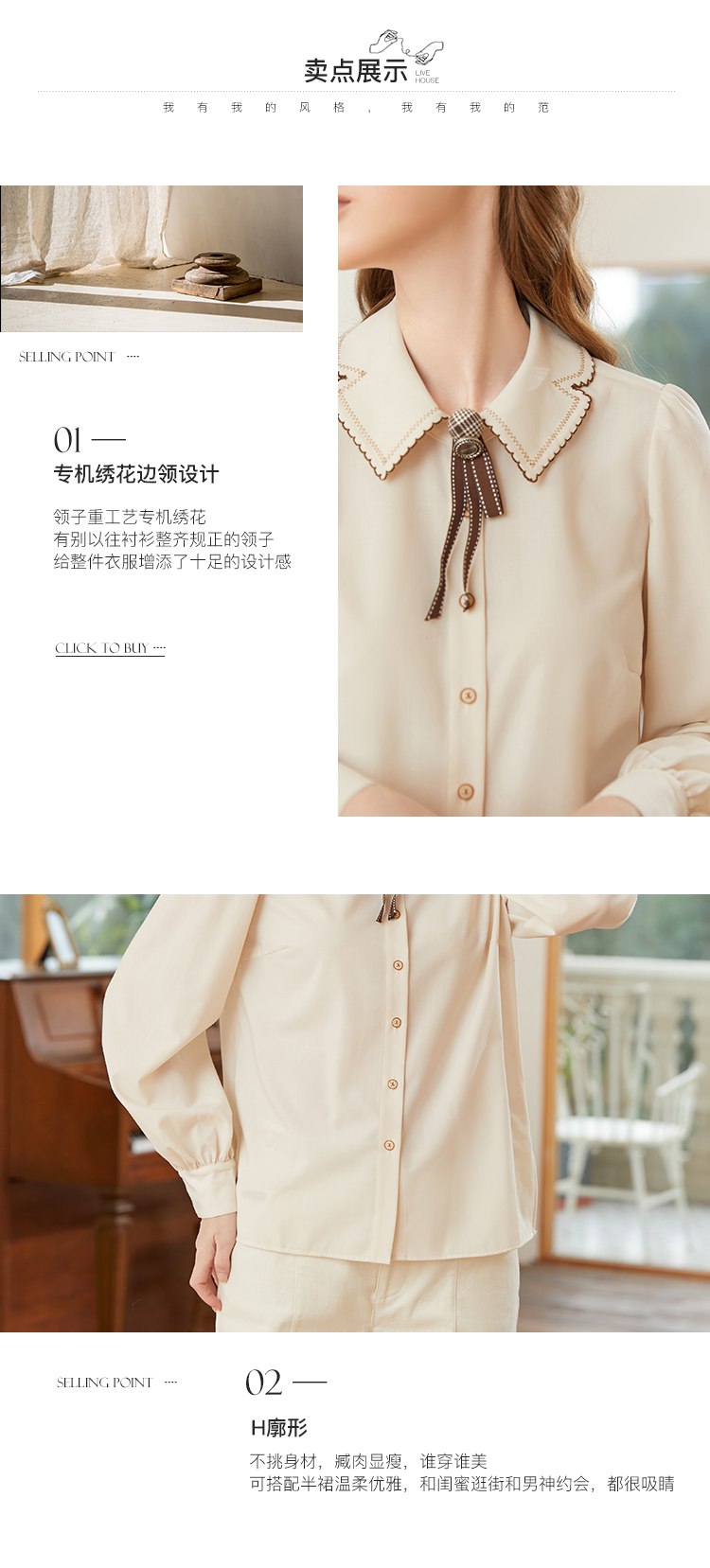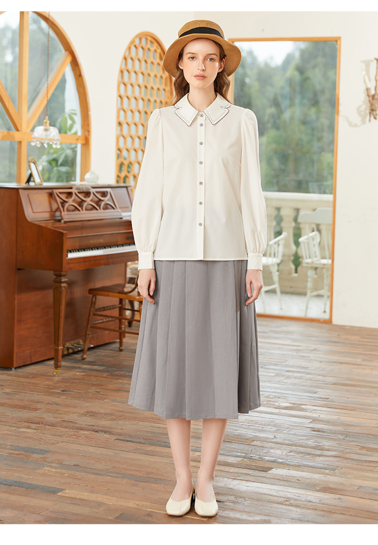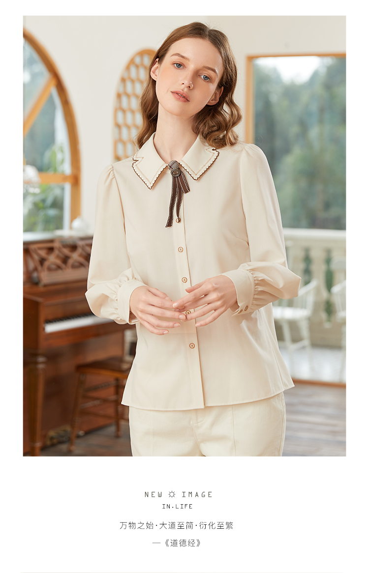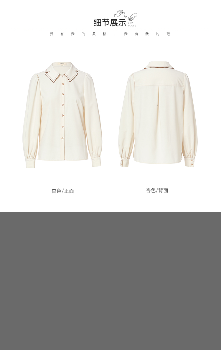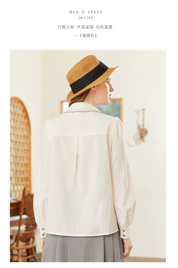 Famecoco范可儿法式灯笼袖女士衬衫春秋款时尚花边领衬衣FAB1BA013