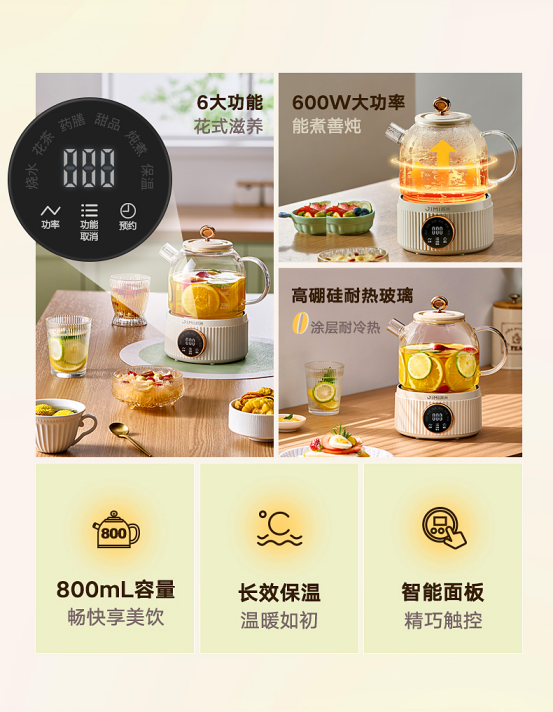 【面板功能】: 烧水/花茶/药膳/甜品//炖煮/保温