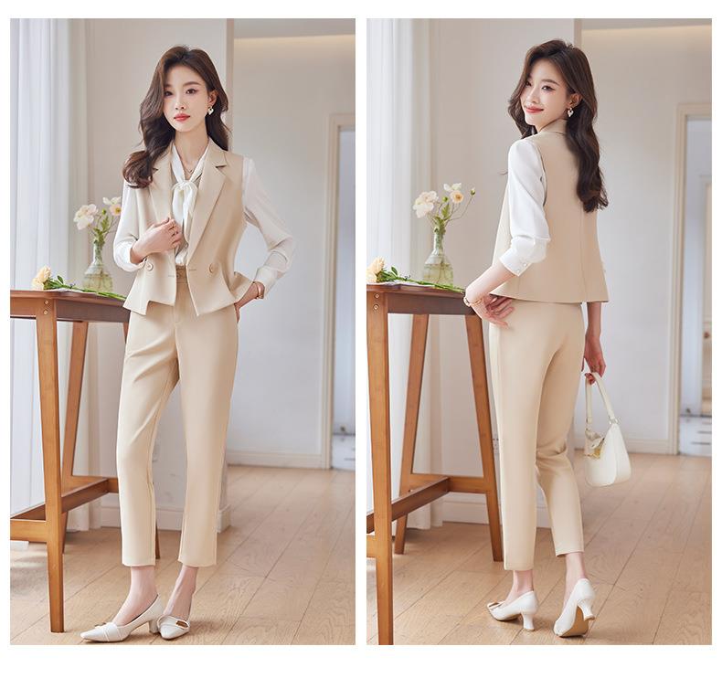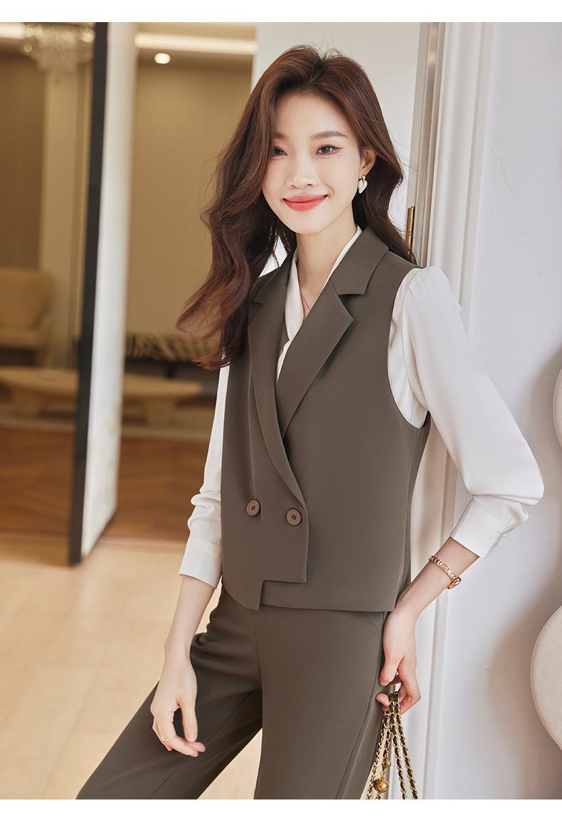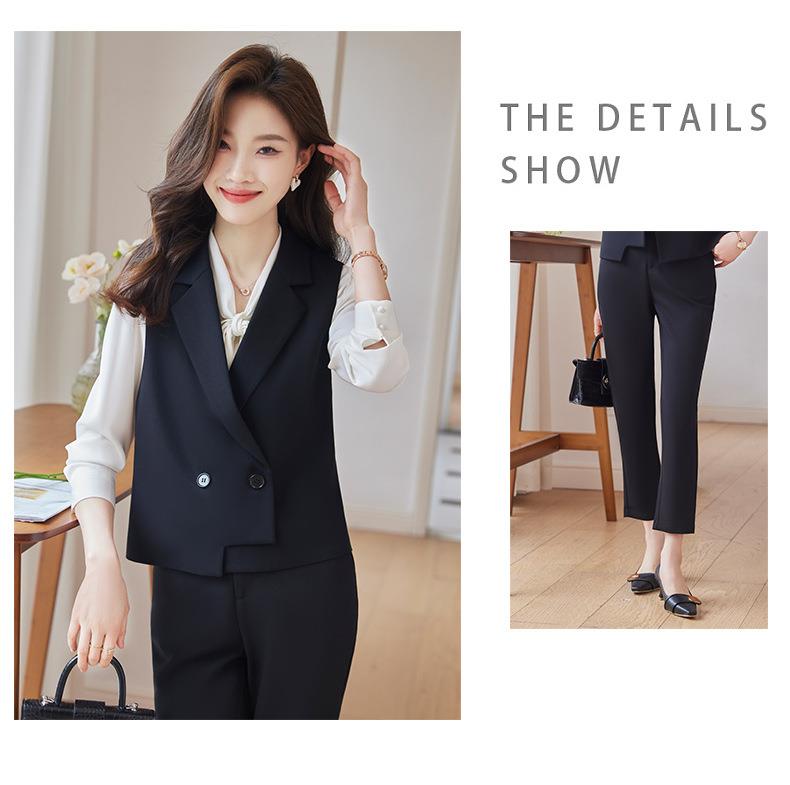 娜璐多 通勤短款马甲小脚裤两件套2023秋季新款休闲简约百搭套装女