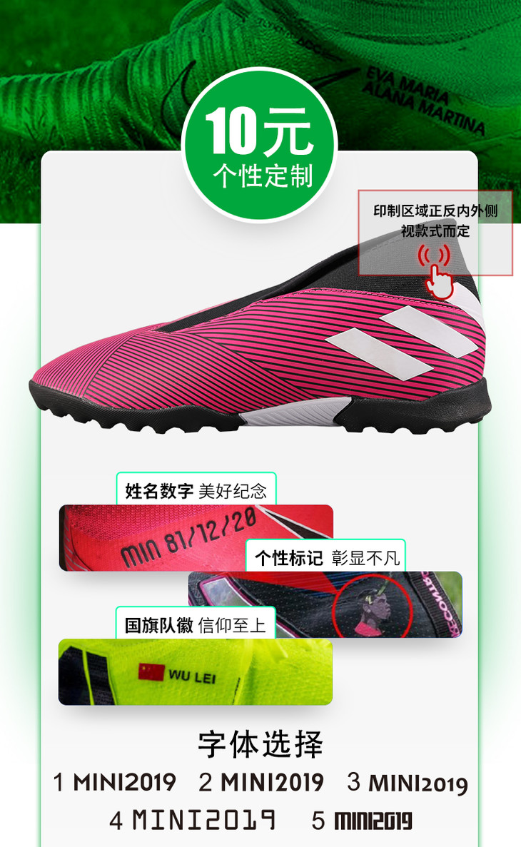 adidas阿迪达斯NEMEZIZ19.3无鞋带TF碎钉足球鞋童款EF8849