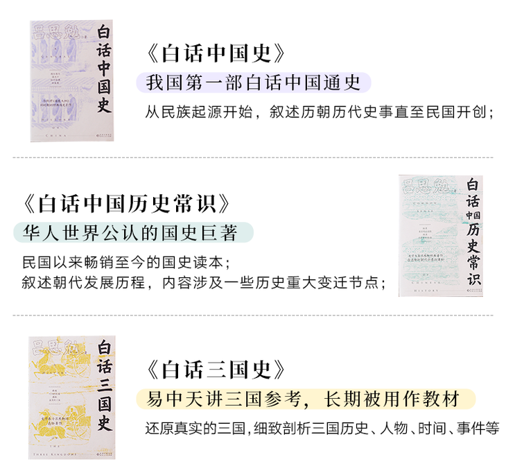 《白话中国史》《白话中国历史常识》《白话三国史》三册分别点线面讲透中国历史,