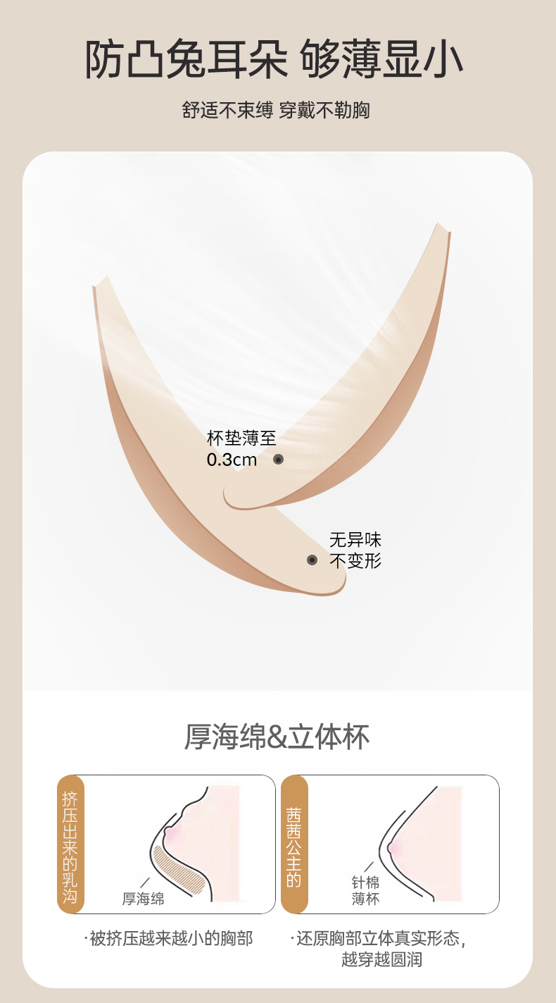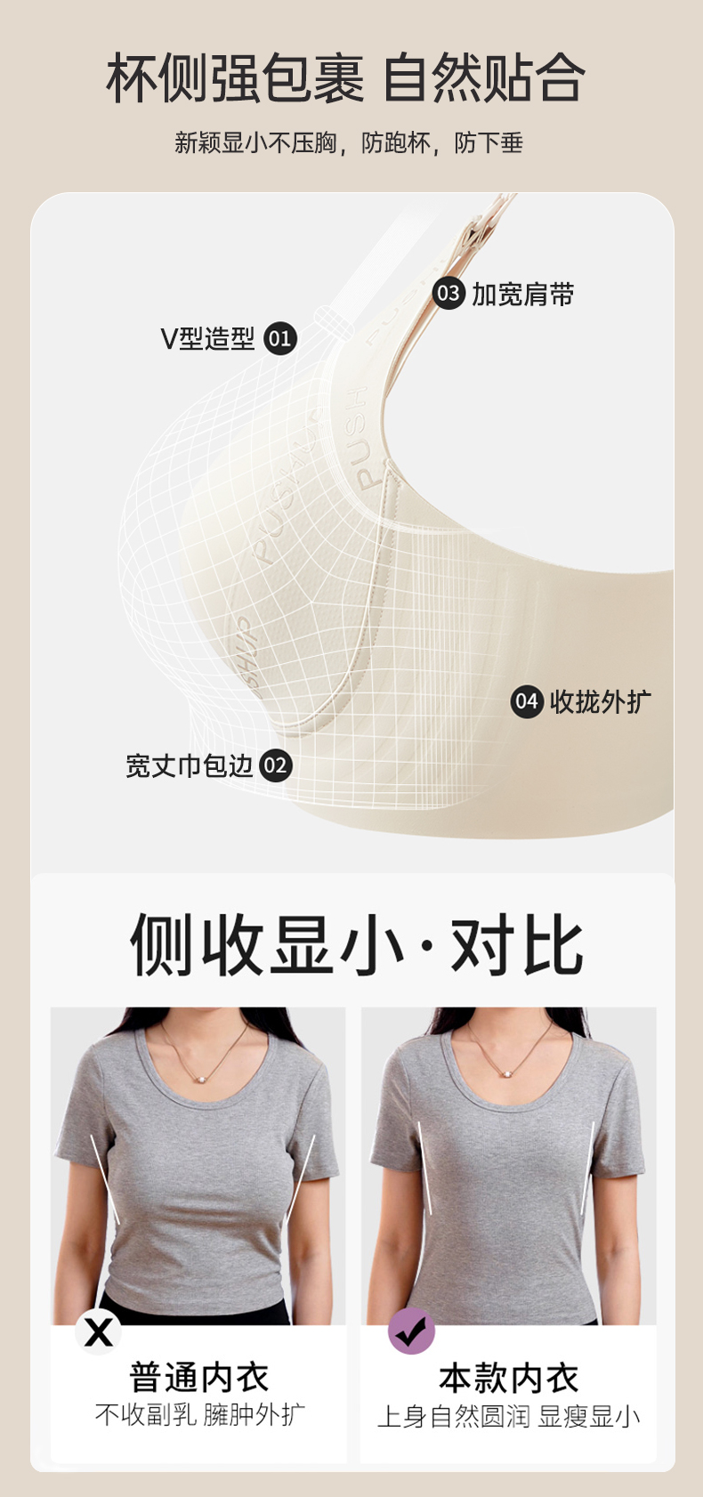 大胸显小,无痕光面,无光圈,舒适显瘦,紧实胸部,高弹无痕光面文胸