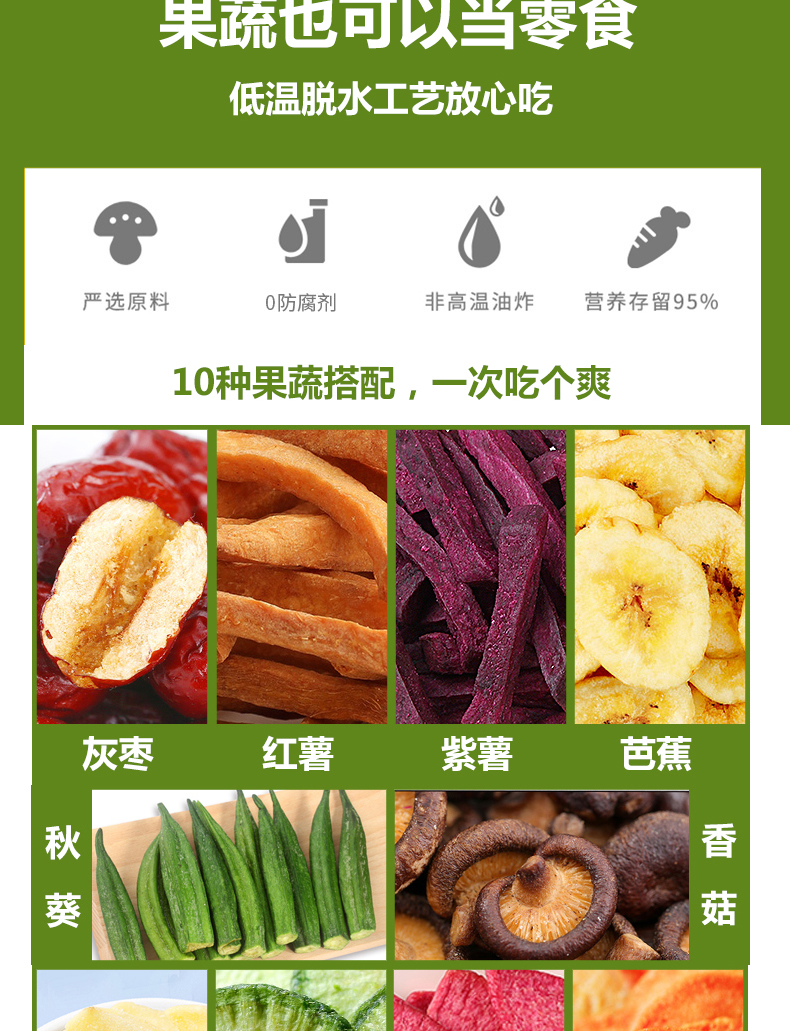 综合果蔬脆,12袋组合,清脆爽口,10种果蔬搭配,低温脱水工艺,留住蔬果本味和营养,无添加,放心吃M