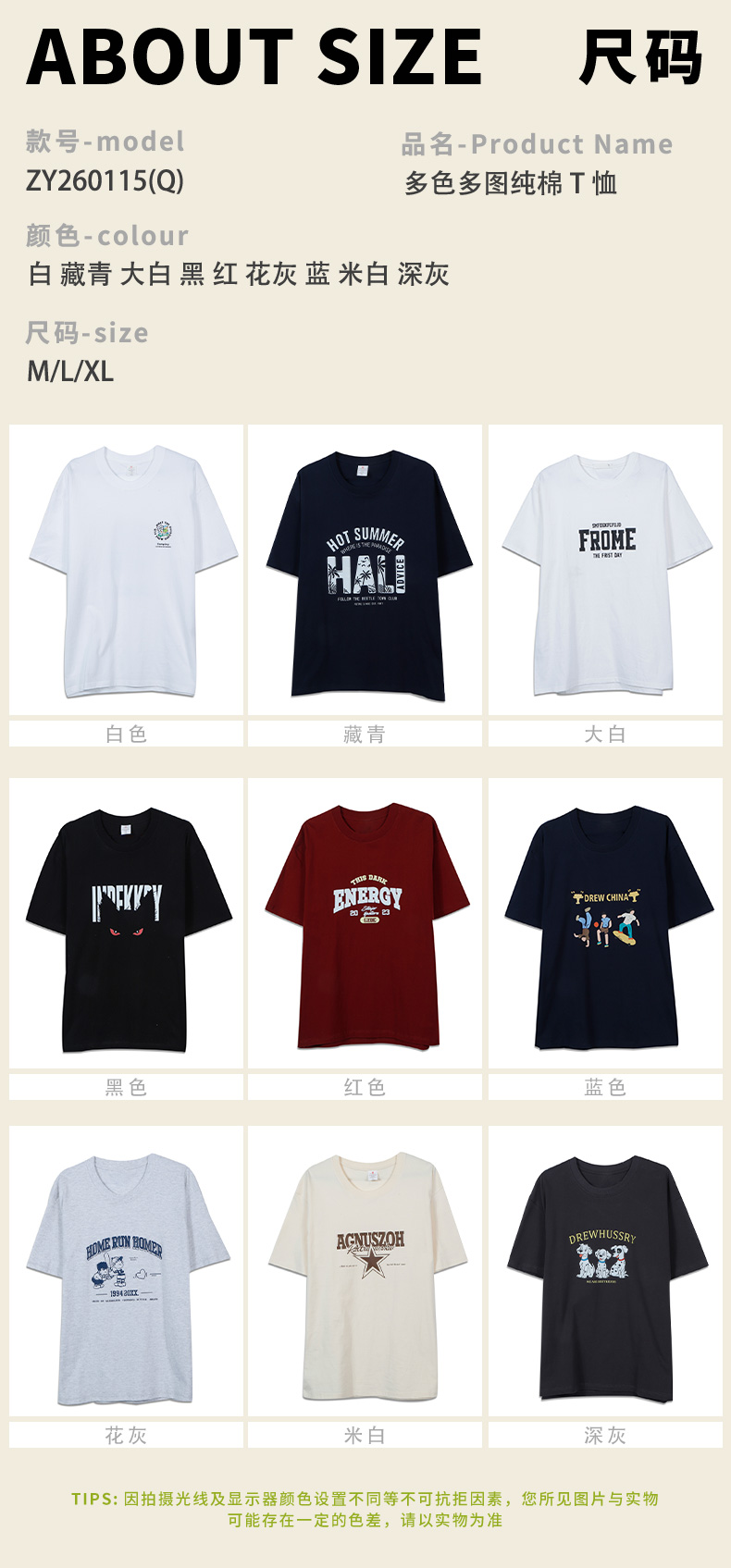 日常通勤多色多图纯棉T恤-纪念日百货门店同款169697966