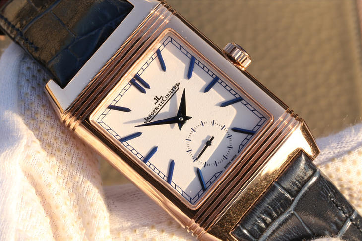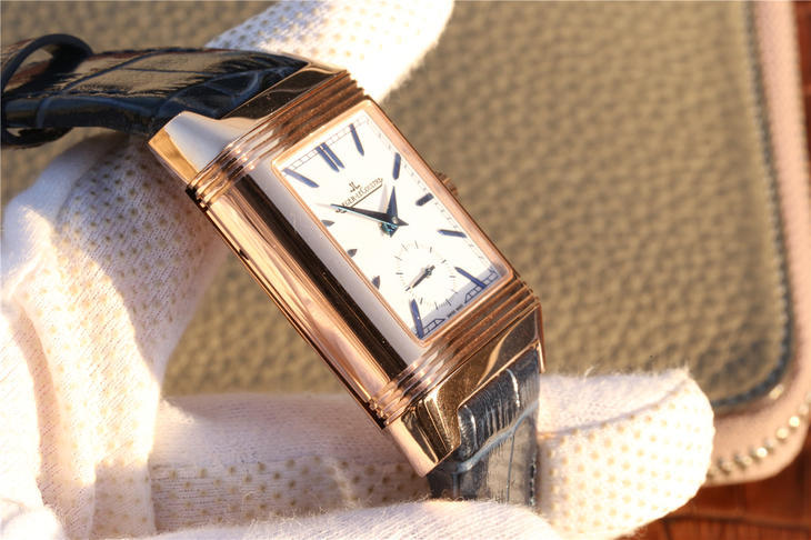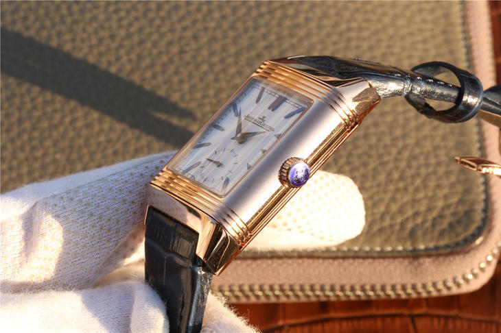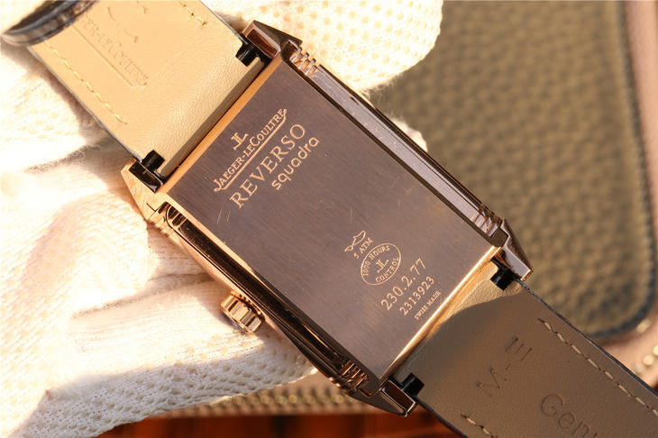 积家翻转系列Reverso腕表,表背可翻转至正面,让背面表盘的精密机械零件一览无余,彰显个性,突破常规的传统表盘。搭载原版复刻机芯,316精钢的几何外形表壳,刻有装饰刻纹,表背具有手动打造的鱼鳞纹饰