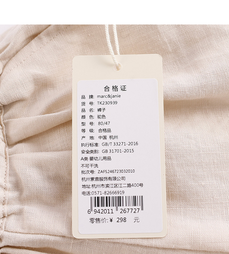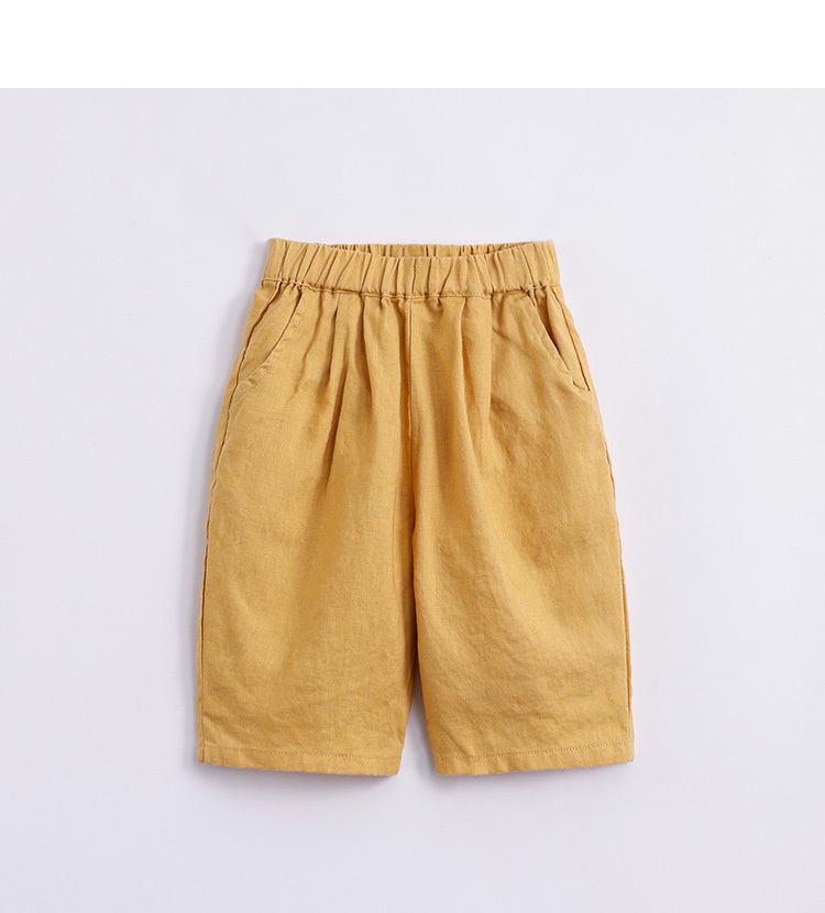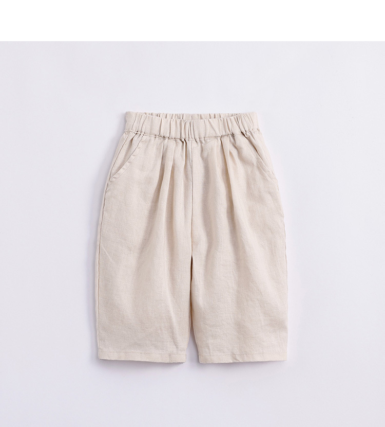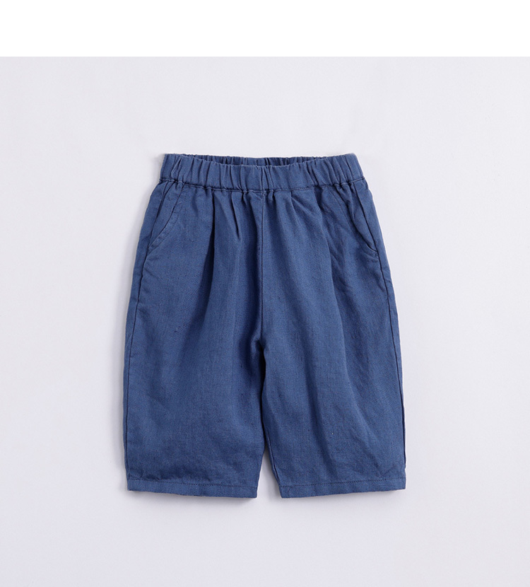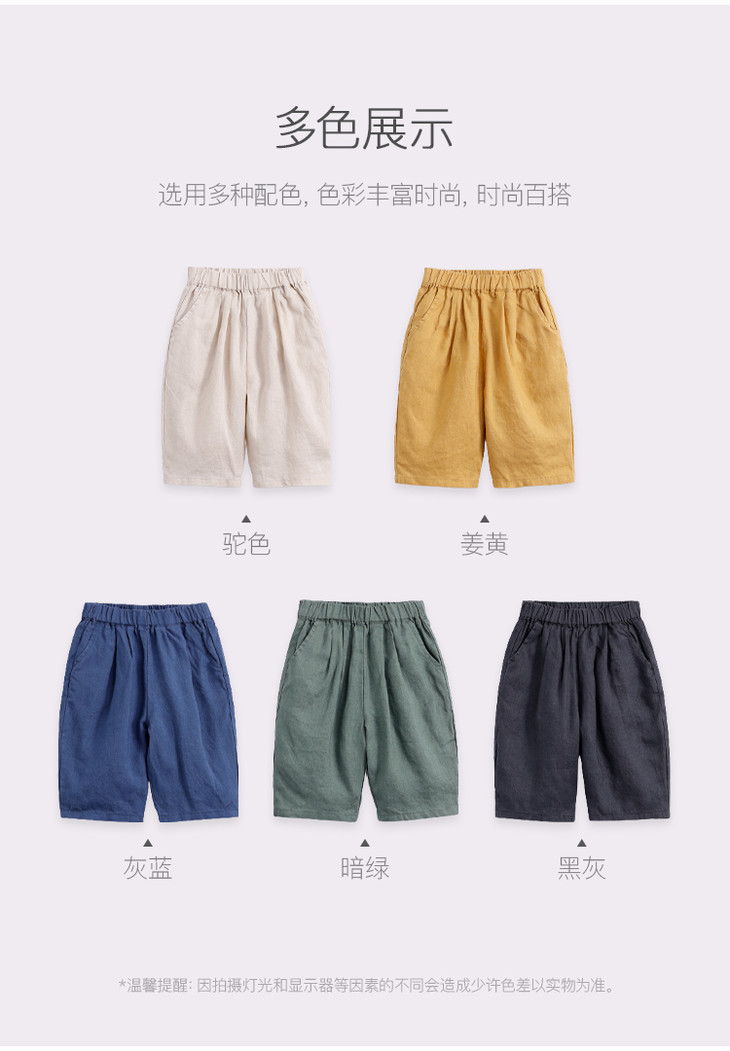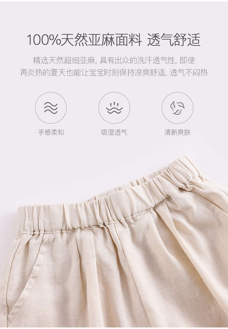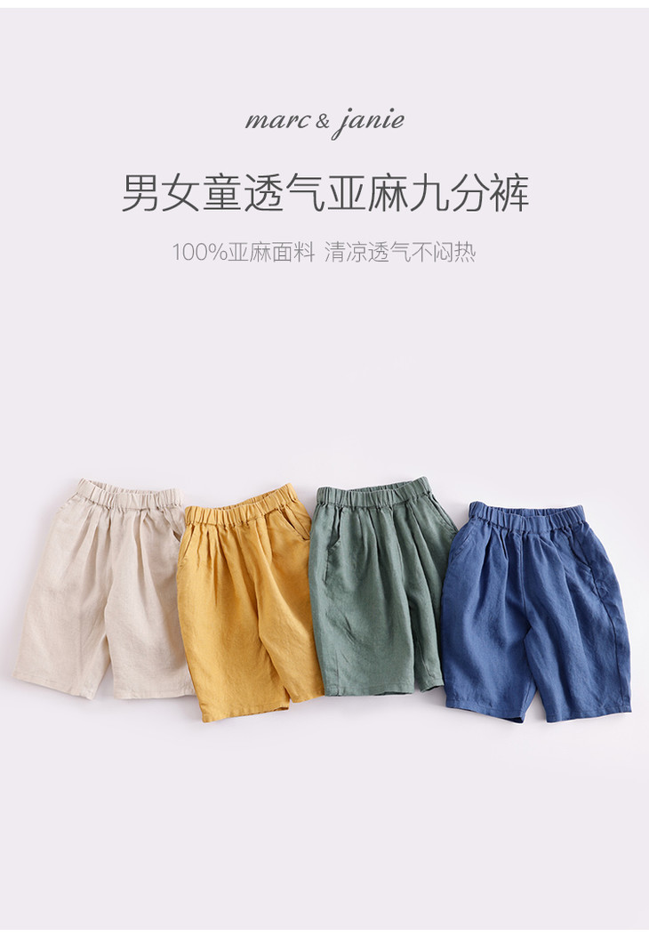 马克珍妮夏装新款 男女童宽松透气亚麻九分裤 儿童裤子230939