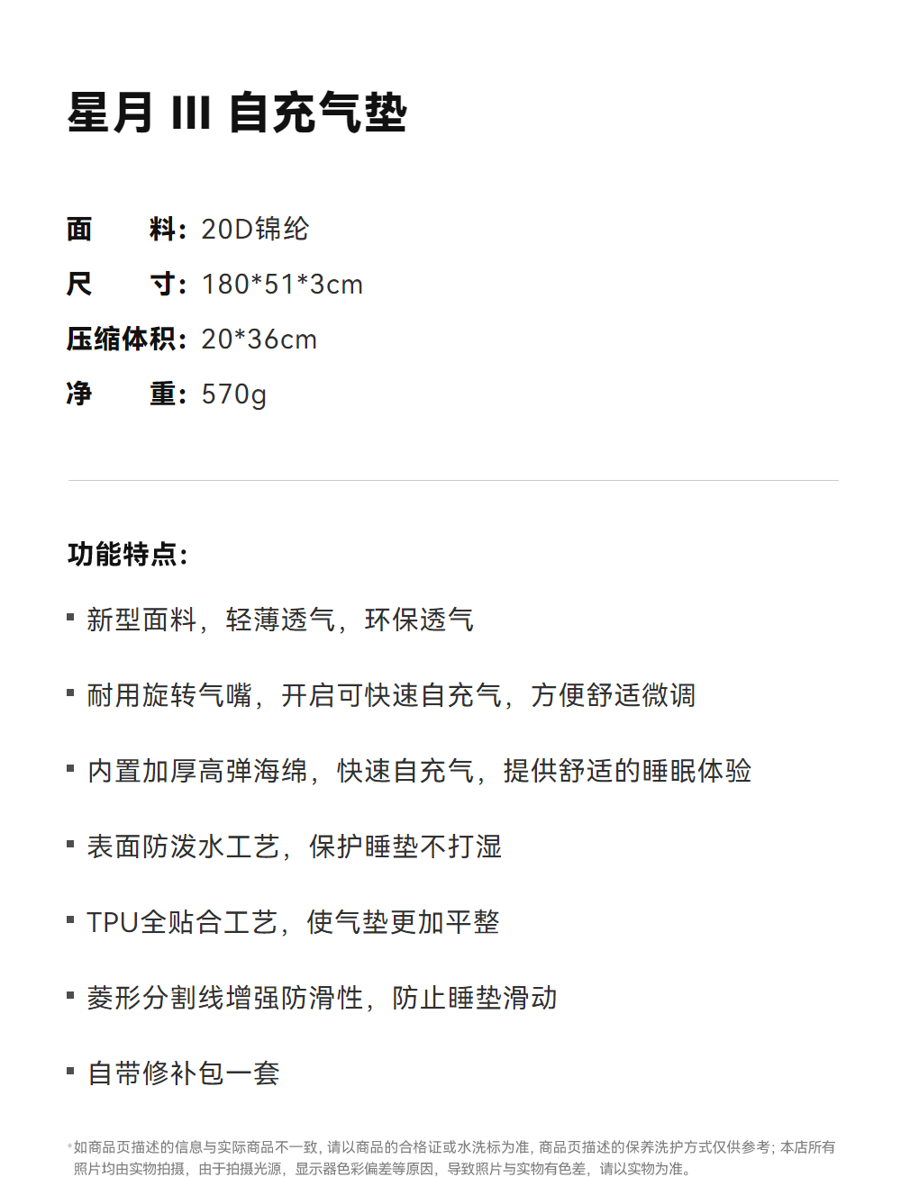KAILAS凯乐石 星月 Ⅲ 自充气垫 KC2502201