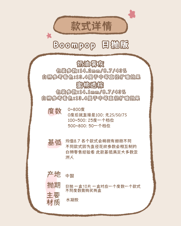 Boompop旗下|Niki Brown蜜桃透棕&奶油雾灰Niki Gray 日抛|白狮实际着色中等直径