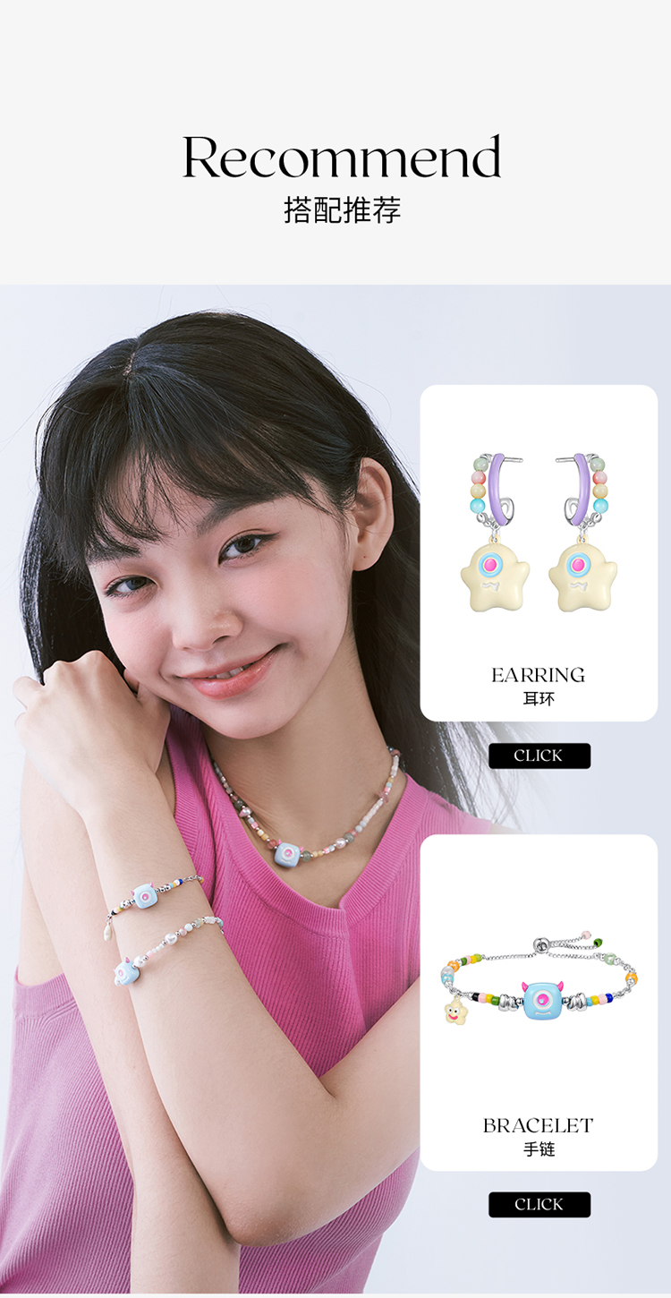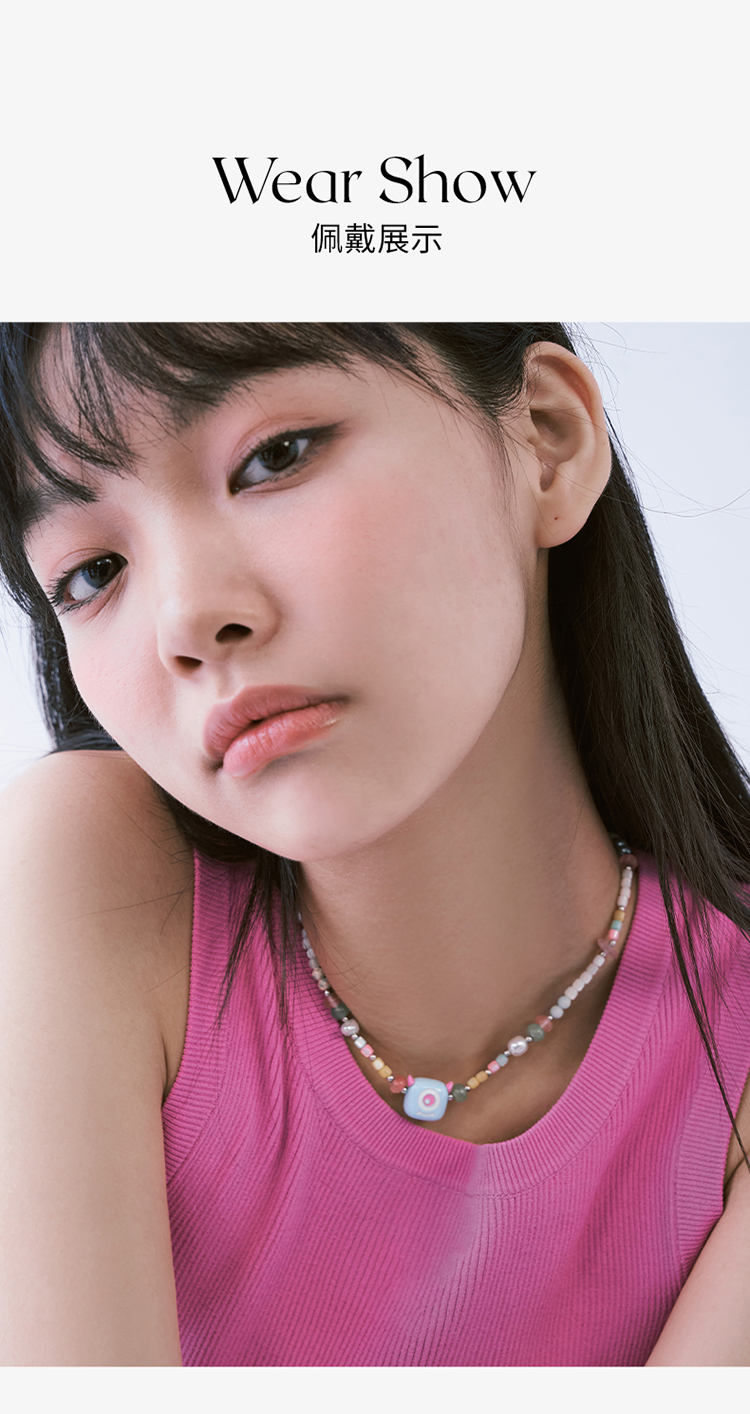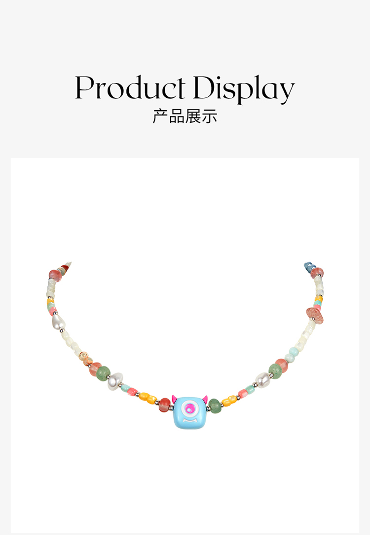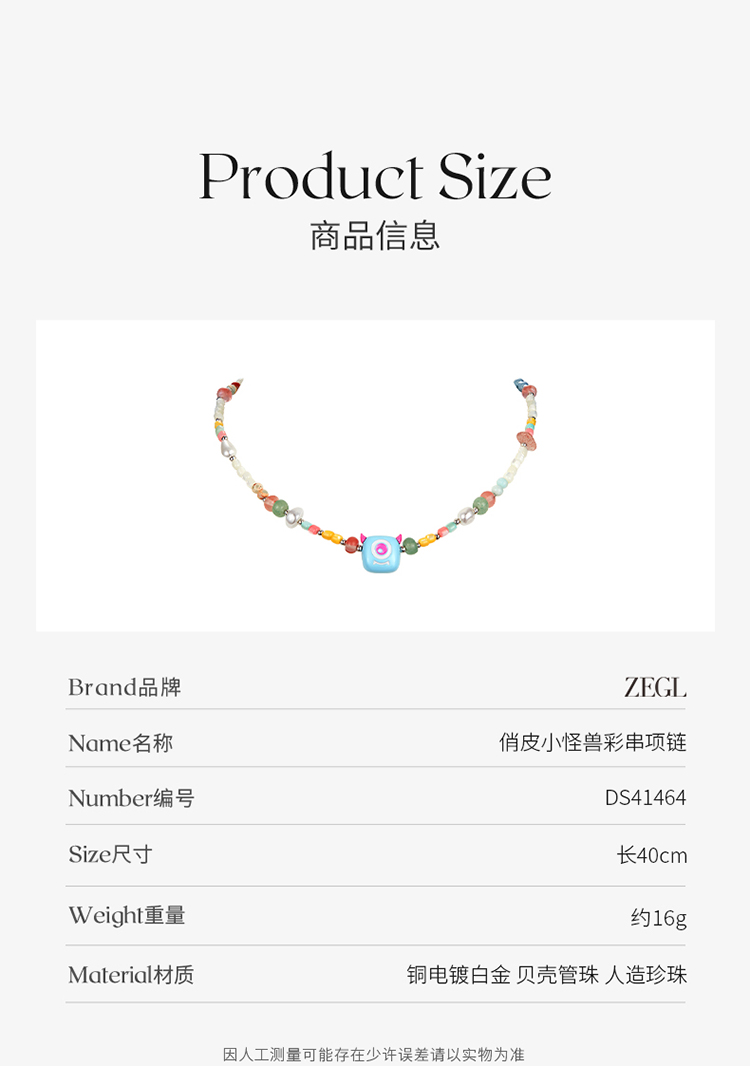 ZEGL设计师小怪兽彩串可爱彩色串珠项链女轻奢人造珍珠夏日锁骨链