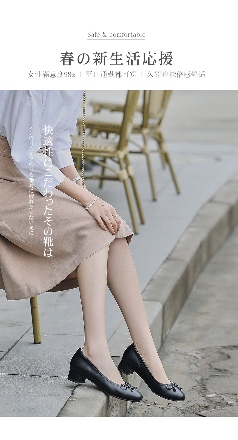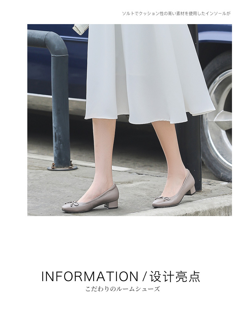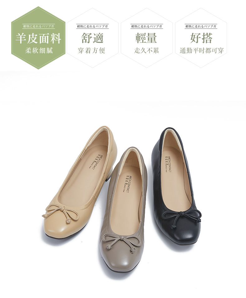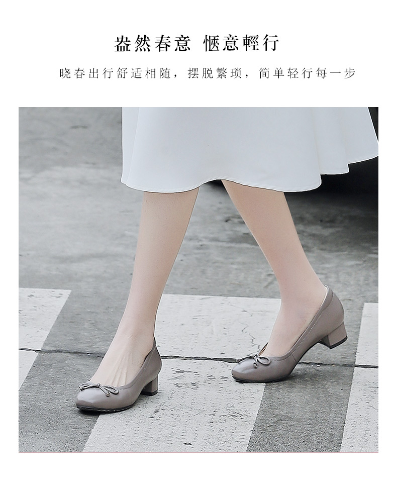 安启美奈春款女鞋蝴蝶结单鞋舒适中跟通勤低跟羊皮休闲鞋52125