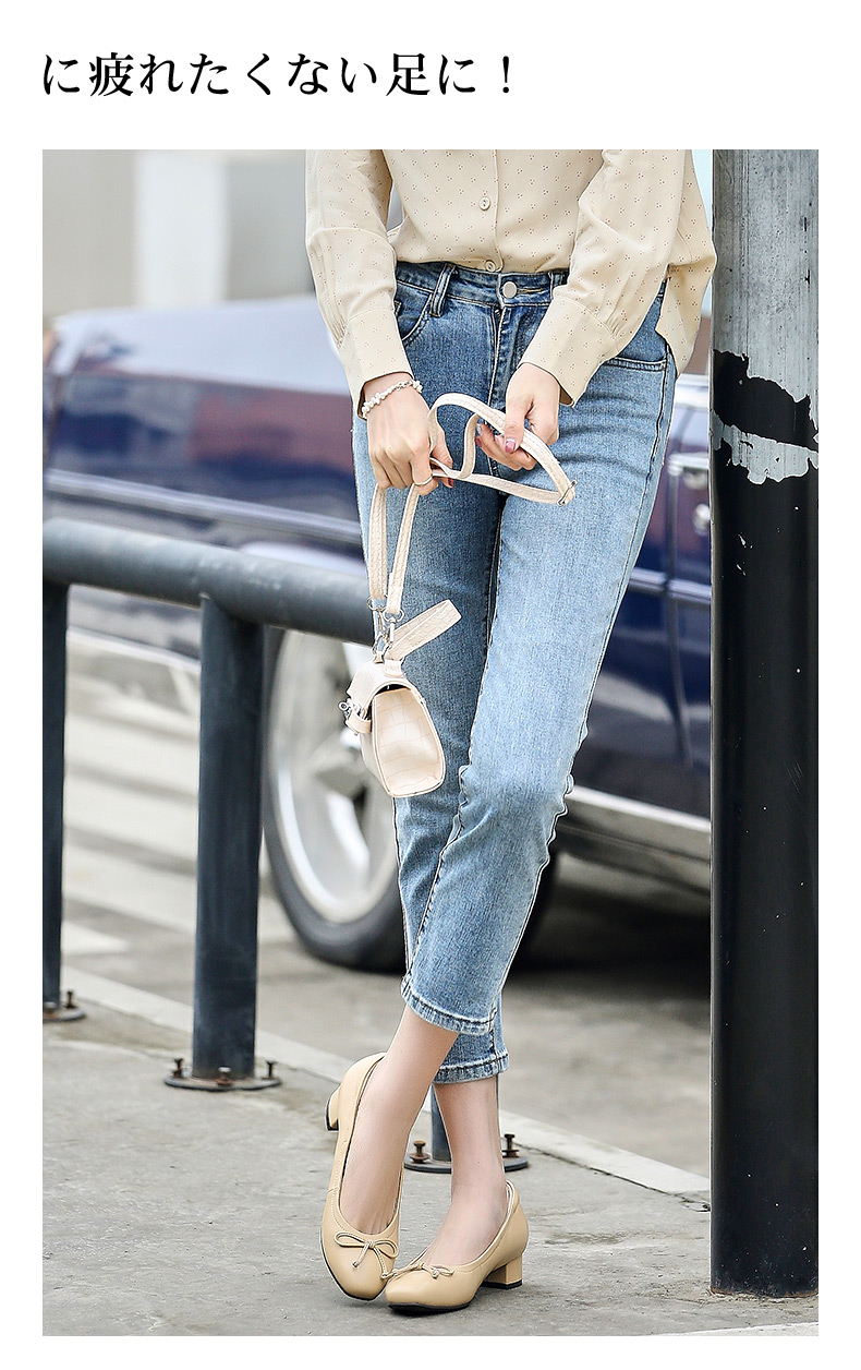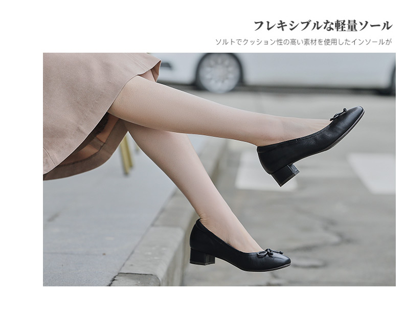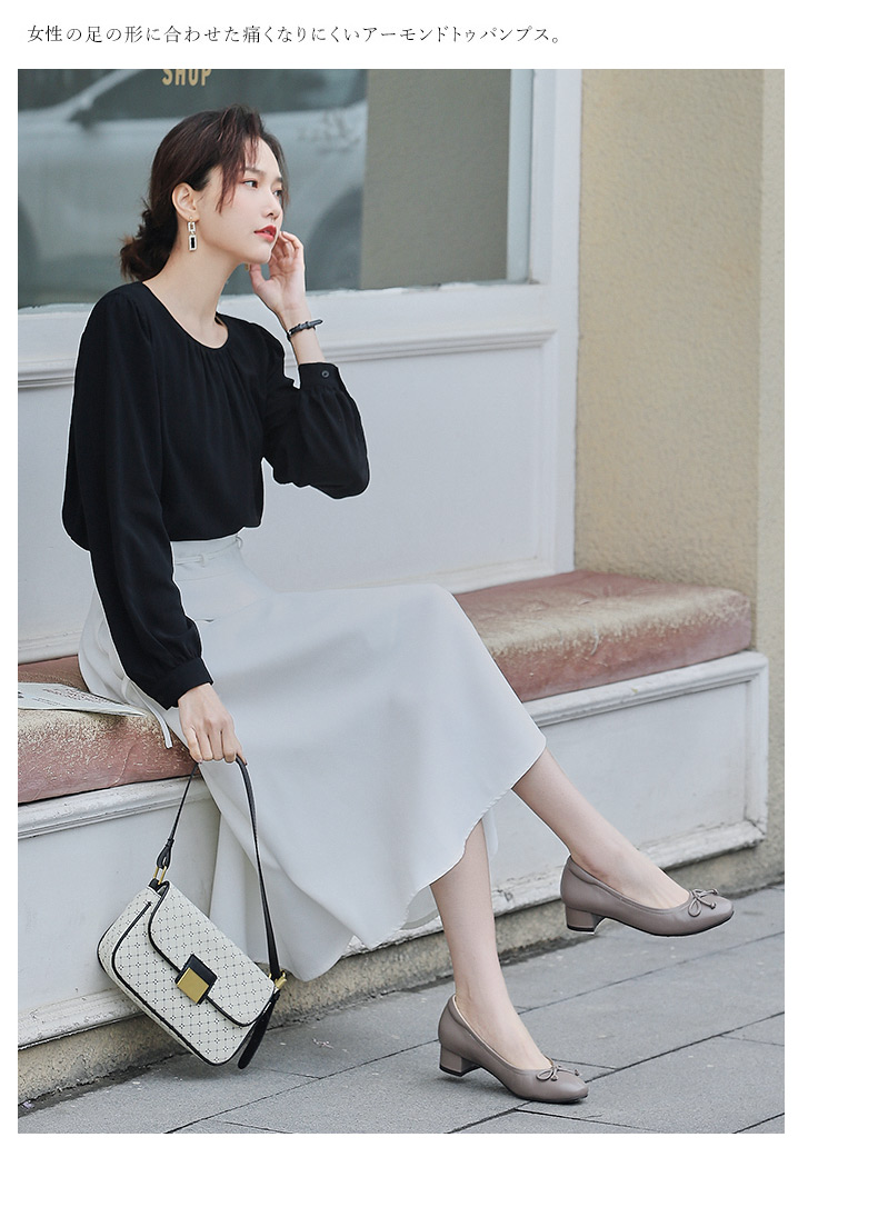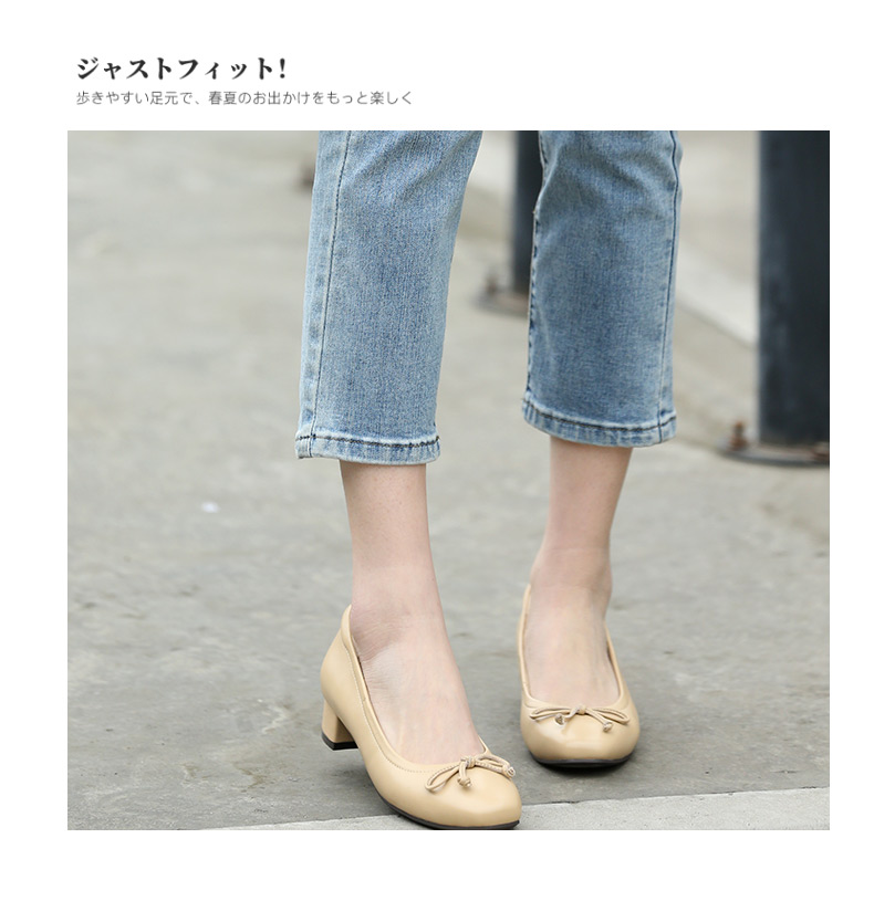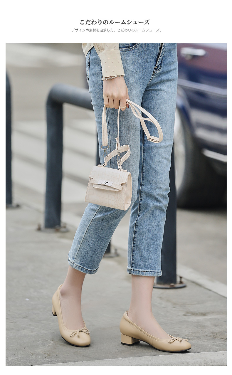 安启美奈春款女鞋蝴蝶结单鞋舒适中跟通勤低跟羊皮休闲鞋52125