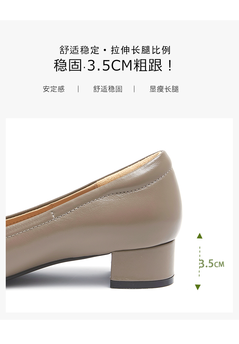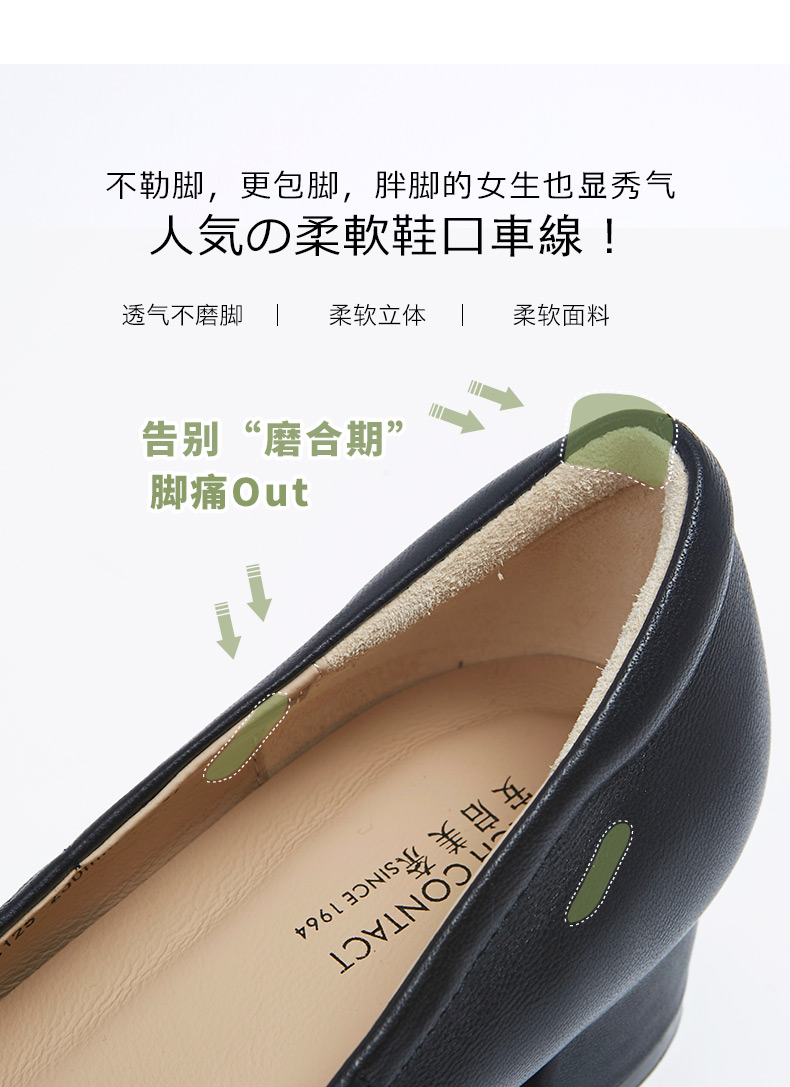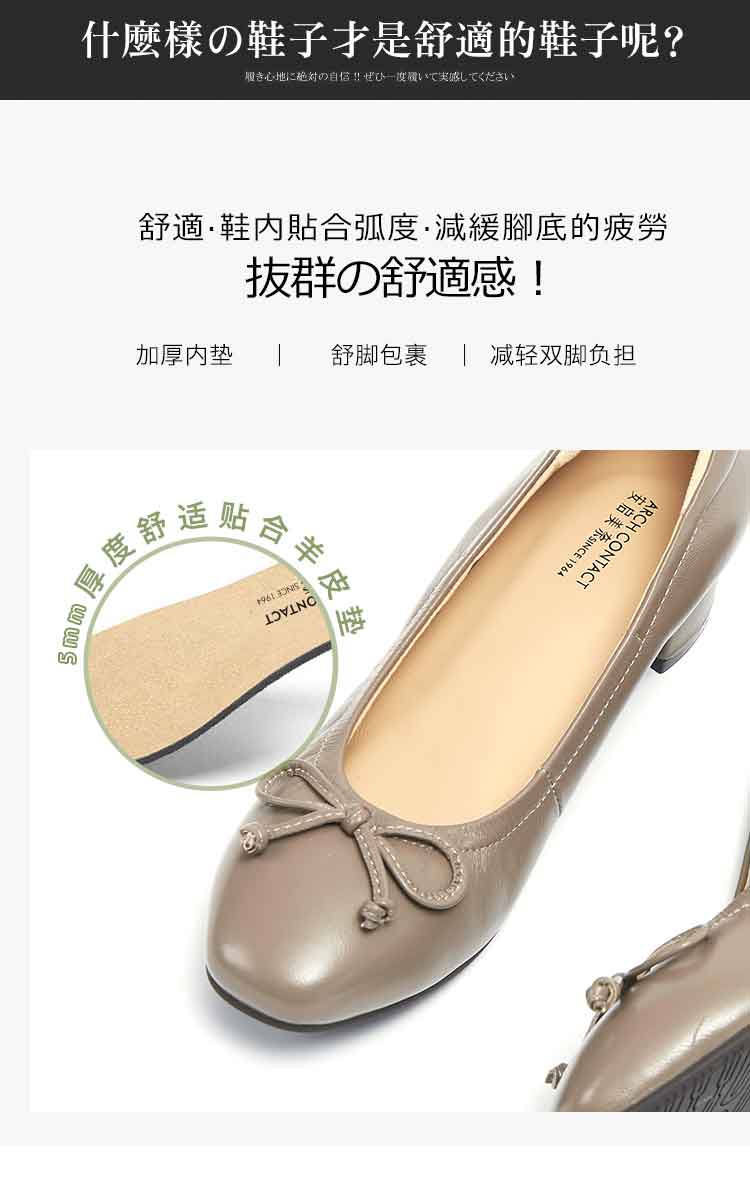 ARCHCONTACT安启美奈气垫云百搭十字花圆头方跟低跟羊皮鞋52954