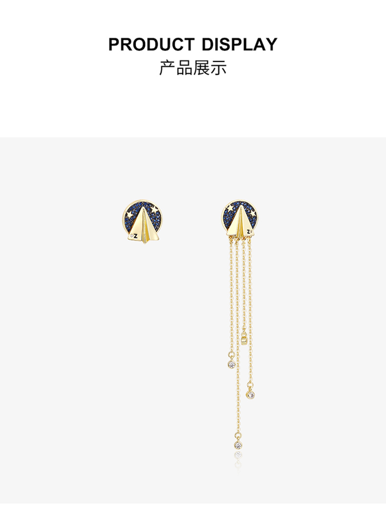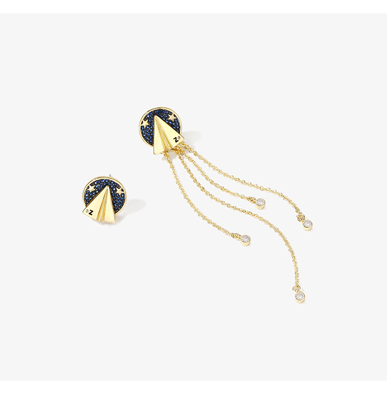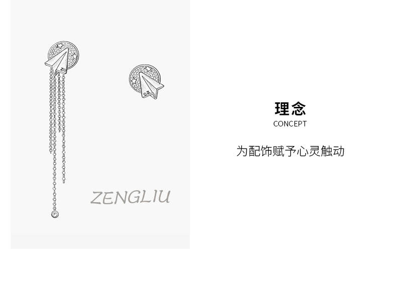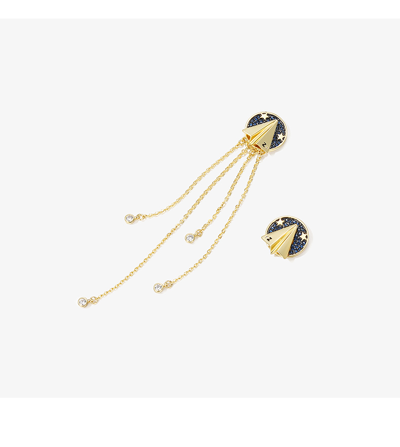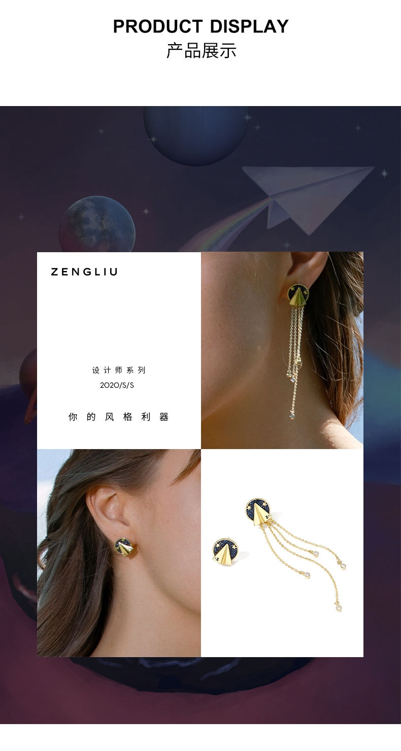 ZENGLIU设计师纸飞机耳钉耳环女气质长款不对称流苏耳坠星空耳饰