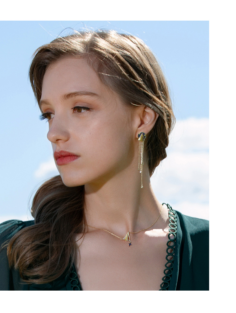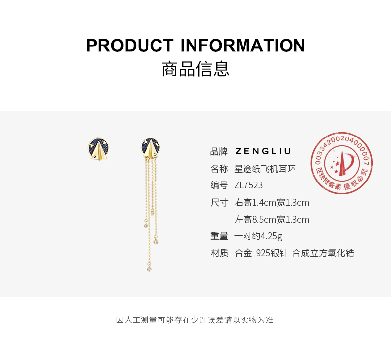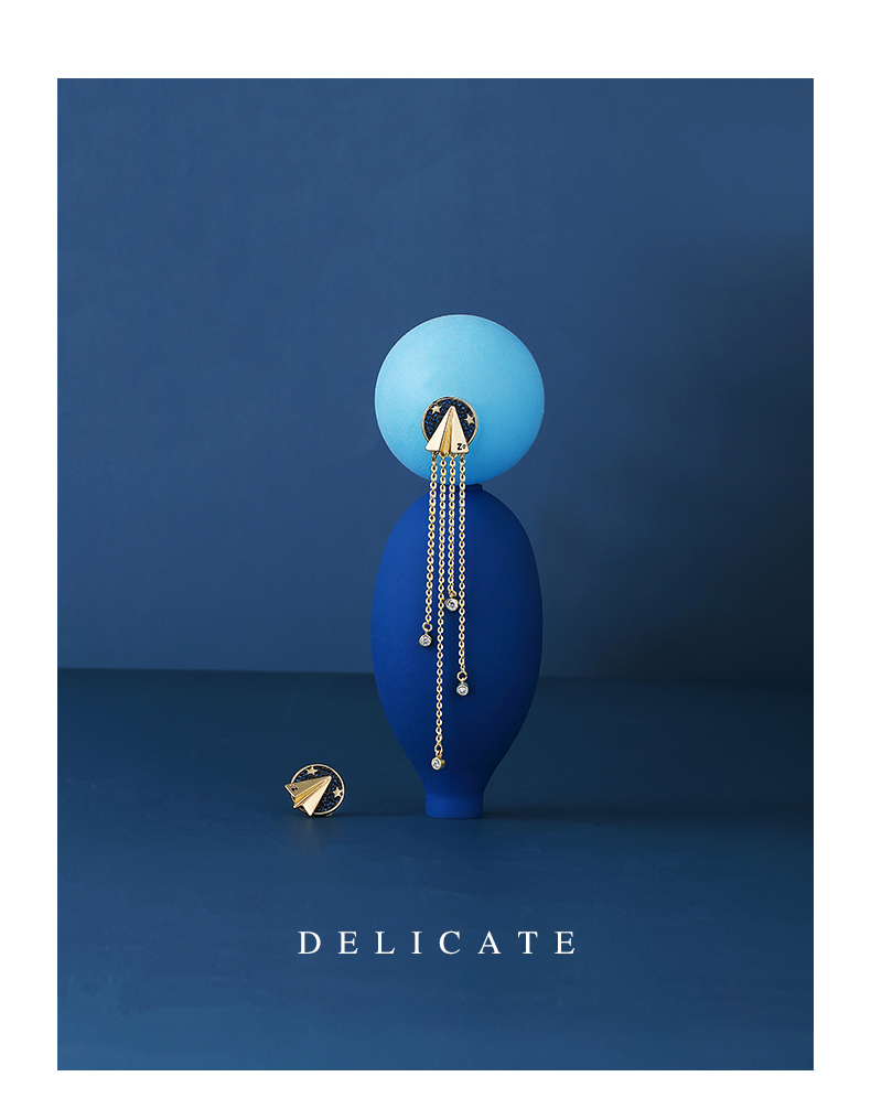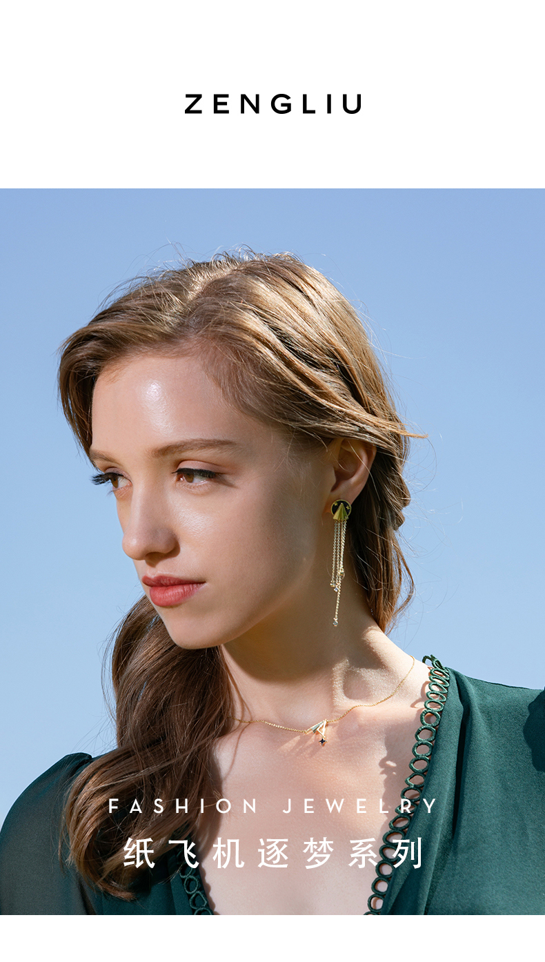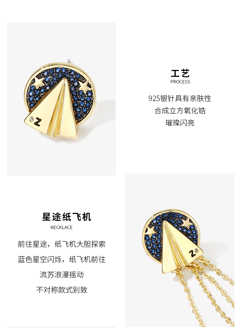 ZENGLIU设计师纸飞机耳钉耳环女气质长款不对称流苏耳坠星空耳饰