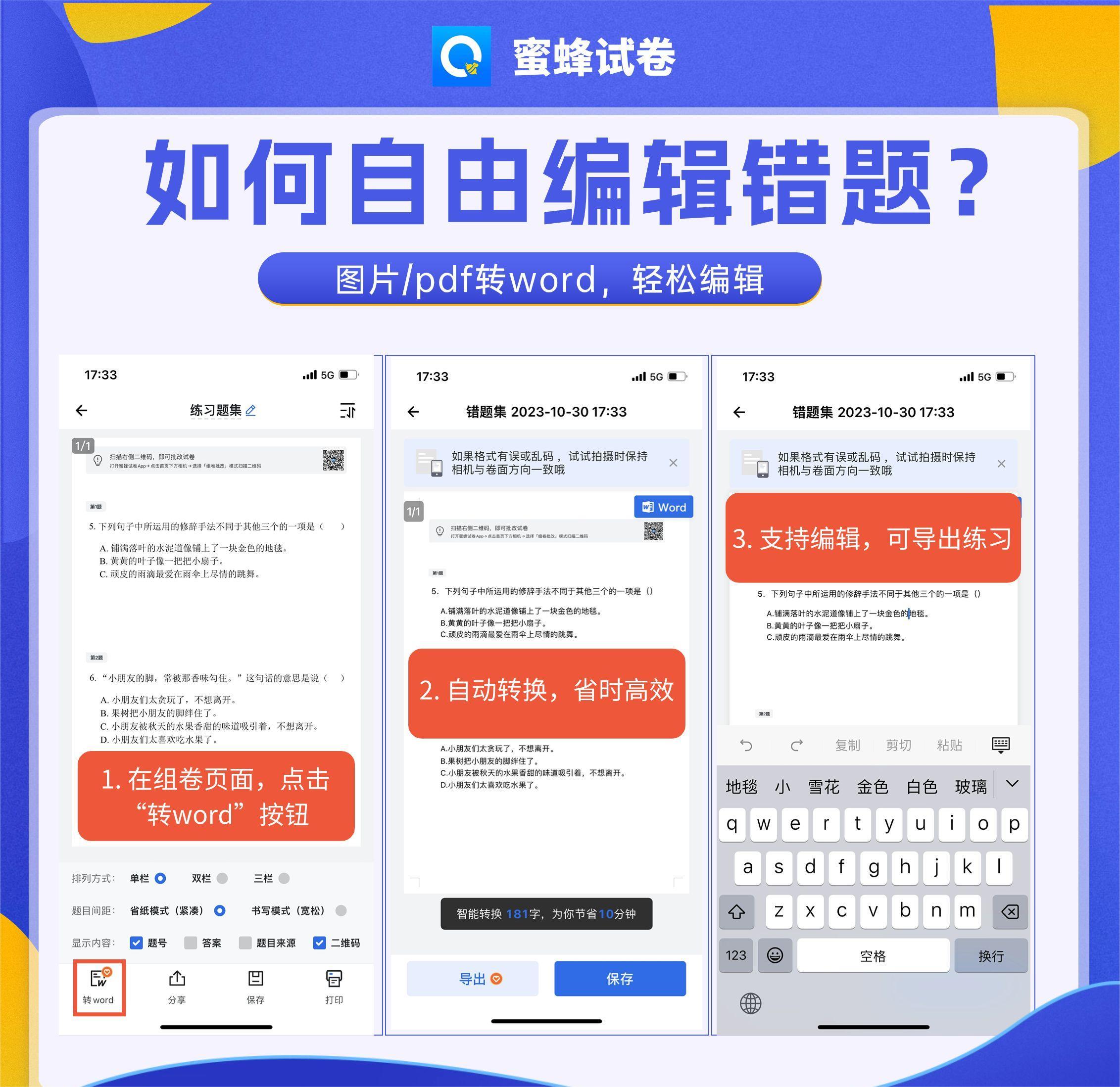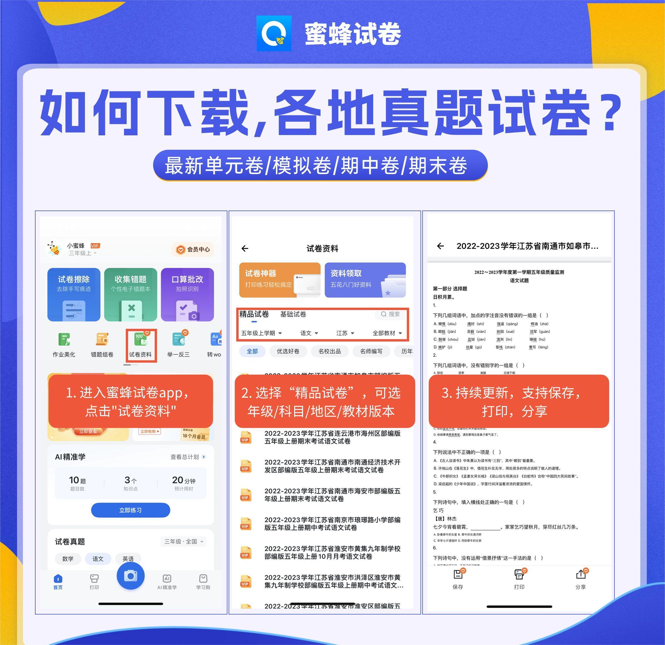 【蜜蜂试卷3日体验卡】📝告别手抄错题到崩溃 🤝不用再求人拼团找试卷 🐝高效学习后援团已就位