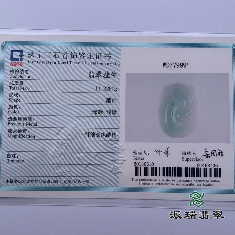 派瑞翡翠 翡翠挂件 糯种 浅绿