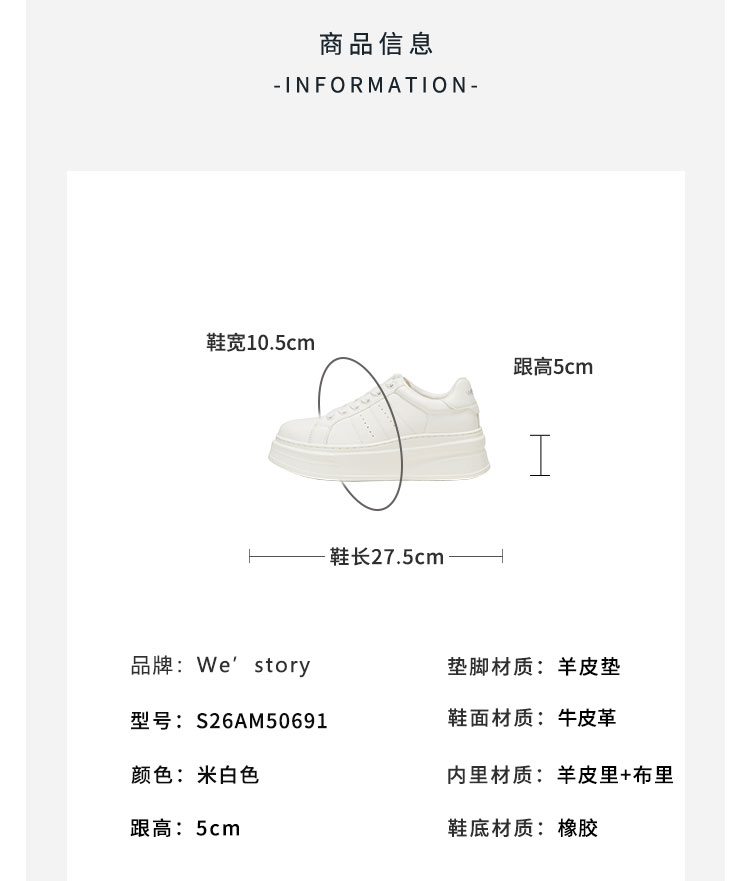 Westory2026年春季简约百搭小白鞋休闲运动深口单鞋S26AM50691