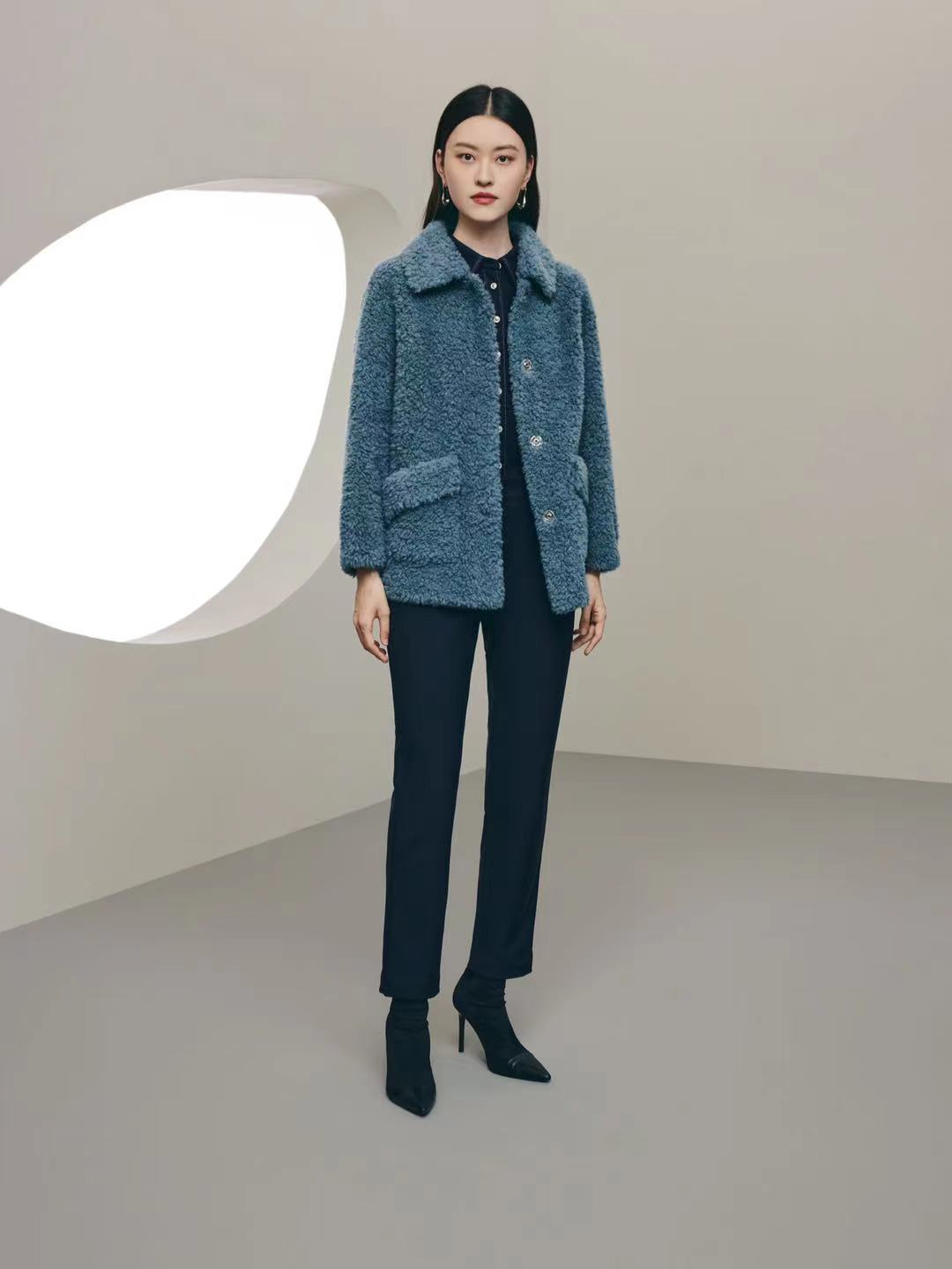 3F玖姿颗粒羊剪毛大衣