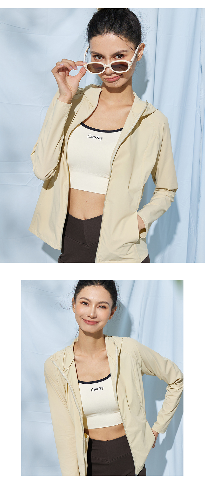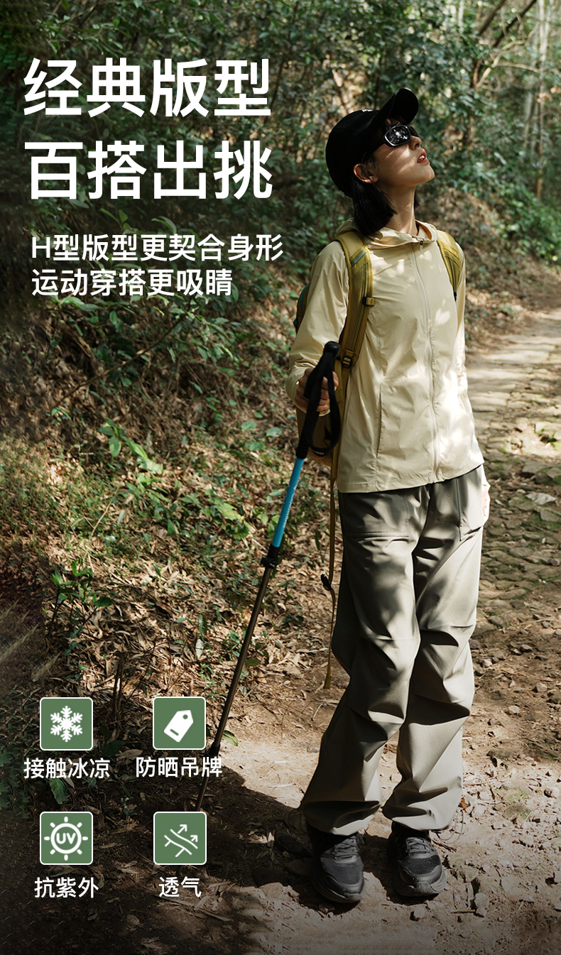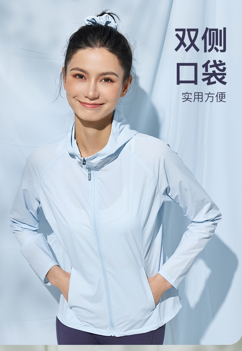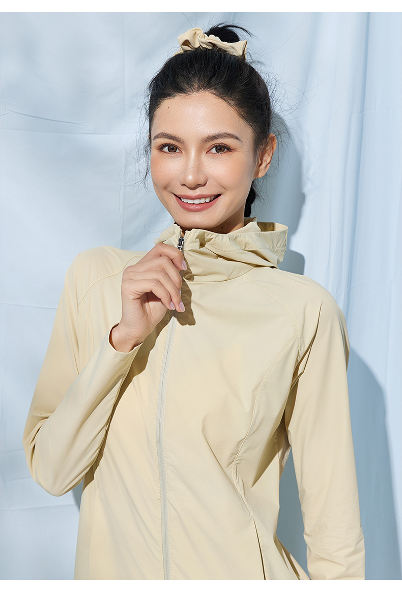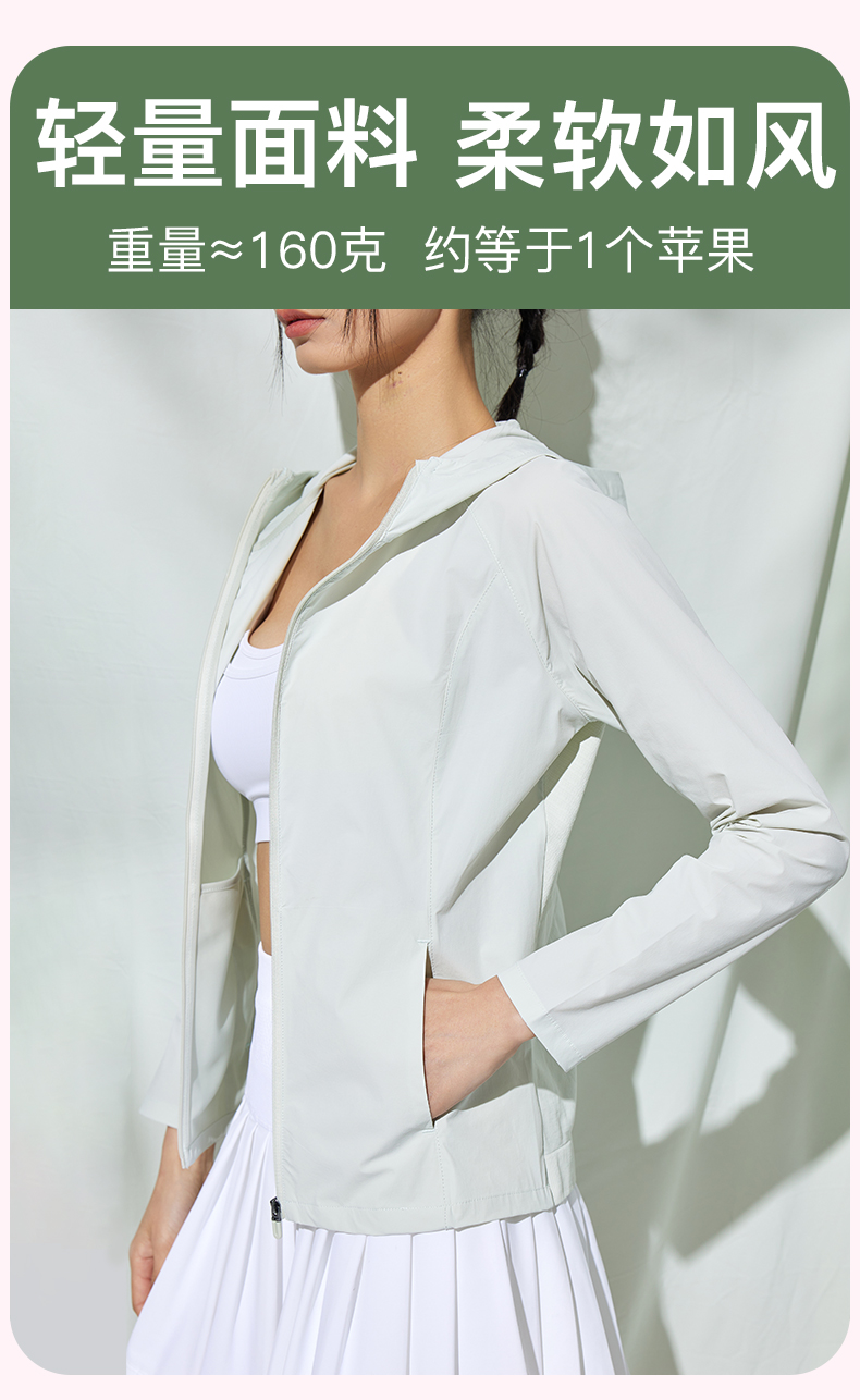 Leorrey/乐拉原纱防紫外线一体织高透气凉感运动连帽防晒衣外套