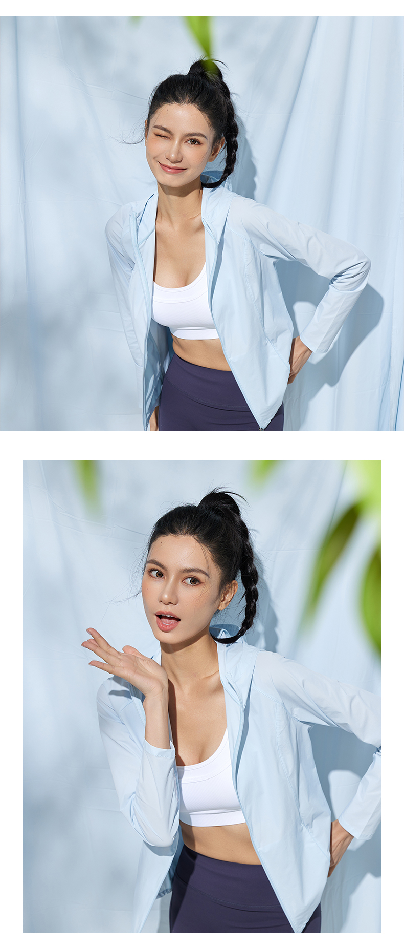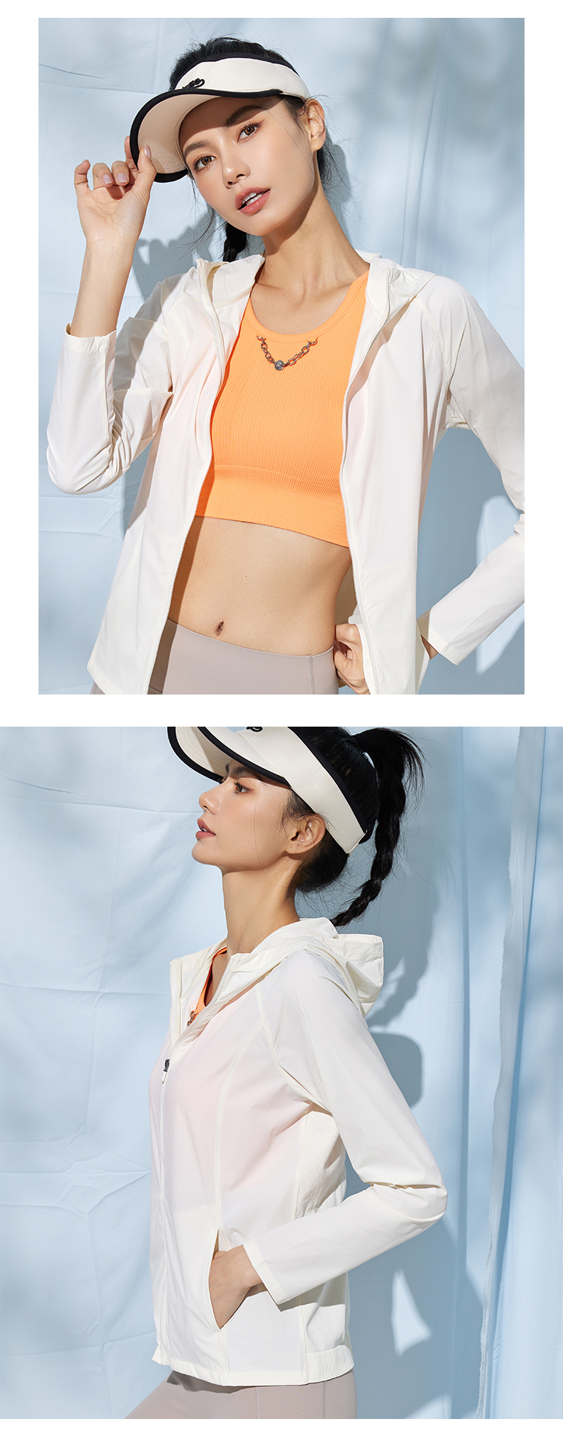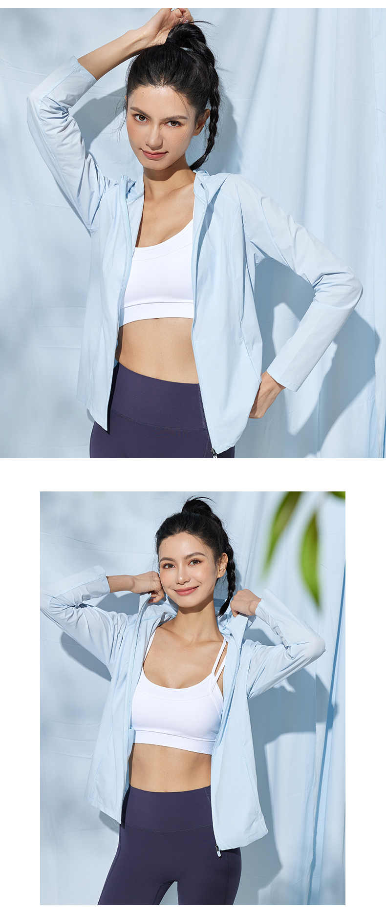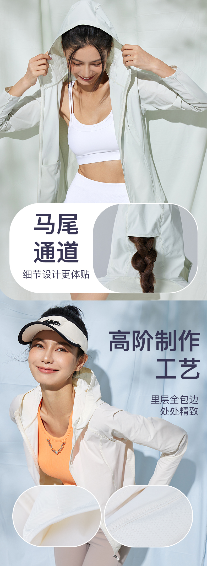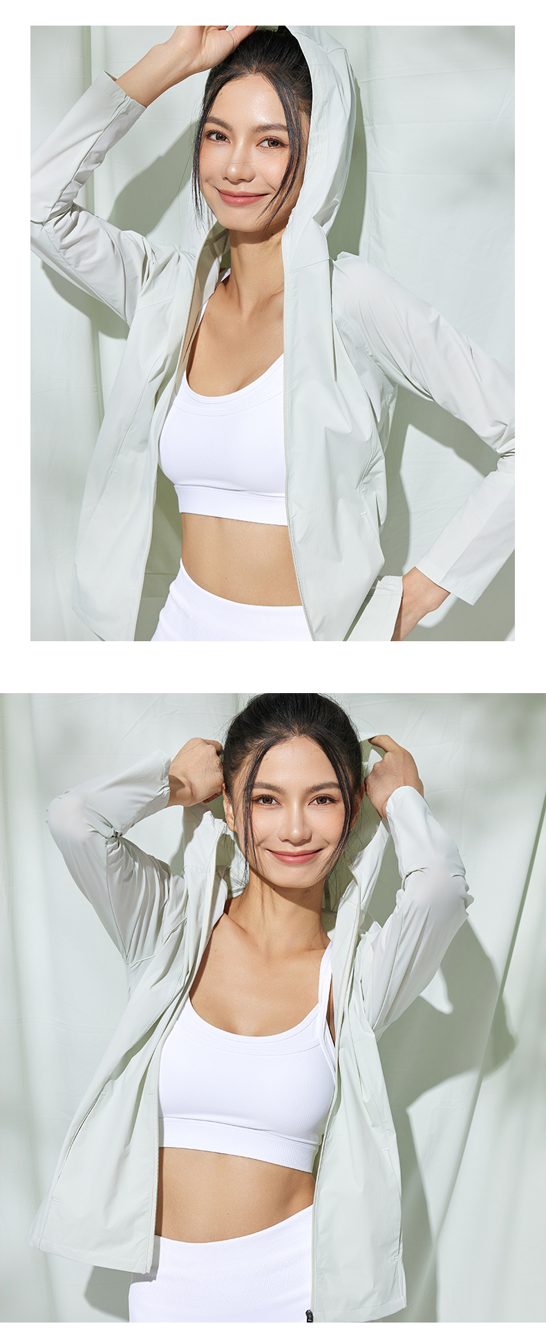 Leorrey/乐拉原纱防紫外线一体织高透气凉感运动连帽防晒衣外套