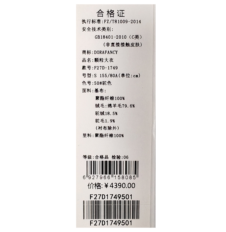 朵拉梵西呢大衣F27D1749