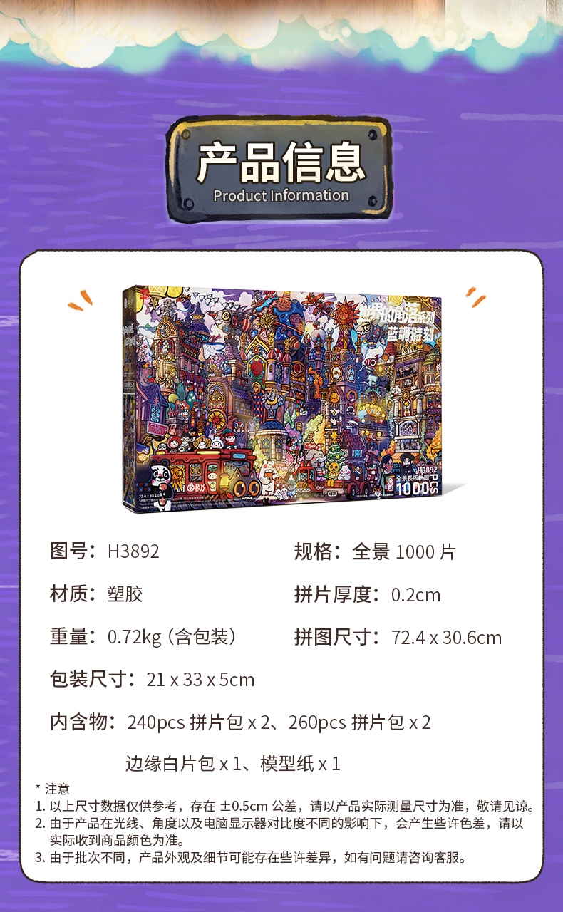 1000片 平面塑料拼图 H3892 全景长版拼图-泡面-世界的角落系列-蓝调时刻
